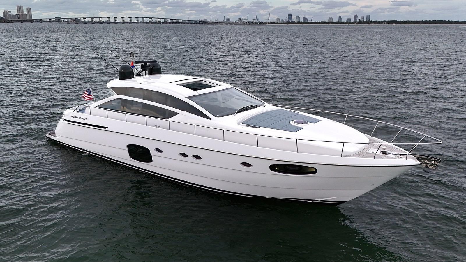 2020 Pershing 62 – Factory Brilliant White | Seakeeper | Williams Jet Tender | Only 630 HoursExperience unmatched style and performance with this 2020 Pershing 62, finished in a rare factory Brilliant White exterior paint for a sleek, modern look. This yacht combines cutting-edge technology, Italian design, and unrivaled comfort—making it a must-see for any discerning buyer seeking a luxury performance yacht in the 60-foot range.Equipped with Surface Drives, this Pershing 62 is not just beautiful—it’s fast. Cruise to the Bahamas in under two hours with thrilling speed and stability, thanks to the Seakeeper Gyro Stabilizer. With only 630 engine hours, this vessel has been lightly used and meticulously maintained.Factory Options & Highlights:Seakeeper Gyro Stabilizer for superior comfort underway and at anchorWilliams Jet Tender includedCustom interior and exterior upholstery upgradesSleek hardtop with electric sunroofGarage for tender storageState-of-the-art navigation and entertainment systemsSpacious 2-stateroom layout with crew quartersLocated in Coconut Grove, Miami, this Pershing 62 is easy to view and ready for immediate delivery. Whether you’re island-hopping in the Caribbean or enjoying a coastal cruise, this yacht delivers an exhilarating experience with unmatched sophistication.The Company offers the details of this vessel in good faith but cannot guarantee or warrant the accuracy of this information nor warrant the condition of the vessel. A buyer should instruct his agents, or his surveyors, to investigate such details as the buyer desires validated. This vessel is offered subject to prior sale, price change, or withdrawal without notice.