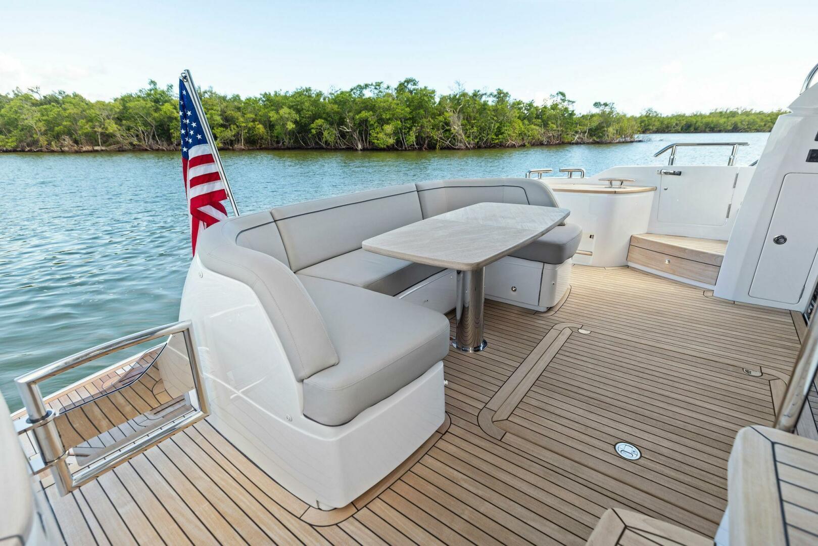 - Storage tray behind flybridge U-shaped seating with drinks holders