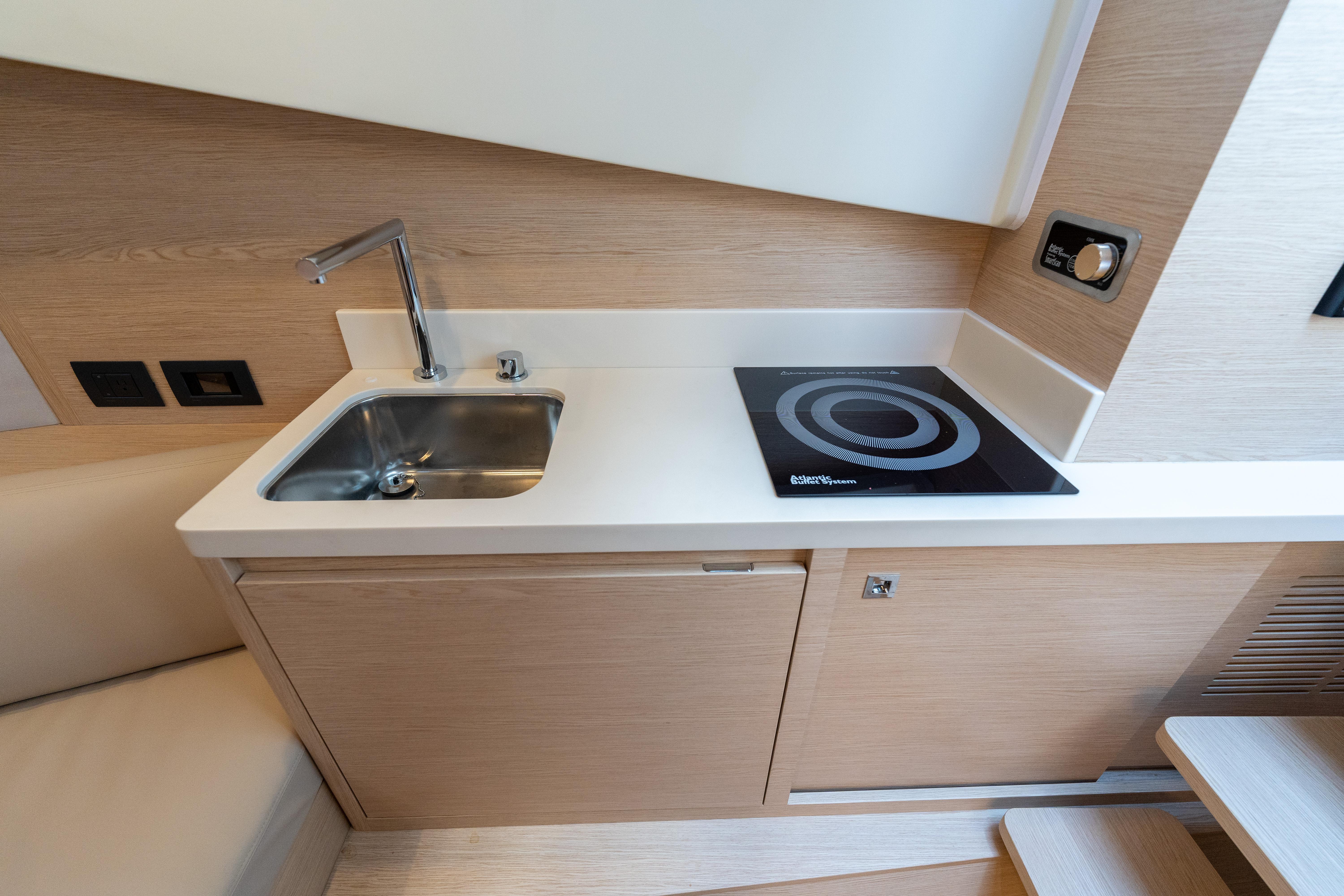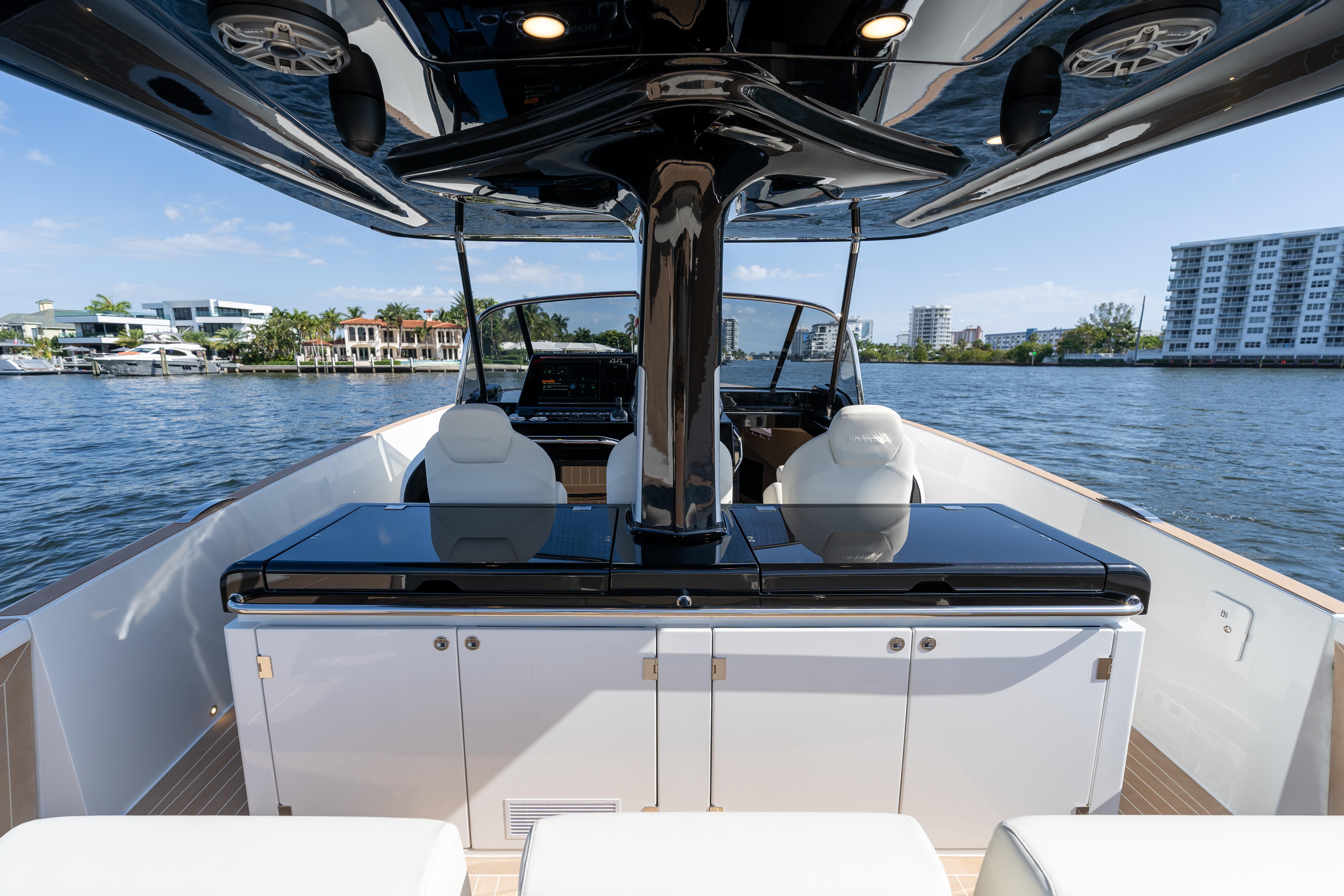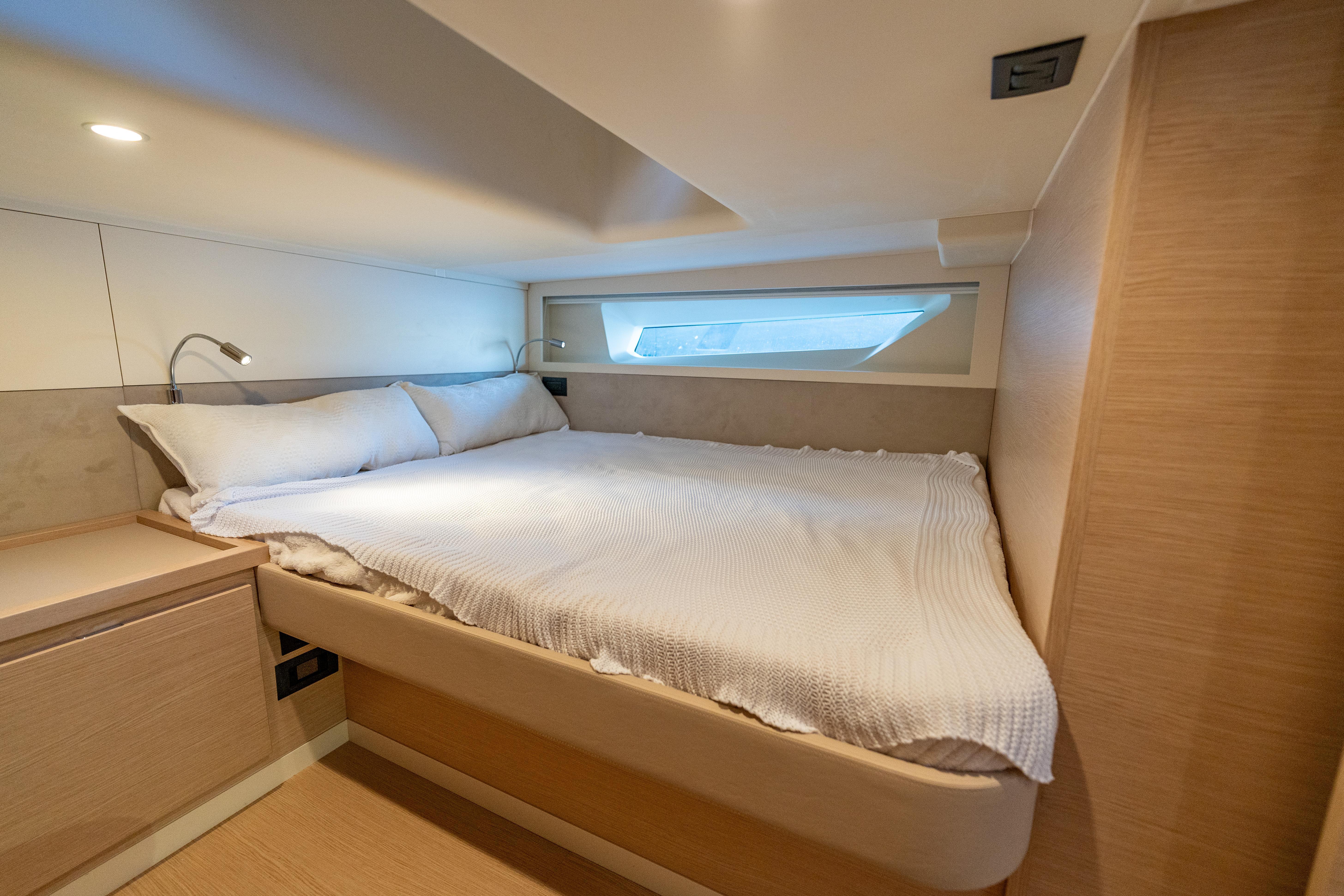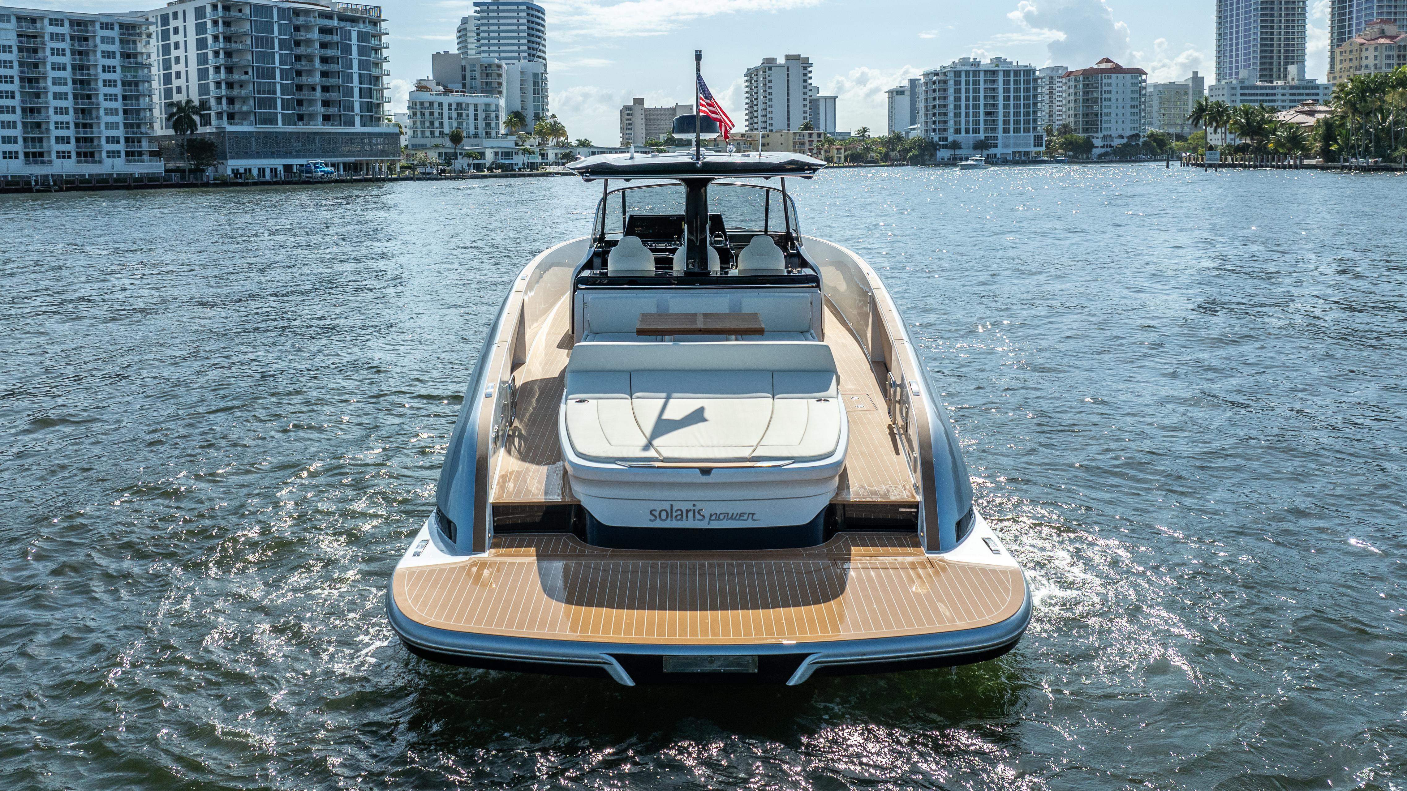 The Solaris Power 44 Open is a luxurious and high-performance yacht designed for those seeking both style and functionality. It features a sleek, modern design with a spacious open cockpit and cutting-edge technology. The boat offers impressive speed and stability, making it ideal for day cruising or weekend getaways. The layout includes ample seating, sunbathing areas, and a well-equipped helm, providing comfort and convenience. Powered by Volvo Penta IPS, the Solaris Power 44 Open is known for its smooth handling, fuel efficiency, and elegant aesthetics, making it a standout choice in the open boat category.Optional Equipment Included:2 x VOLVO PENTA IPS 650 engines (D6 480Hp) with joystick and dynamic positioning system (DPS)Automatic interceptor systemVolvo Trip computer, includes: joystick, low speed mode, echosounder, keyboard for multifunctional display and Volvo AutopilotQuick MC2 x16 Gyro stabilizerHULL AND DECK Eco-Teak decking with white caulkingSide opening hydraulic balconies with teak insertsStern tender lift with hydraulic system and automatic ladderUnderwater lightsFolding cockpit table with stainless steel electric pedestal and extra cushionsStern sunpad with bench and electric opening system and mattress Crystal (glass) windshield with wiper and stainless steel profile SureShade electric sun shade integrated into carbon T-TopTwo additional fridges under cockpit seatsIcemaker in cockpit kitchen Kenyon grill2x additional stern mooring cleatsINTERIORTropical hot/cold air conditioningComplete stern owner's cabin with hull windowsBow dinette including kitchen with corian top, integrated sink, hob, tap, refrigerator and table in essence with electric stainless steel pedestal, storage and living area Separation bulkhead with door for cabinsLuxury kit (stainless steel and leather insert for bedside table, leather handles, leather covered reading lights)Safe box in owner's cabinEXTRA ACCESSORIESAnti-fouling (bottom paint) and PropSpeedCover package (includes: dashboasrd cover, cockpit table cover, stern seats cover, stern sunpad and sofa cover, driver seats covers, bow sunpad cover)Stainless steel 16kg anchor with swivel (different from standard galvanized)Stainless steel 8 mm - 50 mt chain (different from standard galvanized)Digital chain counterMooring kit (two 10mt mooring lines, two 20mt mooring lines, 6 fender with fender cover and boat hook)Stainless steel stern gatewaysInox bar fender holder bow lockerStainless steel rub rails in transomCupholders for stern and bow sunbed Cupholders for pilot seatsCourtesy Light higher WattageExtra mooring kit (4 fenders with fender cover)WATER SYSTEMShore water inletHot and cold bow shower (different from standard)ENTERTAINMENTLED TV for owner's cabin/dinetteSuper High-performance stereo system - JL AudioVideo security system composed by: two cameras with smartphone connectionELECTRONICSTwin multifunction 16" Garmin displays MDF 76162000W inverterAdditional service batteries (500 Ah)2x waterproof sockets 220V in stern lockerGarmin GMR Fantom 18" 48NM RadarGarmin AIS-800 Rx/TxGENERATOR9 kW generator (60 hz)