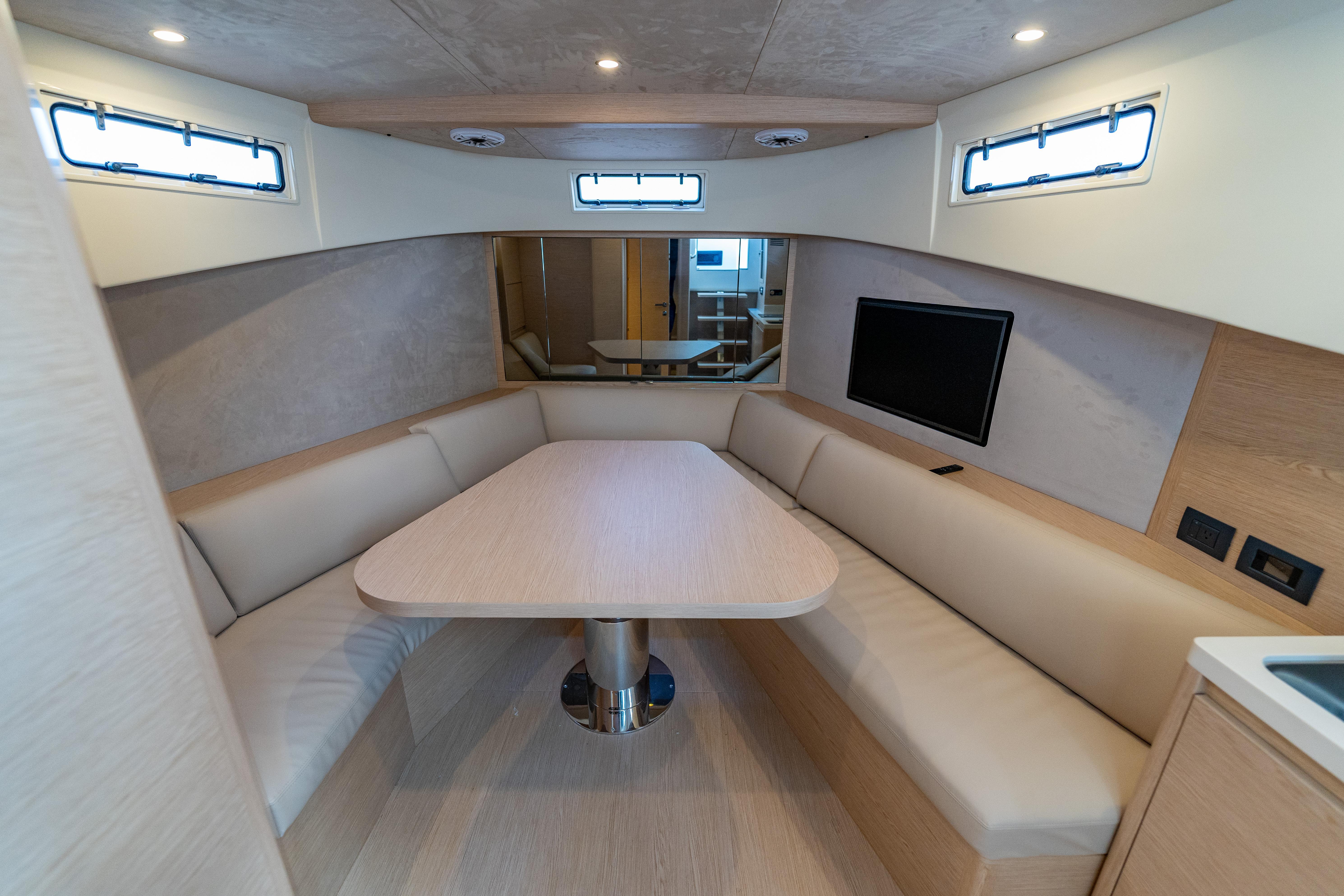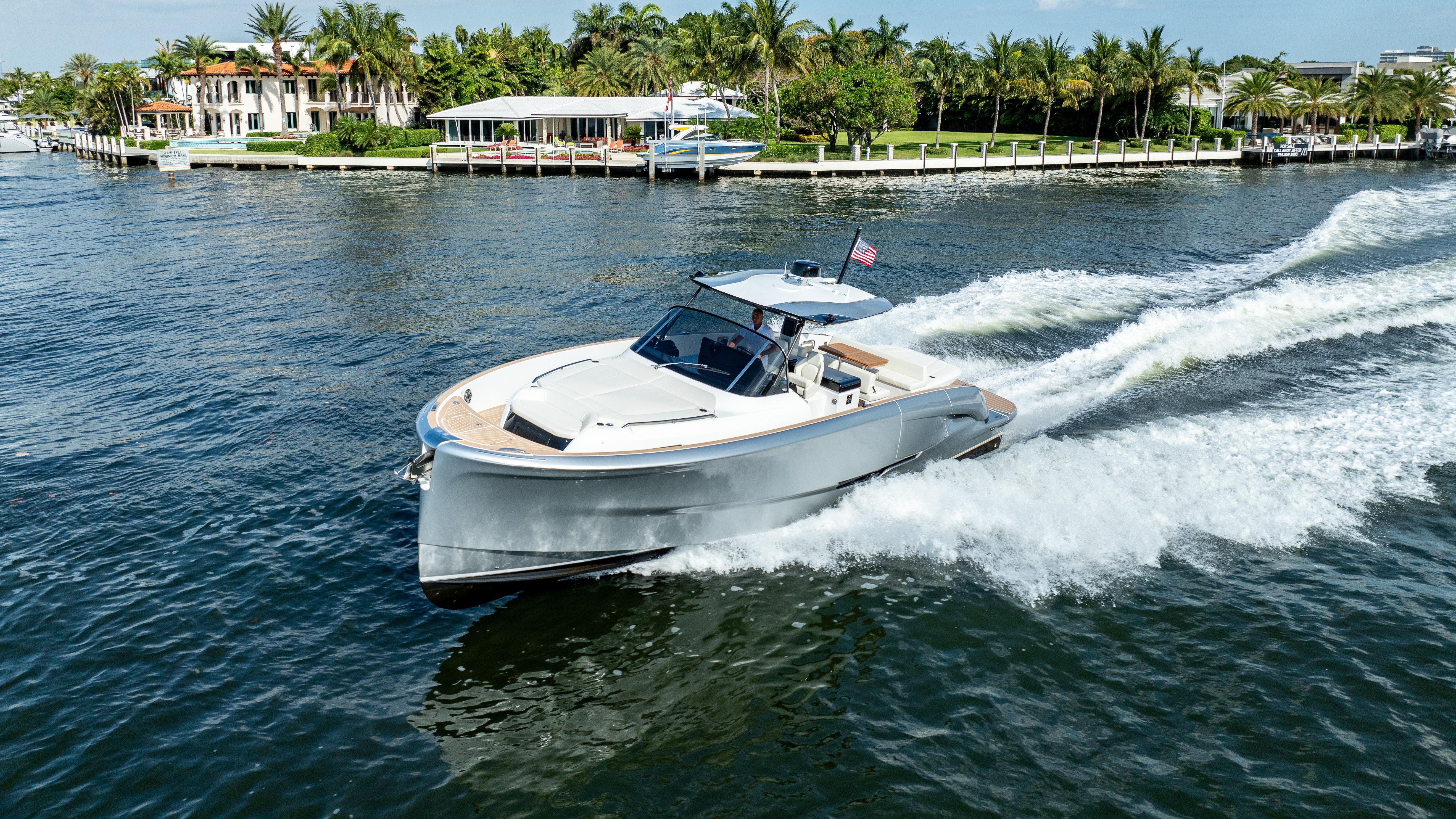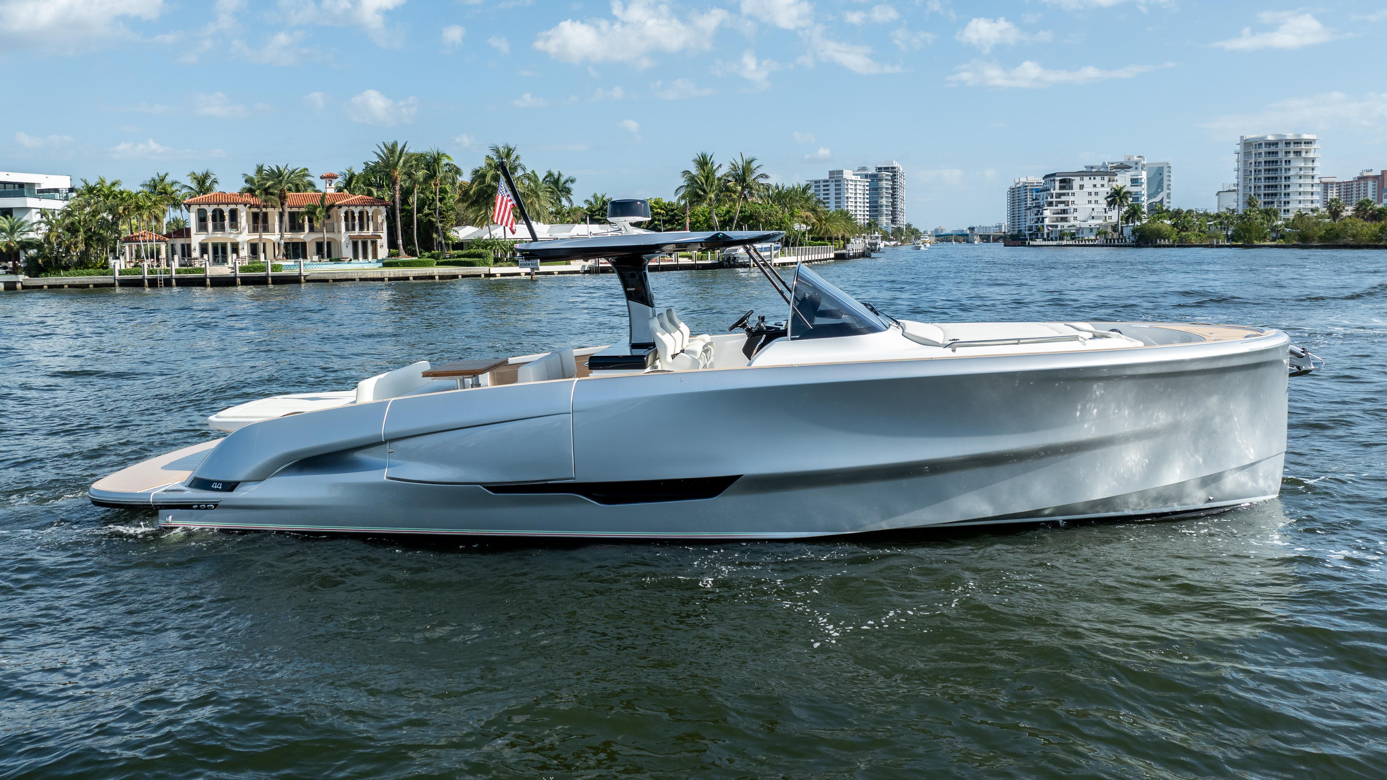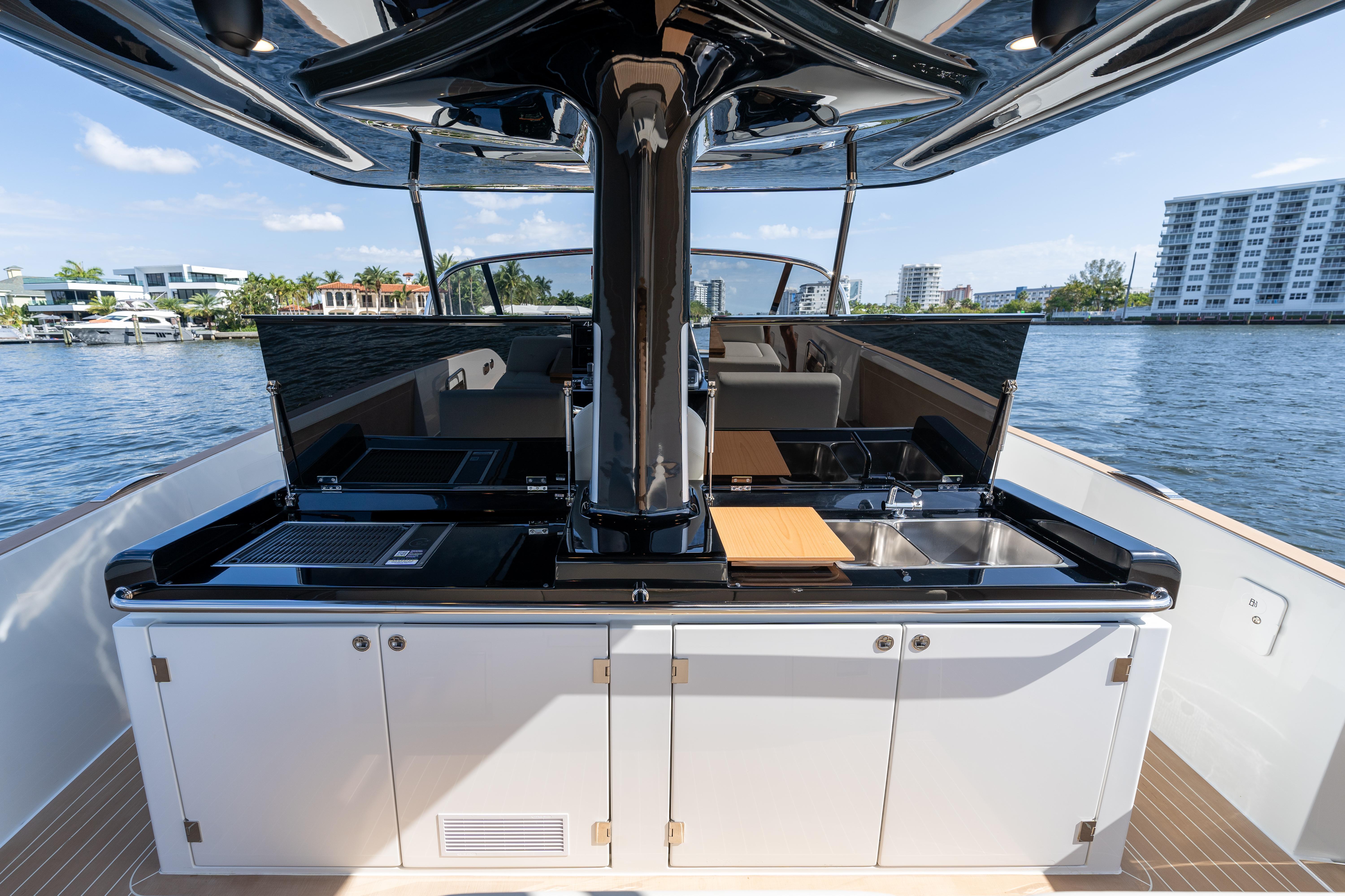 The Solaris Power 44 Open is a luxurious and high-performance yacht designed for those seeking both style and functionality. It features a sleek, modern design with a spacious open cockpit and cutting-edge technology. The boat offers impressive speed and stability, making it ideal for day cruising or weekend getaways. The layout includes ample seating, sunbathing areas, and a well-equipped helm, providing comfort and convenience. Powered by Volvo Penta IPS, the Solaris Power 44 Open is known for its smooth handling, fuel efficiency, and elegant aesthetics, making it a standout choice in the open boat category.Optional Equipment Included:2 x VOLVO PENTA IPS 650 engines (D6 480Hp) with joystick and dynamic positioning system (DPS)Automatic interceptor systemVolvo Trip computer, includes: joystick, low speed mode, echosounder, keyboard for multifunctional display and Volvo AutopilotQuick MC2 x16 Gyro stabilizerHULL AND DECK Eco-Teak decking with white caulkingSide opening hydraulic balconies with teak insertsStern tender lift with hydraulic system and automatic ladderUnderwater lightsFolding cockpit table with stainless steel electric pedestal and extra cushionsStern sunpad with bench and electric opening system and mattress Crystal (glass) windshield with wiper and stainless steel profile SureShade electric sun shade integrated into carbon T-TopTwo additional fridges under cockpit seatsIcemaker in cockpit kitchen Kenyon grill2x additional stern mooring cleatsINTERIORTropical hot/cold air conditioningComplete stern owner's cabin with hull windowsBow dinette including kitchen with corian top, integrated sink, hob, tap, refrigerator and table in essence with electric stainless steel pedestal, storage and living area Separation bulkhead with door for cabinsLuxury kit (stainless steel and leather insert for bedside table, leather handles, leather covered reading lights)Safe box in owner's cabinEXTRA ACCESSORIESAnti-fouling (bottom paint) and PropSpeedCover package (includes: dashboasrd cover, cockpit table cover, stern seats cover, stern sunpad and sofa cover, driver seats covers, bow sunpad cover)Stainless steel 16kg anchor with swivel (different from standard galvanized)Stainless steel 8 mm - 50 mt chain (different from standard galvanized)Digital chain counterMooring kit (two 10mt mooring lines, two 20mt mooring lines, 6 fender with fender cover and boat hook)Stainless steel stern gatewaysInox bar fender holder bow lockerStainless steel rub rails in transomCupholders for stern and bow sunbed Cupholders for pilot seatsCourtesy Light higher WattageExtra mooring kit (4 fenders with fender cover)WATER SYSTEMShore water inletHot and cold bow shower (different from standard)ENTERTAINMENTLED TV for owner's cabin/dinetteSuper High-performance stereo system - JL AudioVideo security system composed by: two cameras with smartphone connectionELECTRONICSTwin multifunction 16" Garmin displays MDF 76162000W inverterAdditional service batteries (500 Ah)2x waterproof sockets 220V in stern lockerGarmin GMR Fantom 18" 48NM RadarGarmin AIS-800 Rx/TxGENERATOR9 kW generator (60 hz)