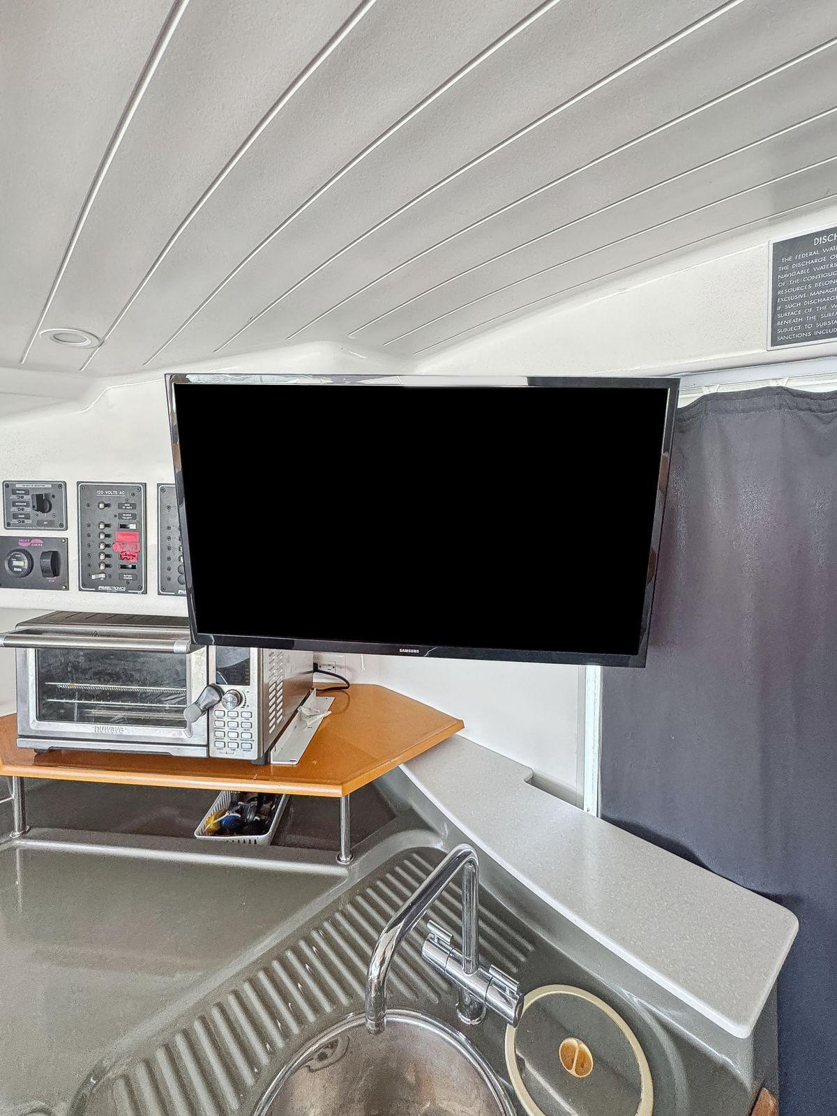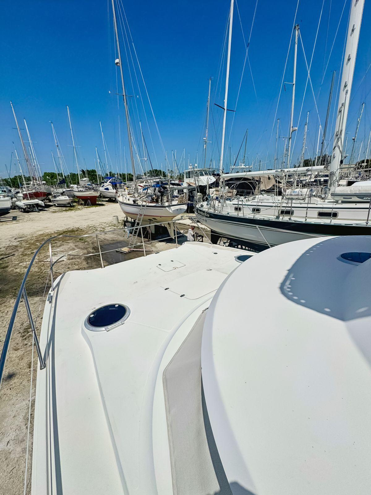 2024: 120V system installed, New shafts. bearing and seals, props refurbished, new Bimini frame and top, four 320 watt solar panels installed, a new refrigerator freezer placed on back deck. Starlink was installed. 12v outlets by helm and in salon. Two new smart TVs. New hot water element and gasket. Rubber deck with wood appearance. new electric dingy davit. 6 new batteries Nov. 2024