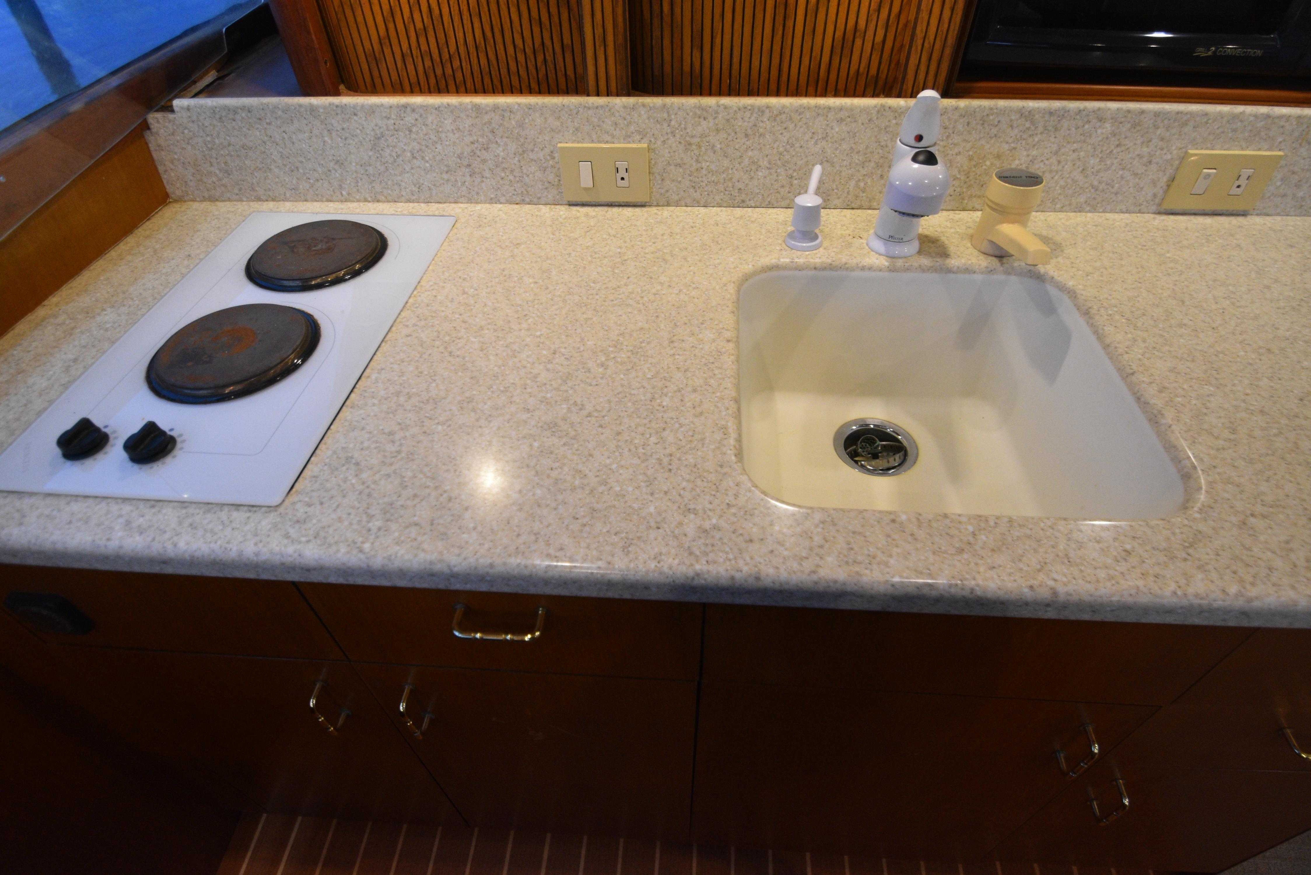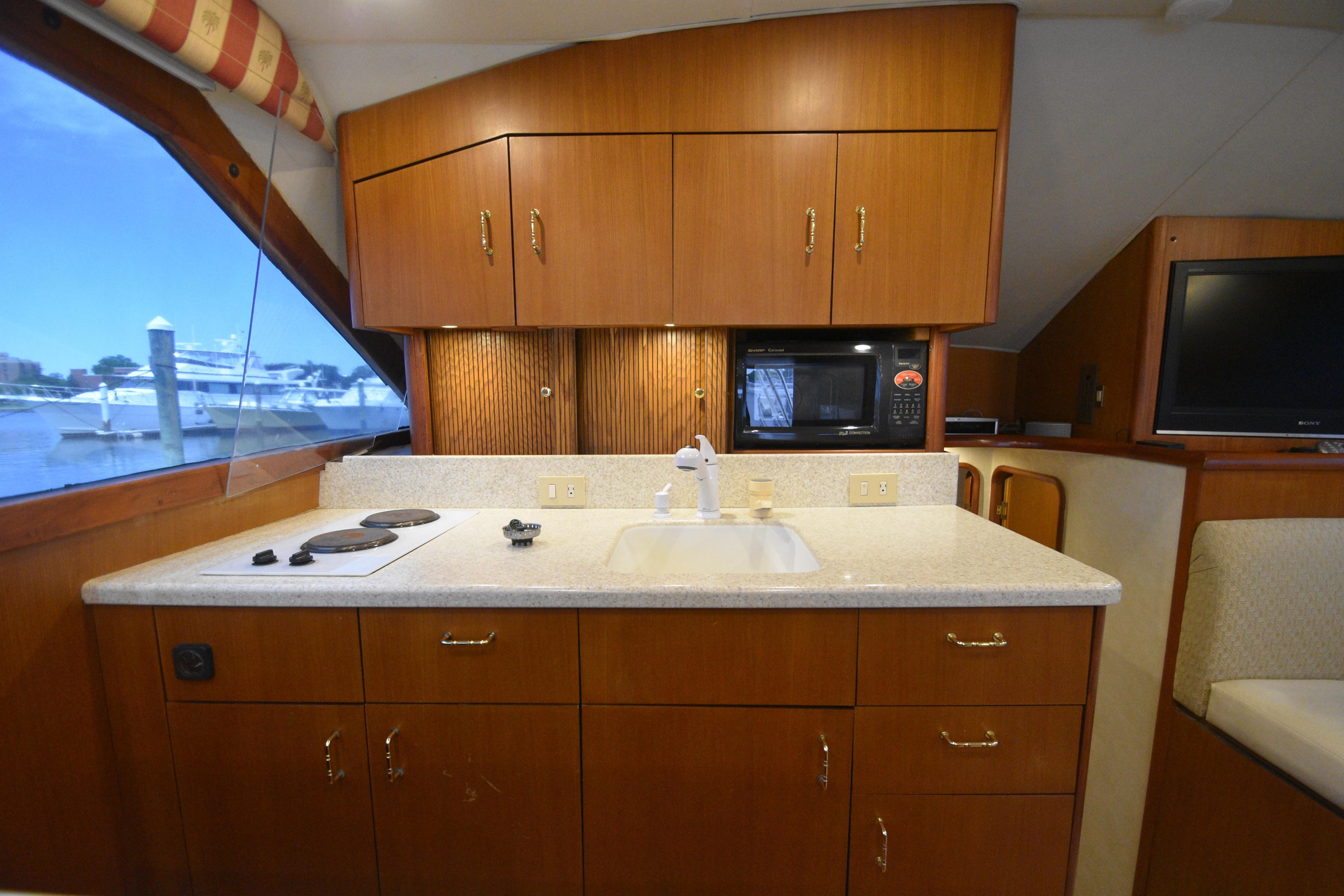 - Counter space with flat screen HDTV mounted to the wall (stbd side)