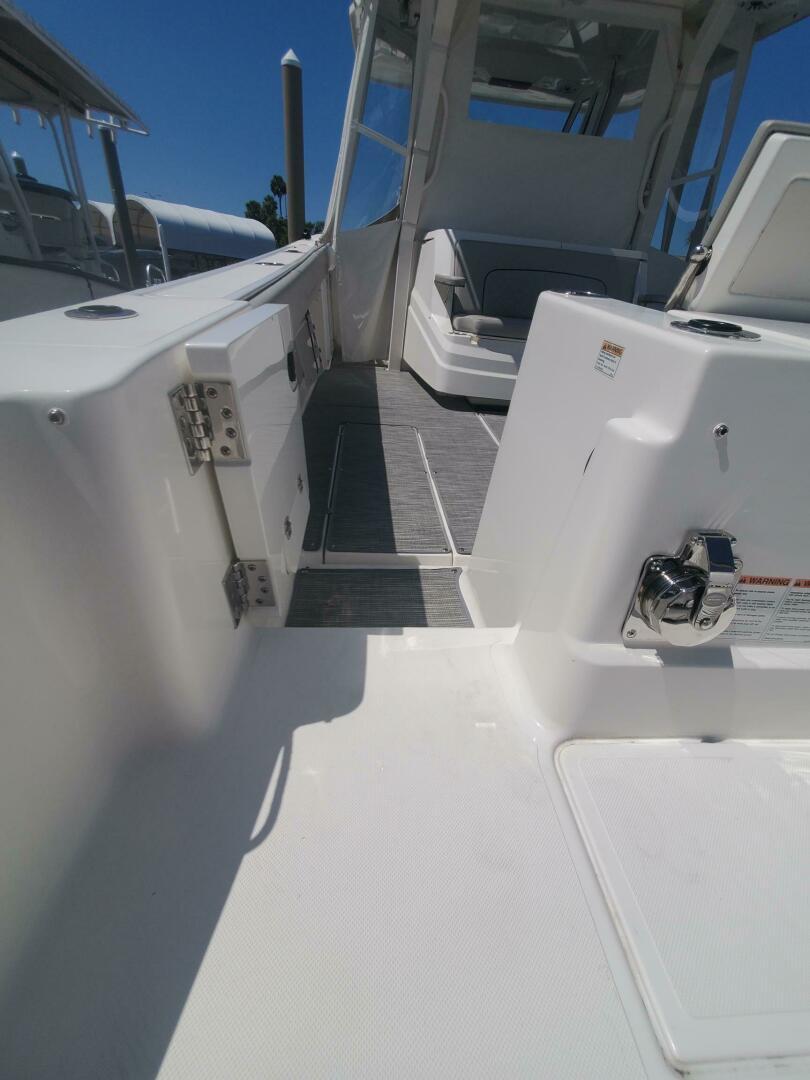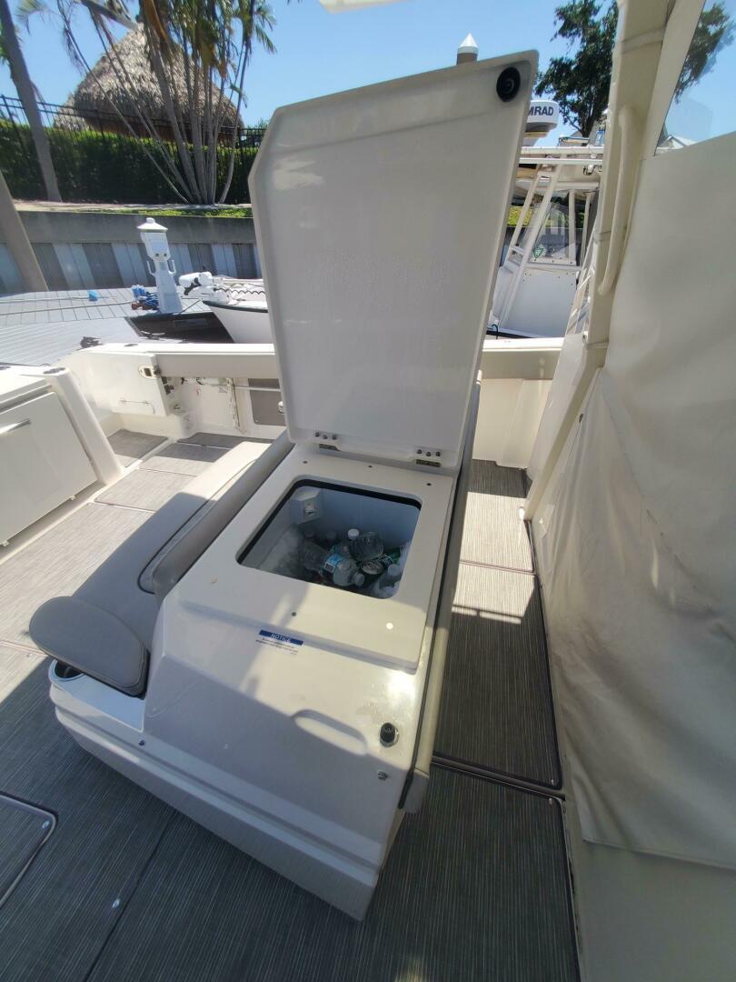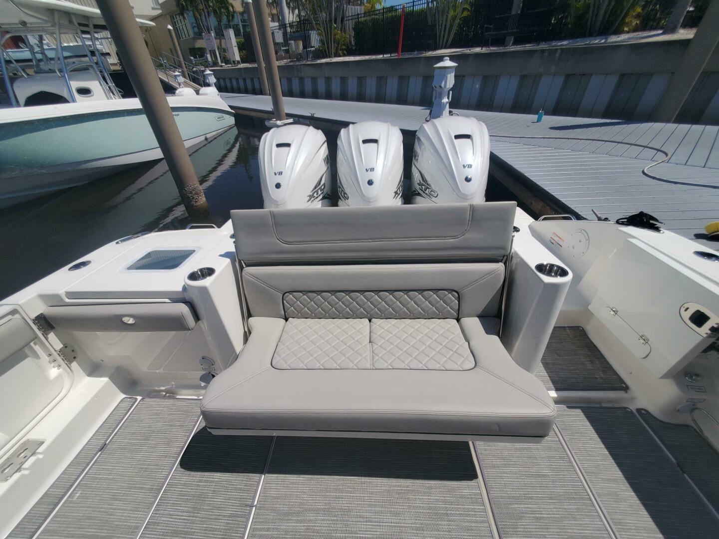- Aft facing cockpit seat, Electric, slides aft for access to cockpit grill, refrigerated drink box and tackle storage