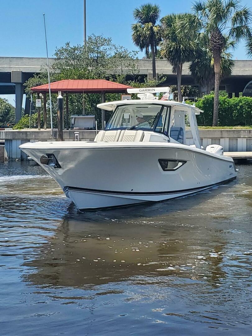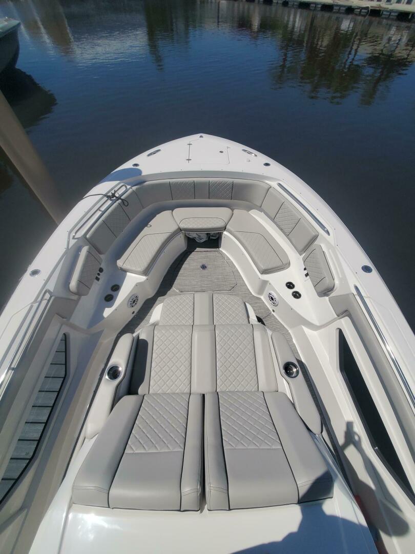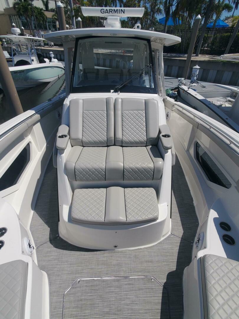 37 Versatile in her job description, this 2023 Pursuit S378 "FIJI KAI" lends herself perfectly to the cruising family or fishing family with a comfortable layout below, full head, galley equipment, storage, air-conditioned helm area with removable isinglass for weather protection and outriggers.Her triple 425 Yamaha engines have extremely low hours, still under factory warranty and transferable to her next owner. For stability cruising, she offers the optional SEA KEEPER gyro stabilizer. For easy docking she offers the optional Yamaha joystick control system. The 2023 Pursuit S 378 “FIJI KAI” must be seen to be fully appreciated. She is priced for an immediate sale, offers tremendous value, transferable warranties, and is the perfect alternative to a new boat.