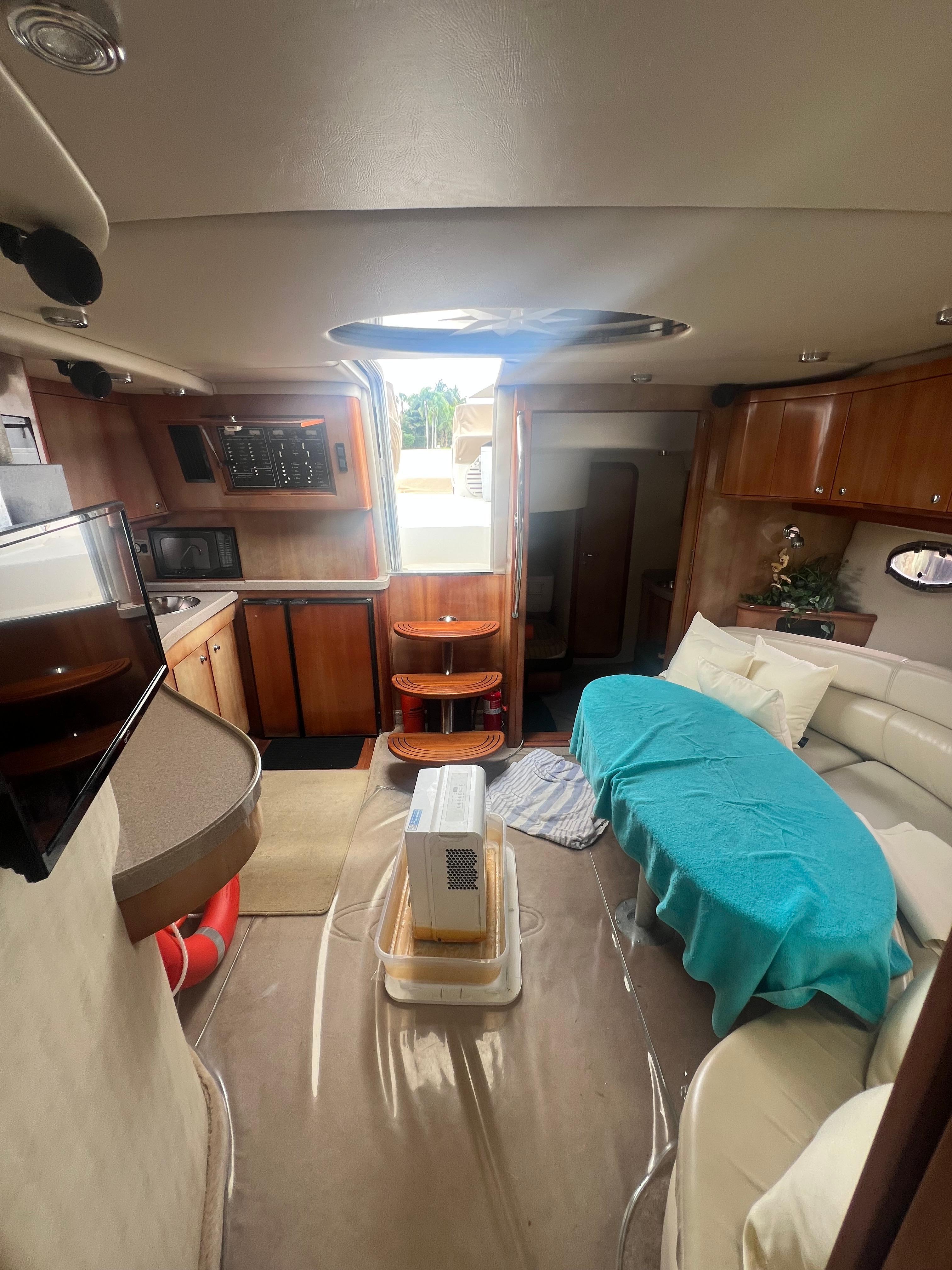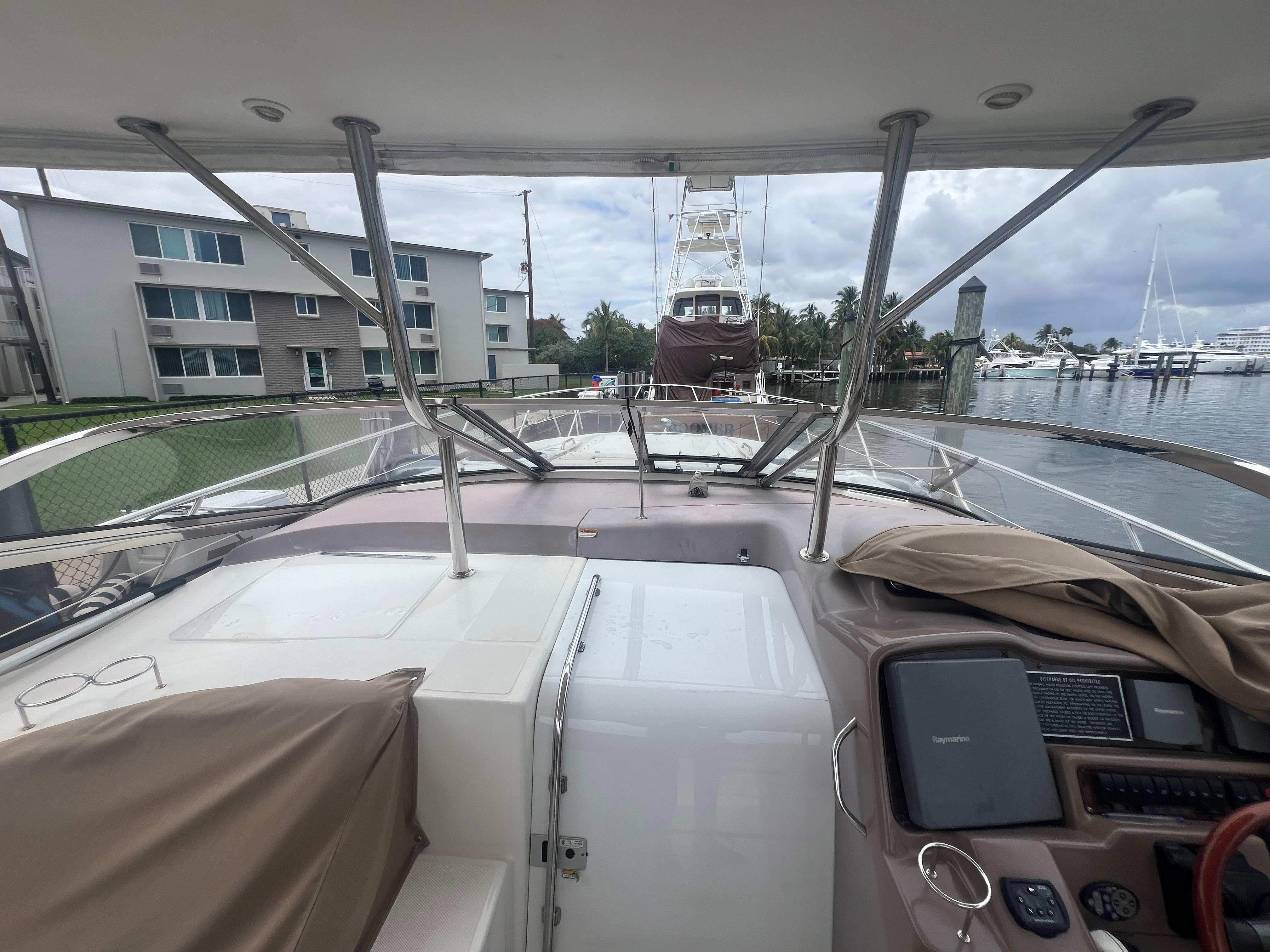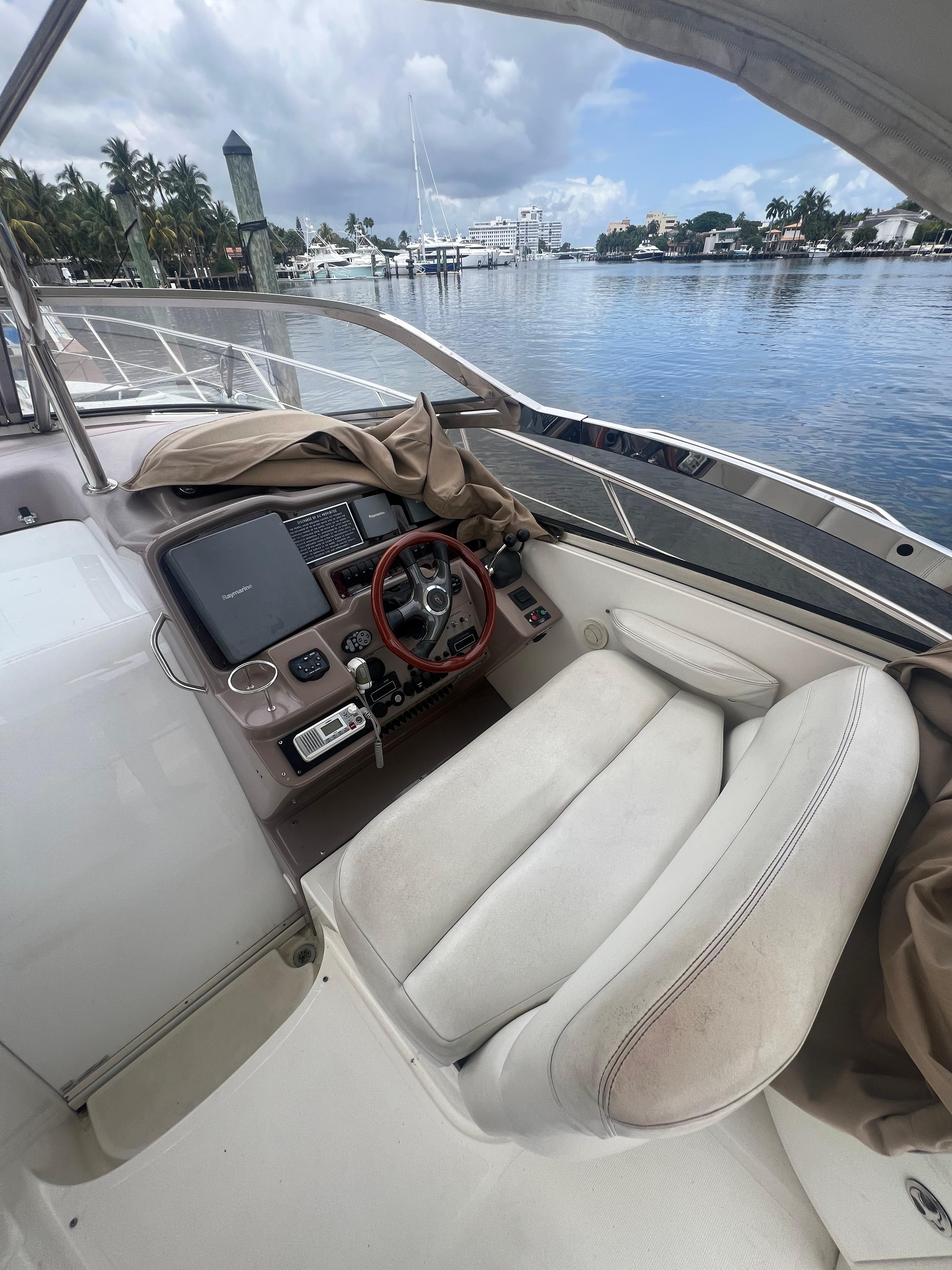 Regal Commodore 4260: Elegance in MotionAs the flagship of the Regal lineup, the Commodore 4260 stands out as a true showstopper—stunning at the dock and equally impressive offshore. With a cruising speed of 25 knots, she delivers a smooth, confident ride through a wide range of sea conditions, offering performance and comfort rarely found in a yacht of this class.Smart Design Above DeckThe cockpit is designed for both socializing and functionality. A spacious U-shaped lounge faces forward toward the helm, where a double-wide captain’s seat allows for comfortable two-person navigation. Aft, facing bench seats provide additional space to relax, and a walk-down ladder under the bench grants convenient alternate engine access. A generous transom locker offers organized storage for fenders, lines, and gear, complete with integrated cargo nets.Refined Comfort BelowBelow deck, the 4260 impresses with its thoughtfully appointed layout. The forward stateroom features an oversized berth with a true innerspring mattress, hinged to reveal large under-bed storage. Additional amenities include two full-size drawers, a cedar-lined hanging locker, and a built-in TV/VCR. A recessed bookshelf adds an elegant touch.Both staterooms are designed for privacy, equipped with solid hardwood pocket doors—not curtains—and each features its own private head.Spacious Salon for Living & EntertainingAt the heart of the interior is the expansive, relaxing, spacious salon, anchored by a luxurious nine-foot LeatherCrest sofa—perfect for lounging or entertaining guests. The open layout enhances the sense of space and comfort throughout.Call Santo Murray for more information.