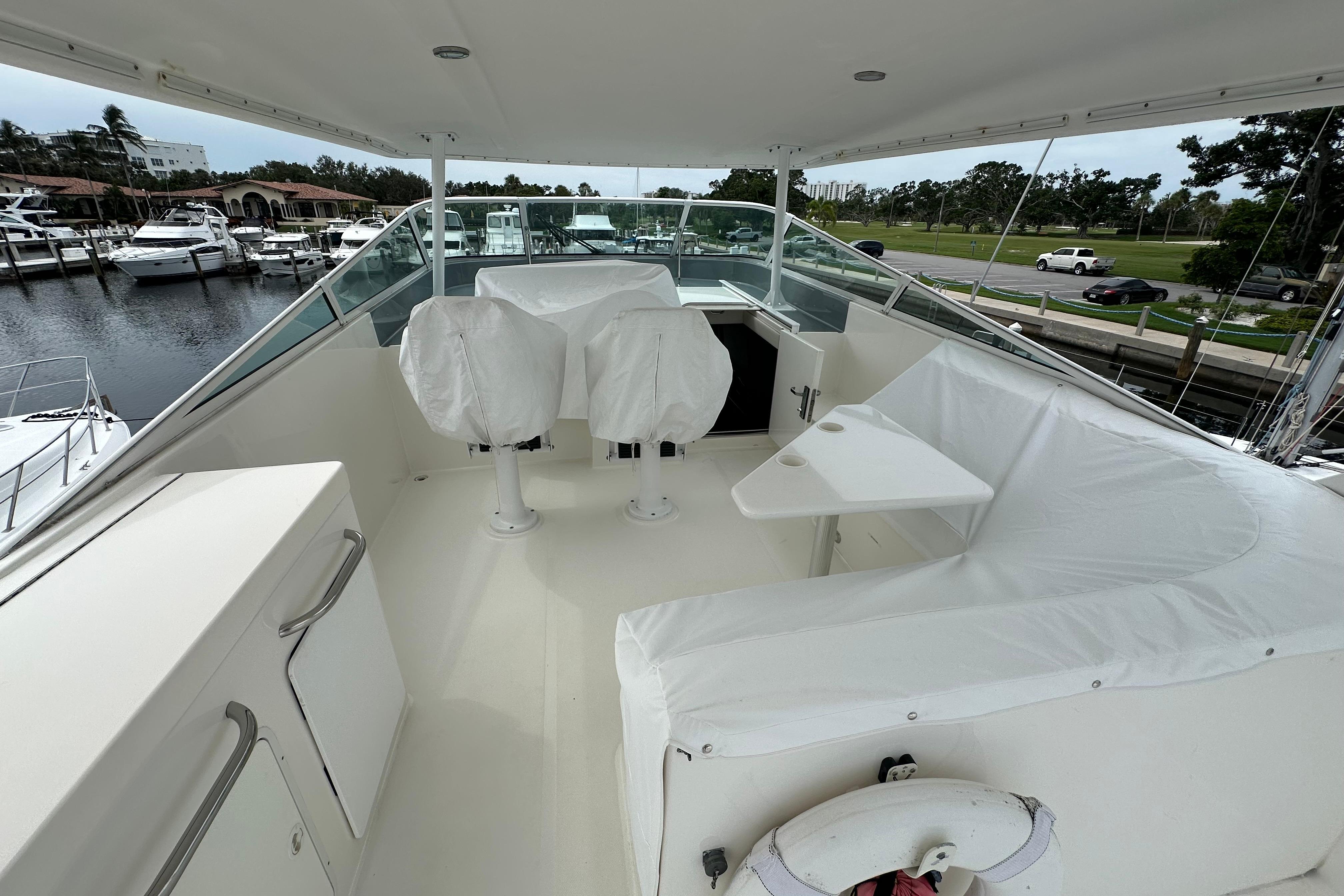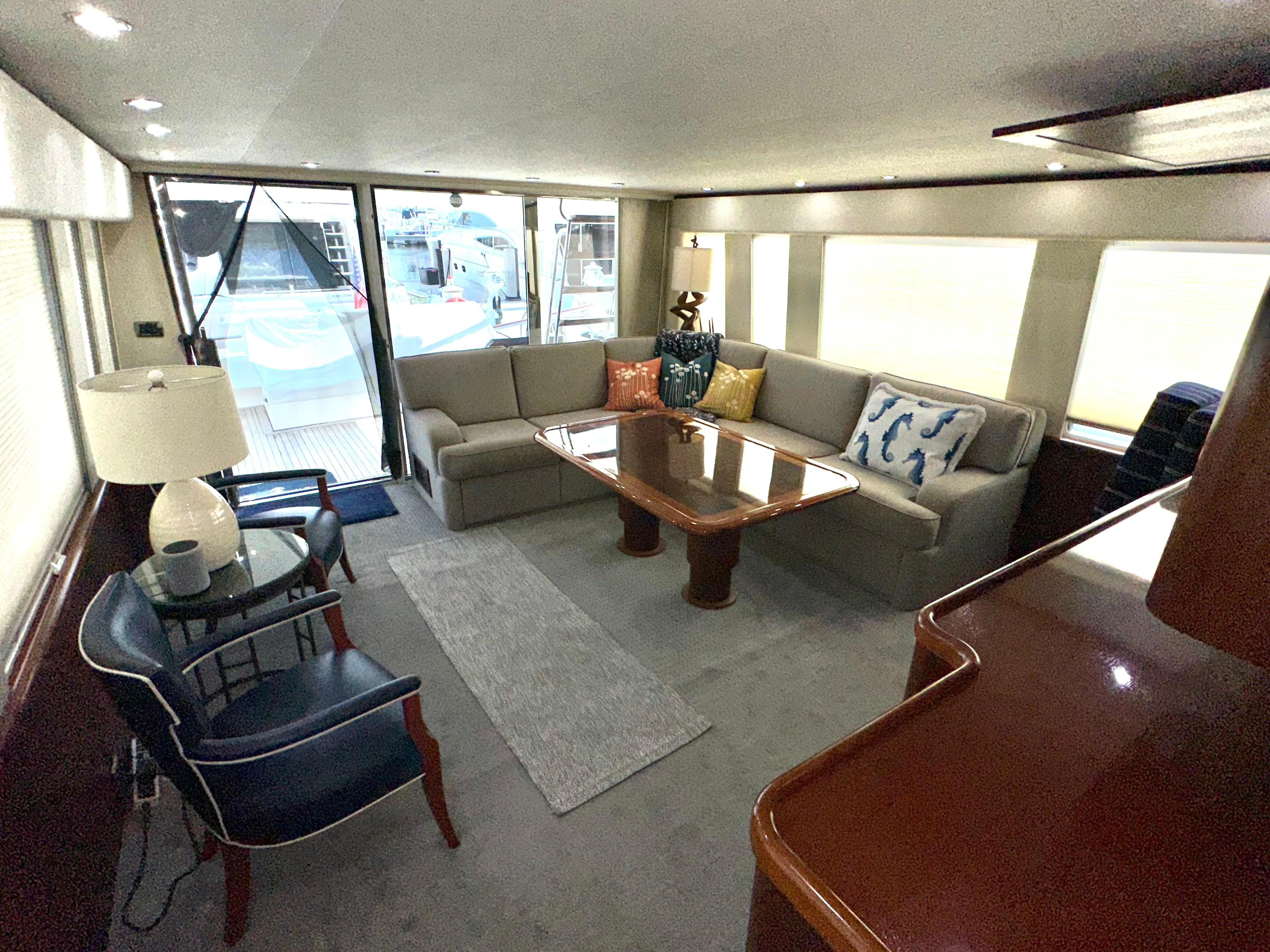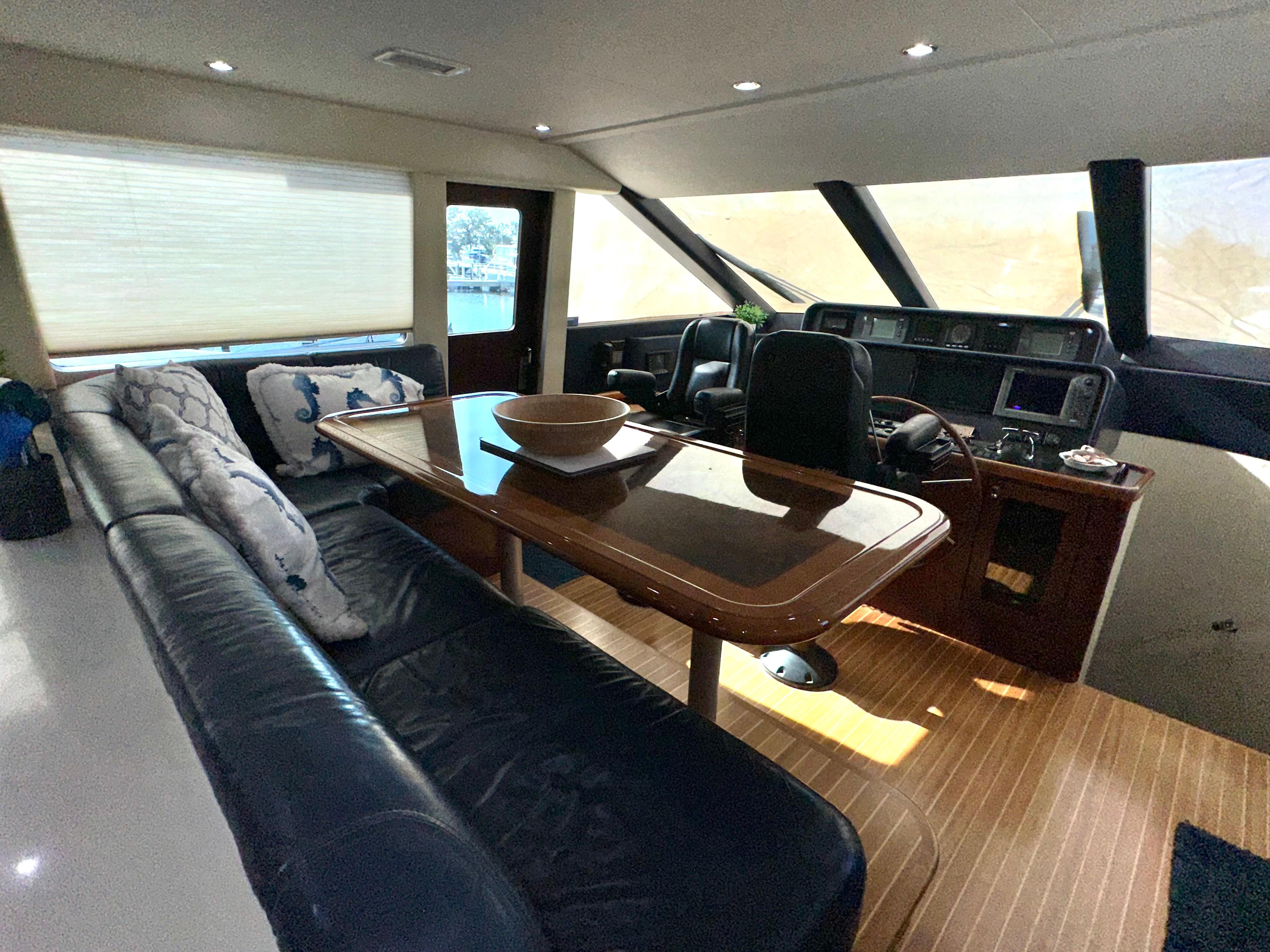 The Flybridge can be easily accessed from the interior staircase between the Salon and Galley or from the Aft Deck ladder. The Pilothouse has doors to port and starboard. The spacious Bridge features a large seating are with dining table, Hardtop with enclosures. Designed for entertaining, there is a 360-degree view for navigation.
