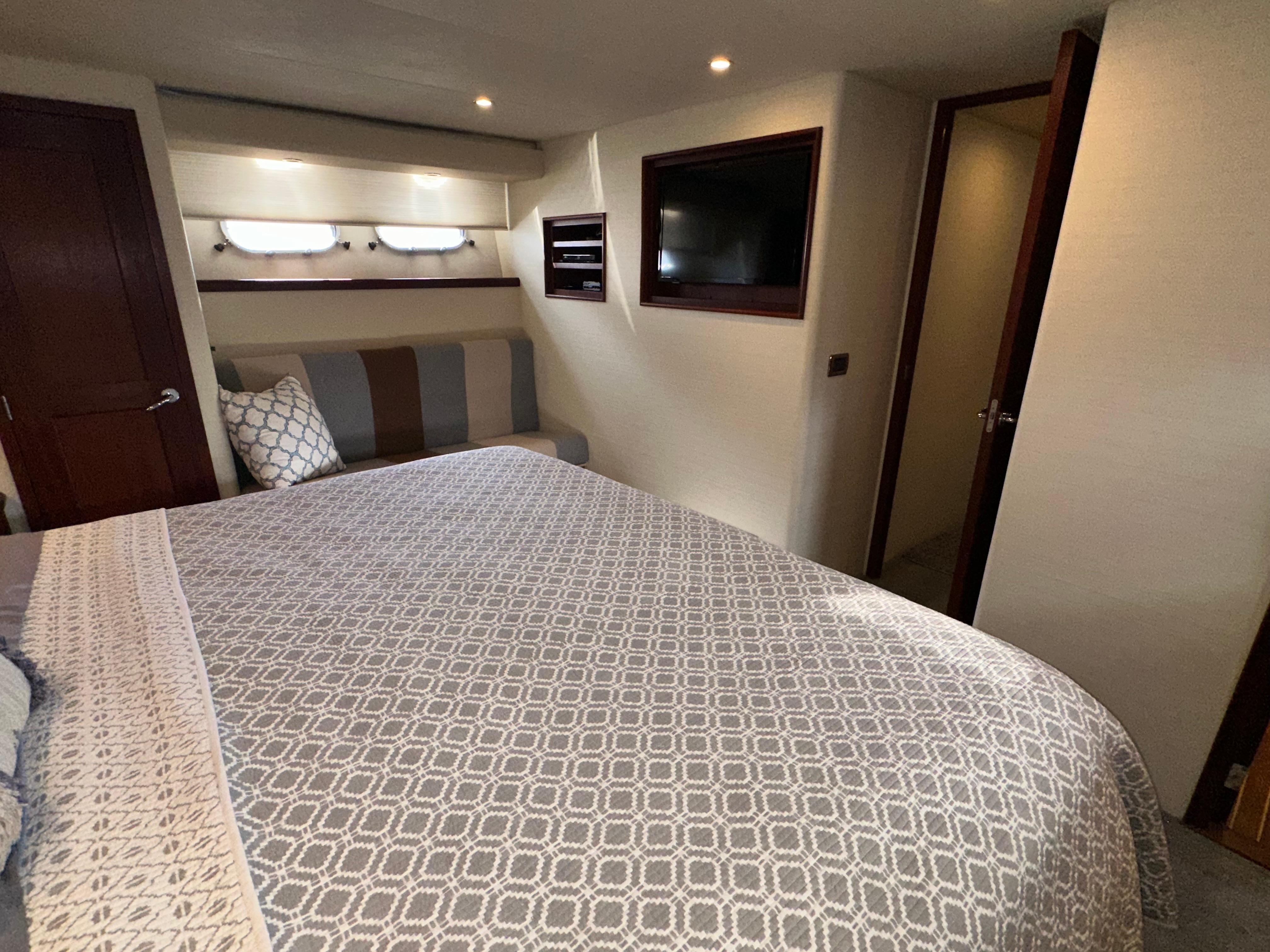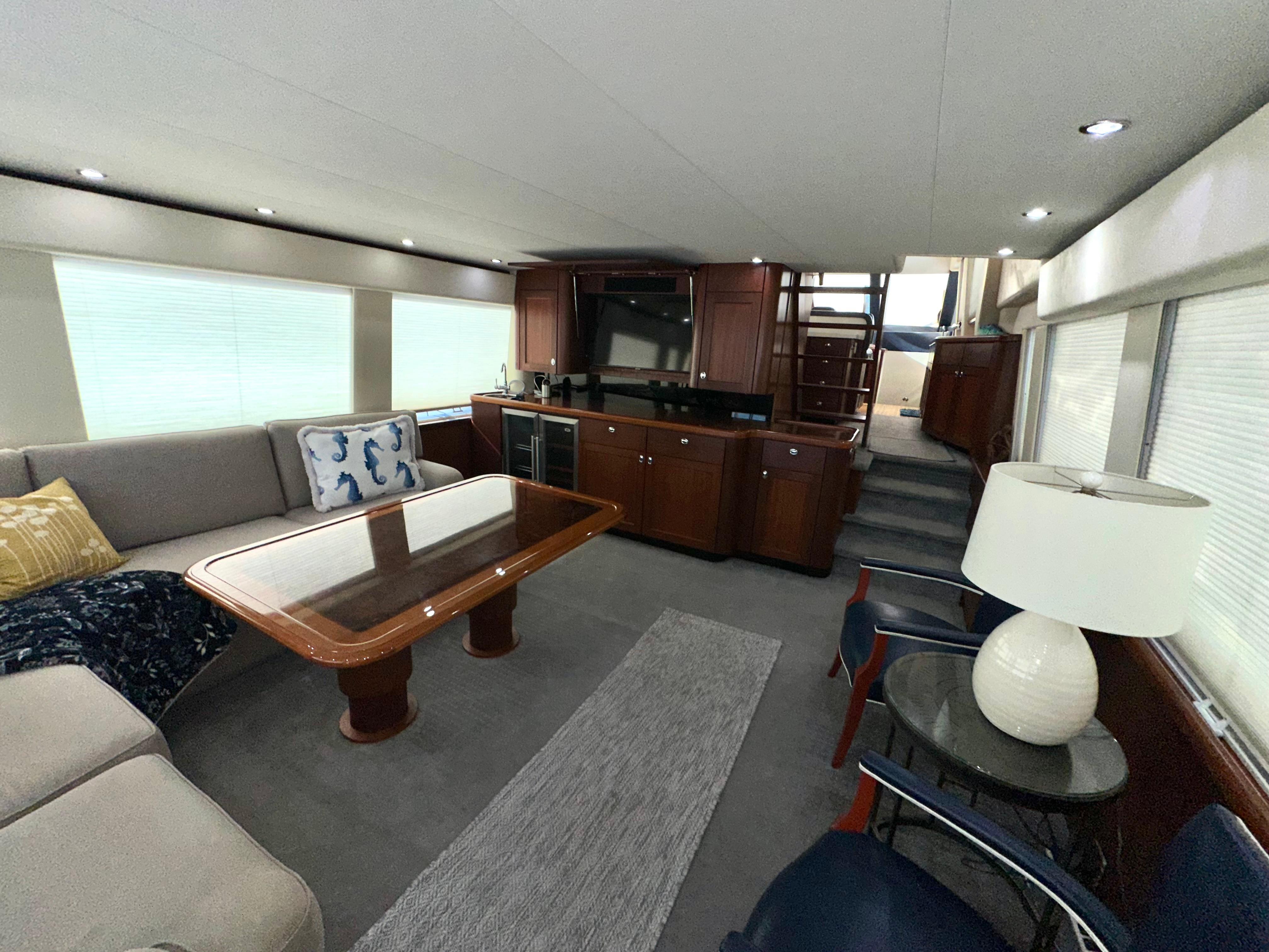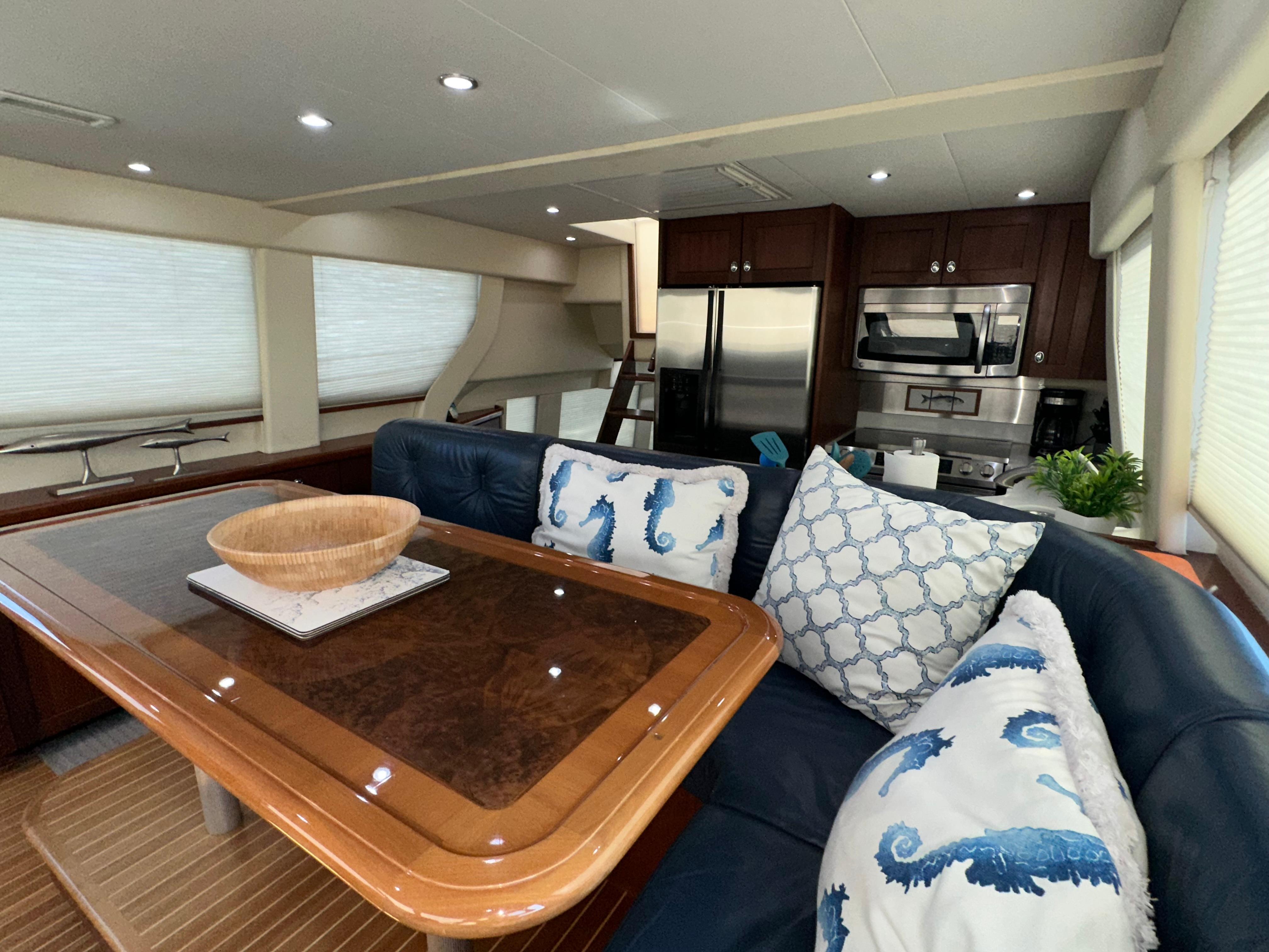 The Flybridge can be easily accessed from the interior staircase between the Salon and Galley or from the Aft Deck ladder. The Pilothouse has doors to port and starboard. The spacious Bridge features a large seating are with dining table, Hardtop with enclosures. Designed for entertaining, there is a 360-degree view for navigation.