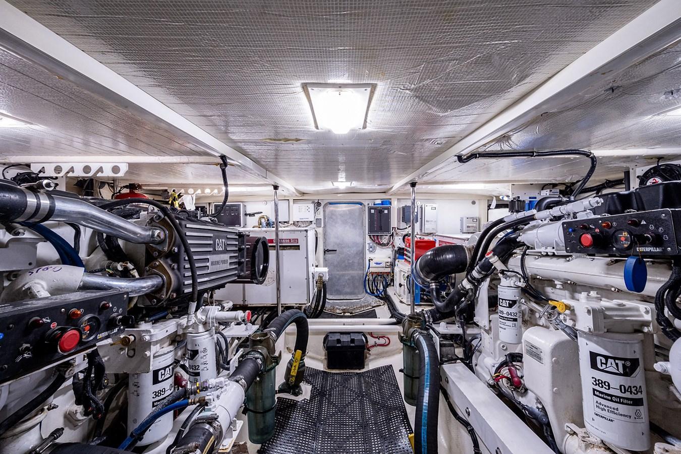 The Engine Room is full stand-up height and very easy to move around in. Pride in ownership is reflected in the condition of the mechanical space. You can easily get around both main engines for easy service and inspection.