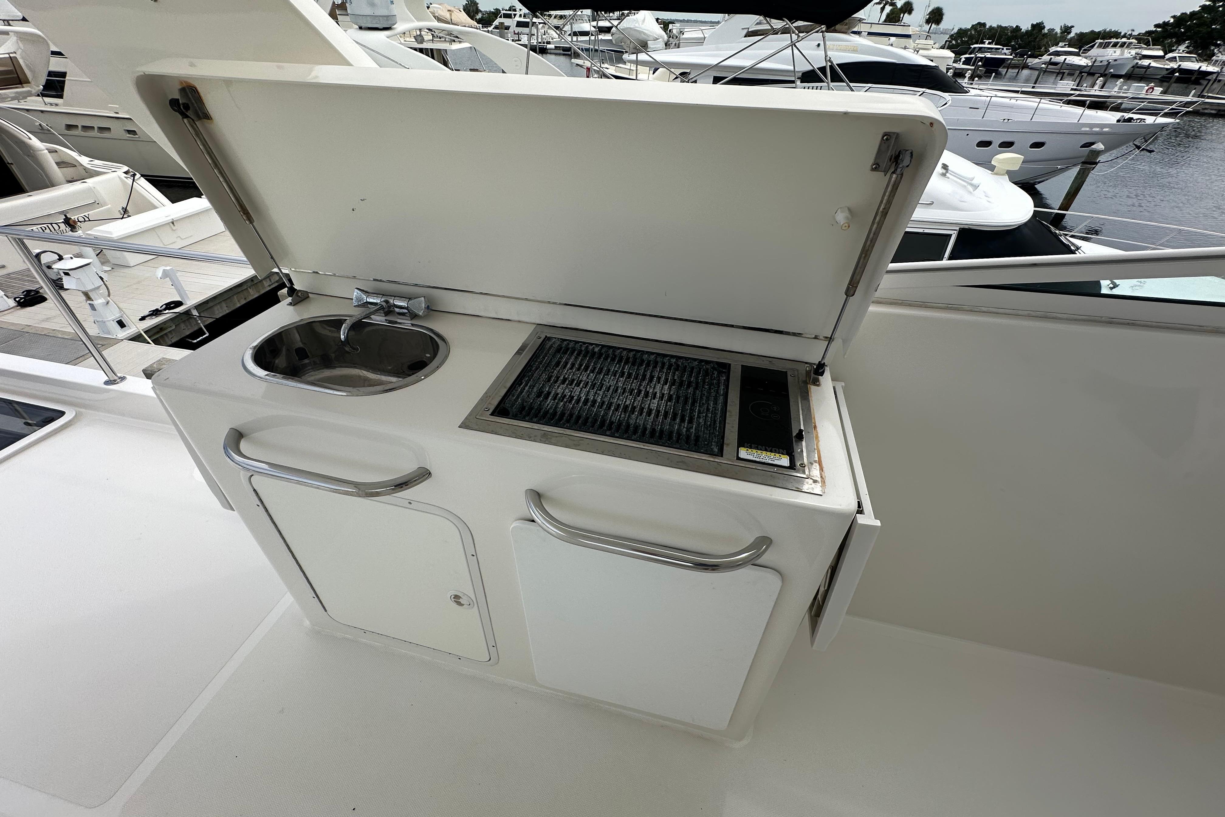 - In-deck storage lockers on Aft Deck for cleaning supplies, and large storage locker on Swim Platform for boarding ladder and large tenders