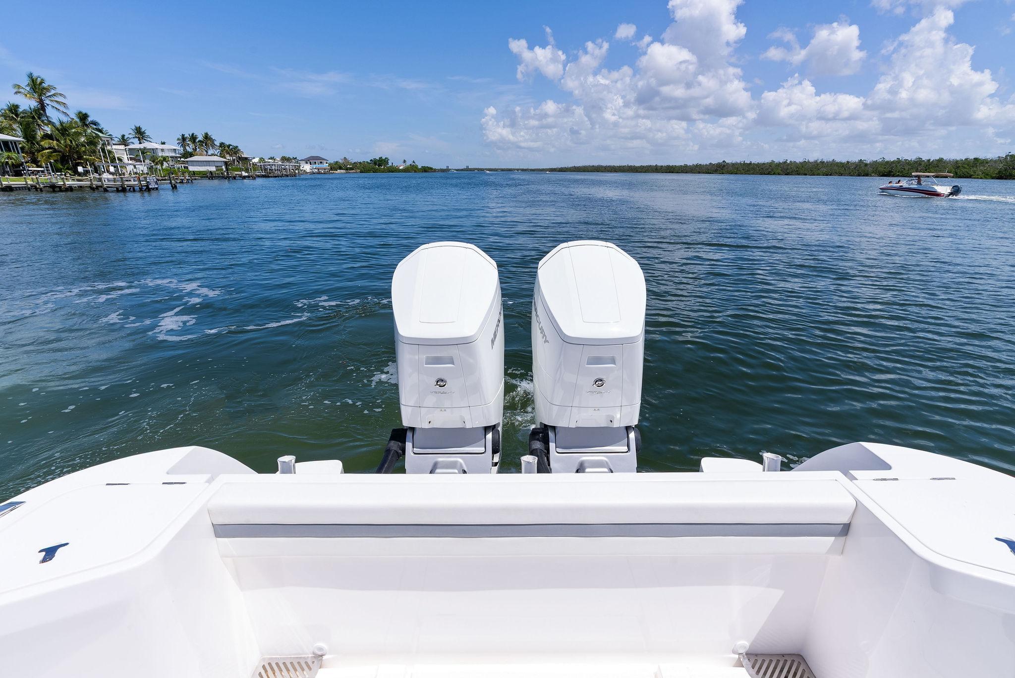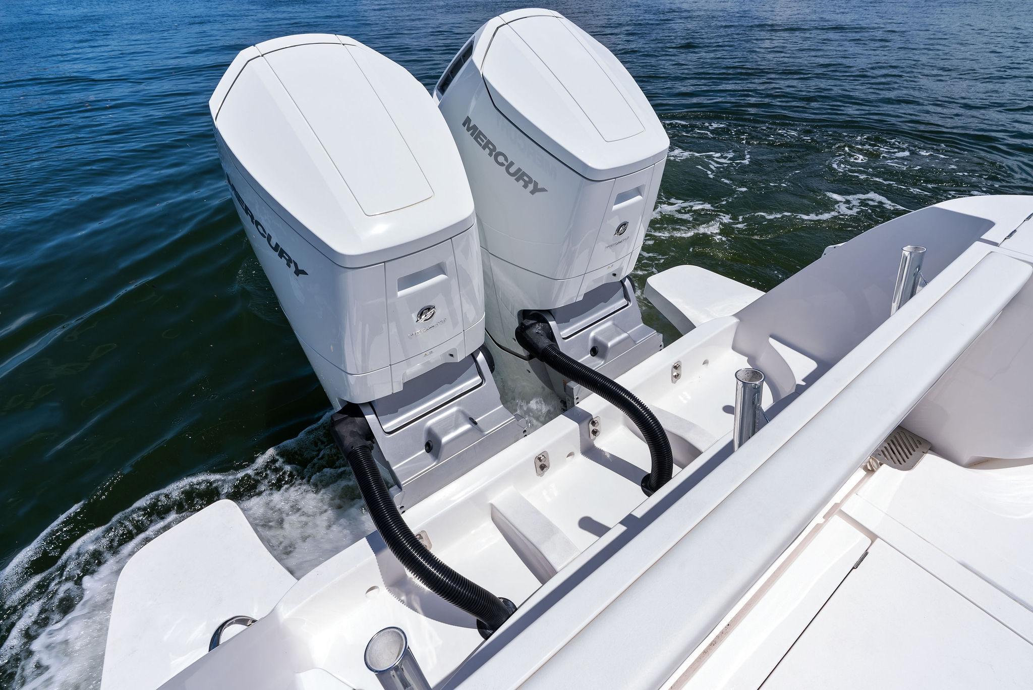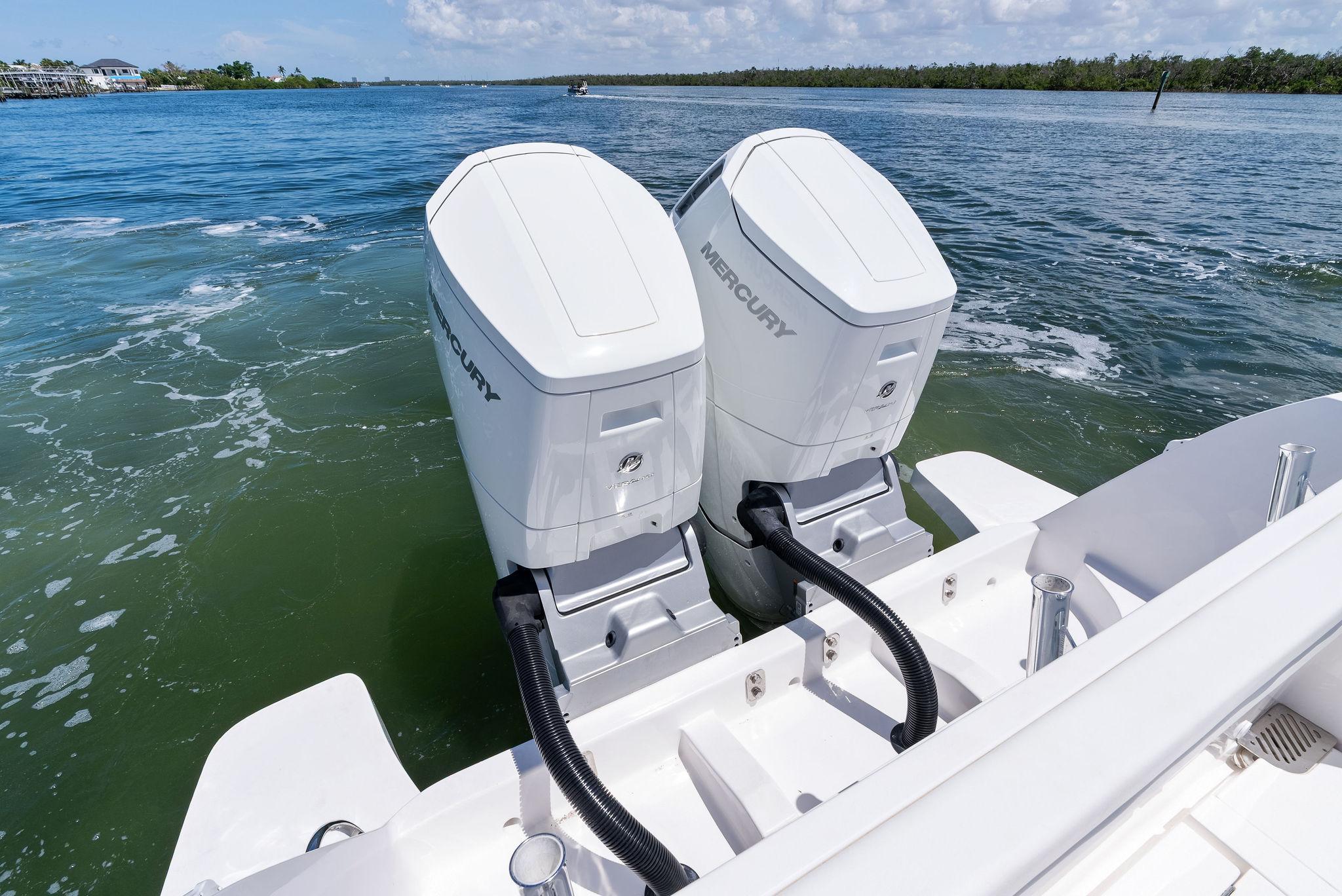 - Twin 600 hp Mercury V12 Verado 90 hours at the time of listing