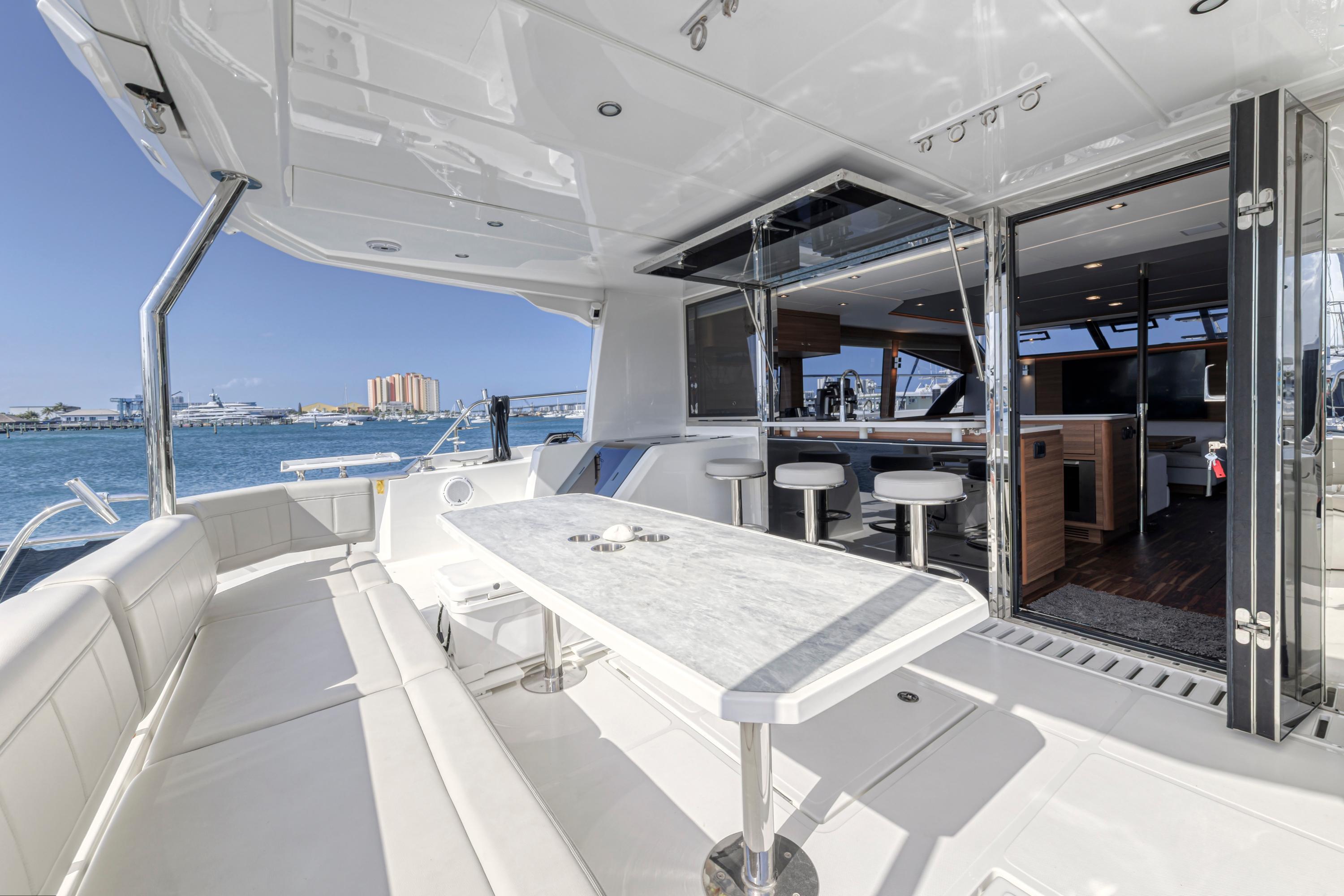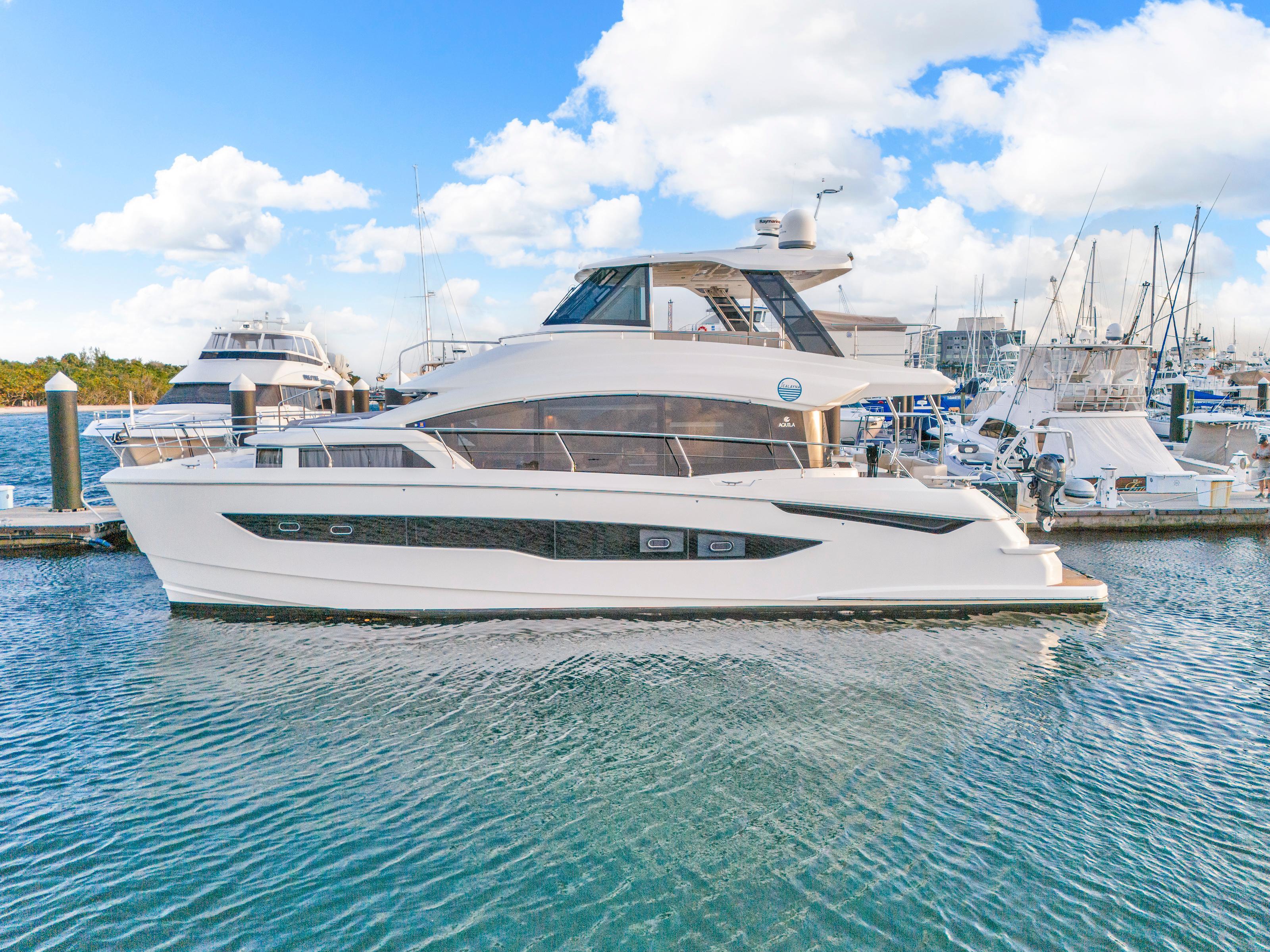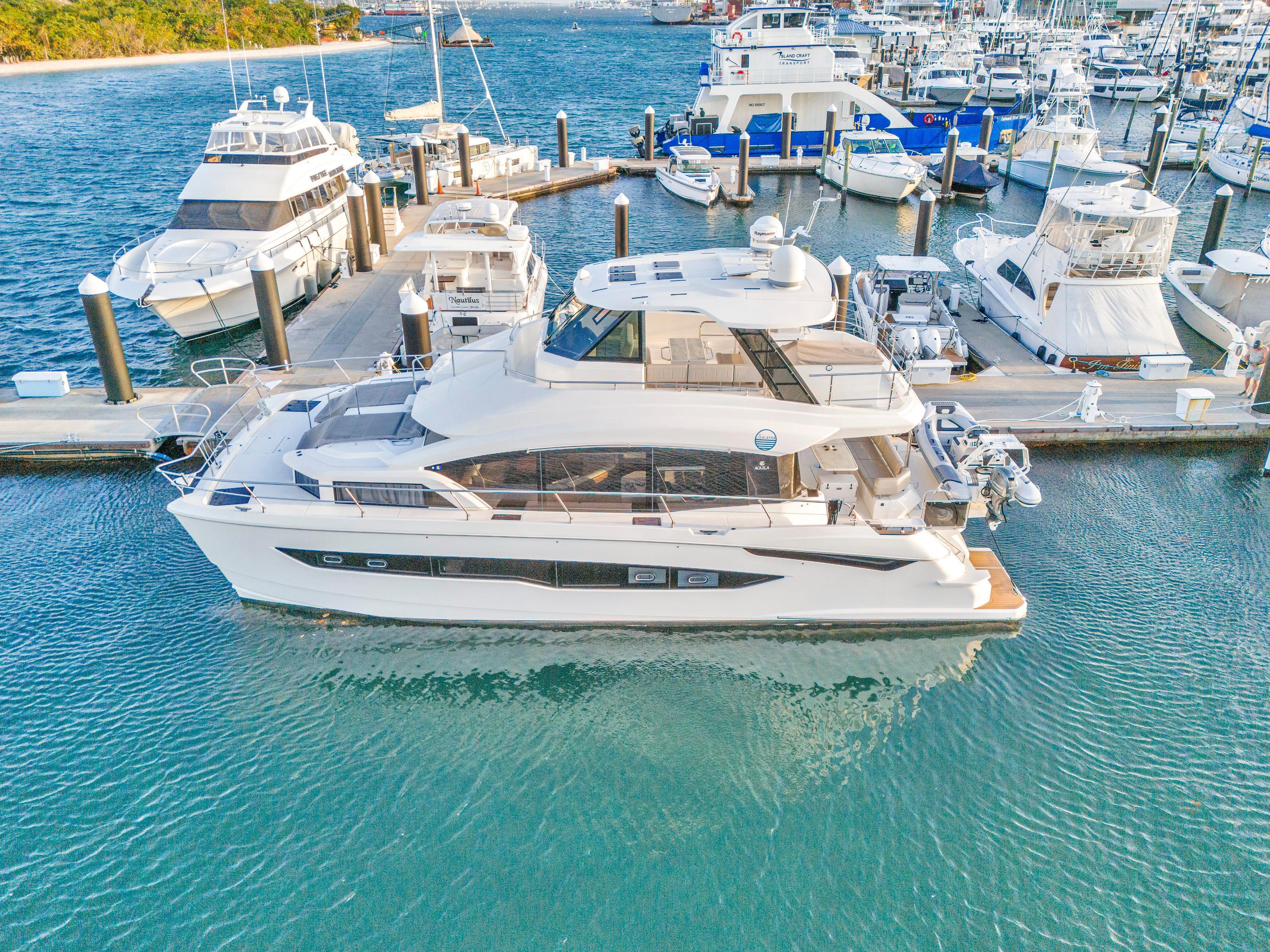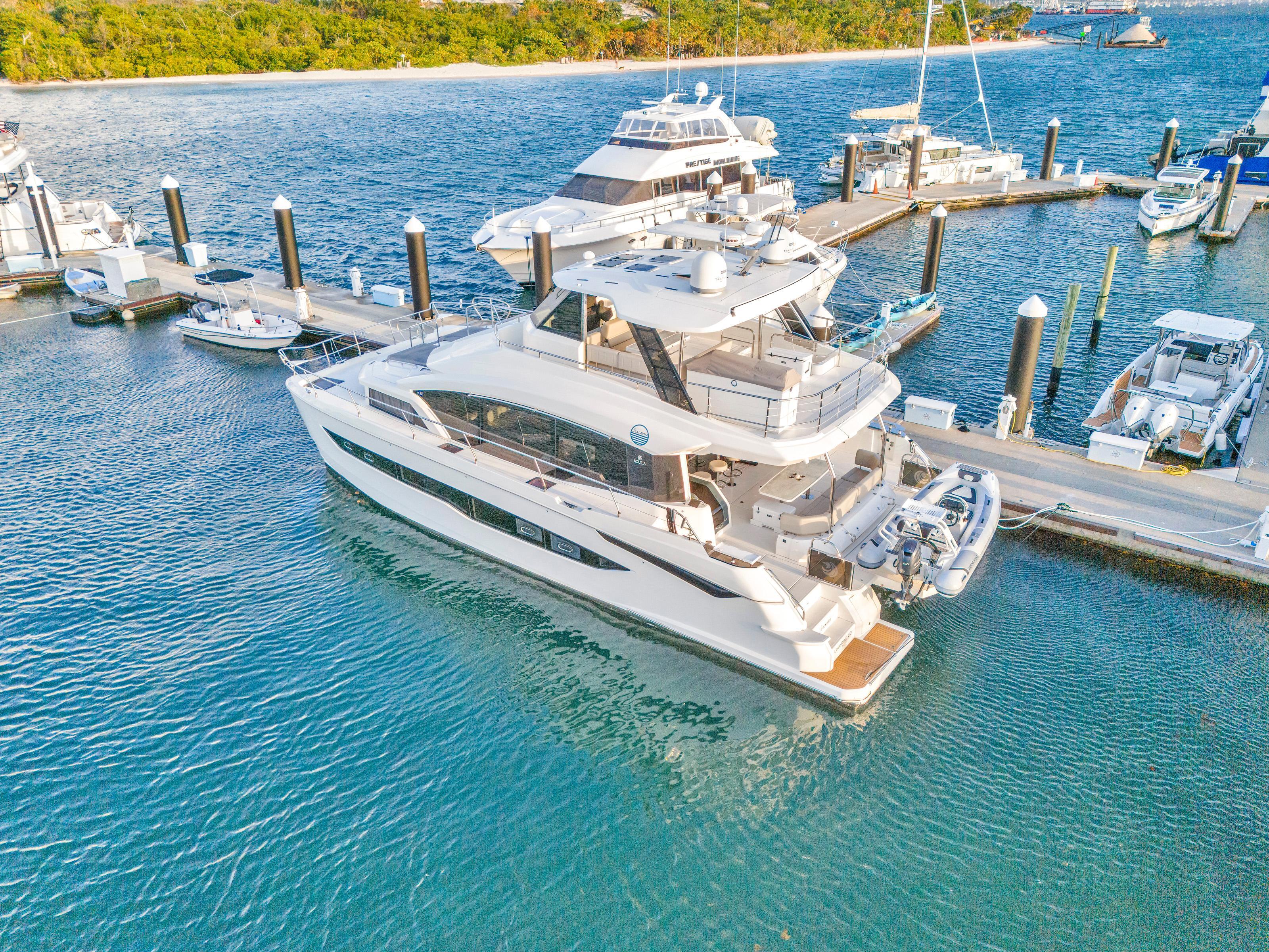 US IMPORT DUTY / TARIFF PAID ! 2023 Aquila 54 Owners Version in Excellent Condition, Never Chartered The Aquila 54 Yacht Power Catamaran embodies the reliable features and construction methods of the hundreds of Aquila yachts and boats cruising the waters of the world. Owners will delight in panoramic views that fill the master cabin with natural light through large hull side windows, adding to the spacious feeling of the full-beam forward master cabin. Engineered with an open flybridge and solid glass front windscreen, the Aquila 54 Yacht Power Catamaran features the versatility to appeal to a global audience of boating enthusiasts.Features and highlights include:New bottom paint June 2025New house batteries October 2024Engines and generator just serviced, all fluids changed2 xVolvo Penta D6 480 - Total Power 960hp ~200 engine hours4 Blade Fixed PropsBow ThrusterHydraulic dinghy lifting platform aft between hullsElectric winches port and starboard aftAqua Pure Water Filtration SystemWabasto BlueCool V-PRO Series air-conditioning system exceptionally efficient thanks to variable speed controlCentek Marine exhaust system Kohler 21kW 60Hz/110v generator with 554 hours + sound enclosure, remote control & fuel transfer pump Shore power cable master stowage (2)Water maker (41gal./hr) Spectra Newport - 1000 w/ Z-ion protection systemDockside water connectionSea water deck washdown pump for bowGalleyGalley UpKenyon Bridge Induction CooktopWine refrigeratorFISHER & PAYKEL Full sized refrigerator and freezerCabins- 4 Cabin / 4 Head Owners Version Model - 3 Cabins + crew cabin aft cockpit with separate entrance and head (currently used as storage)Sanimarin Sea freshwater automatic toilets ElectronicsRaymarine Electronics Package 2x Raymarine Hybrid Touch MFDRaymarine Auto PilotRaymarine VHFSLEIPNER Bow Thruster control on flybridgeDockmate - wireless docking system CZone display flybridge and inside helm digital switching AC, DC controlsFusion Marine Stereo systemRing Security Cameras solar poweredDirect TVStarlinkMastervolt 6A Waterproof fixed-mount battery chargers for Engine and GeneratorBlue Sea SystemsFlybridgeGlass windscreen at helm controlsKenyon Built-In Electric Grill Wet bar with Avantco Icemaker Isotherm Refrigerator / FreezerStainless steel sinkFlip down TV mount on flybridge - Samsung Flat Screen TV installed in ceiling panel hatchMiscYeti Cooler with bracket installed in aft cockpitInstalled fish cleaning/filet table port aft cockpitSwim ladderTender - Highfield center console with Yamaha 60hp 4 stroke outboard