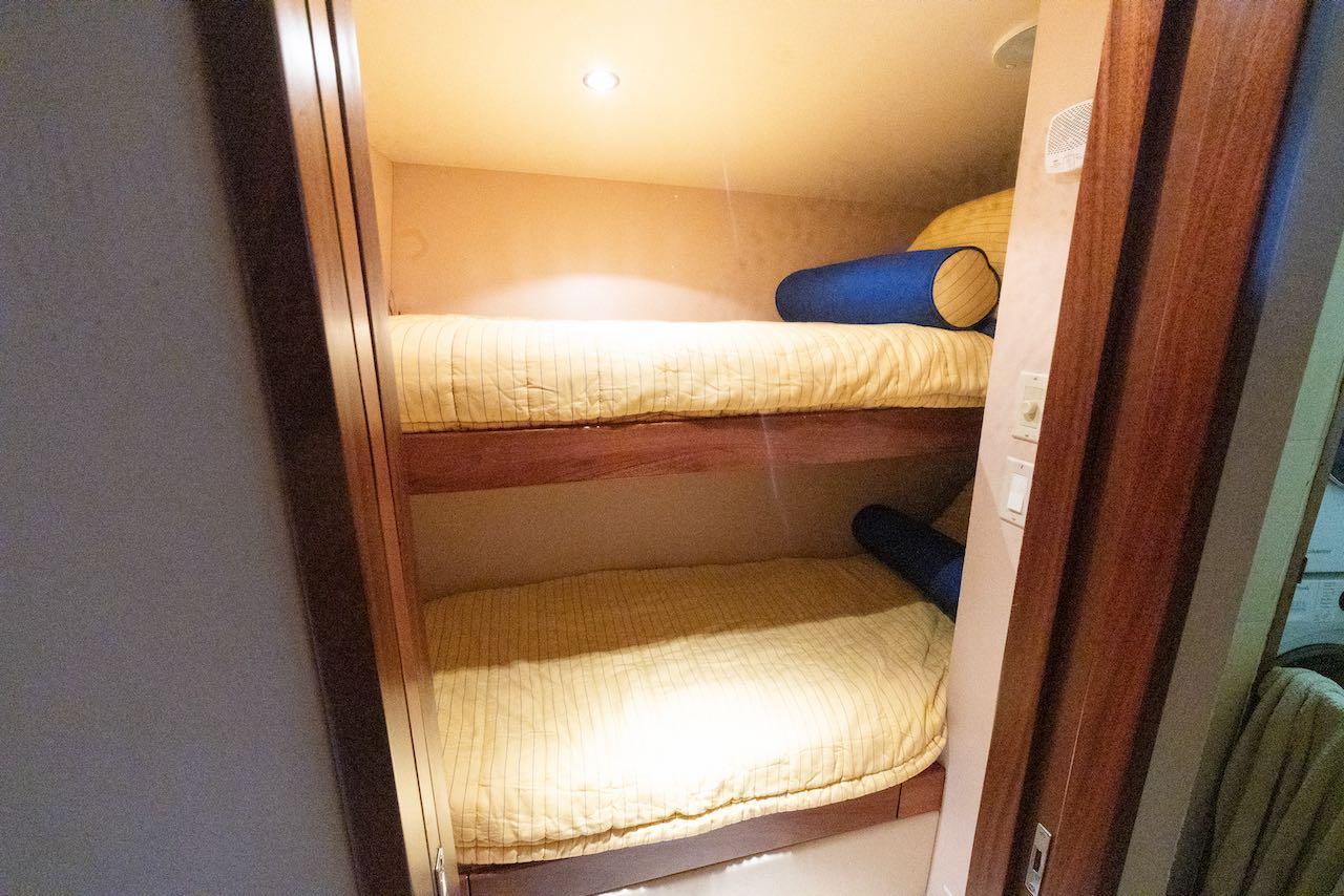 - Port storage room forward of the Galley off the stairs to the lower deck with U-Line wine cooler, built in storage, and water manifold.