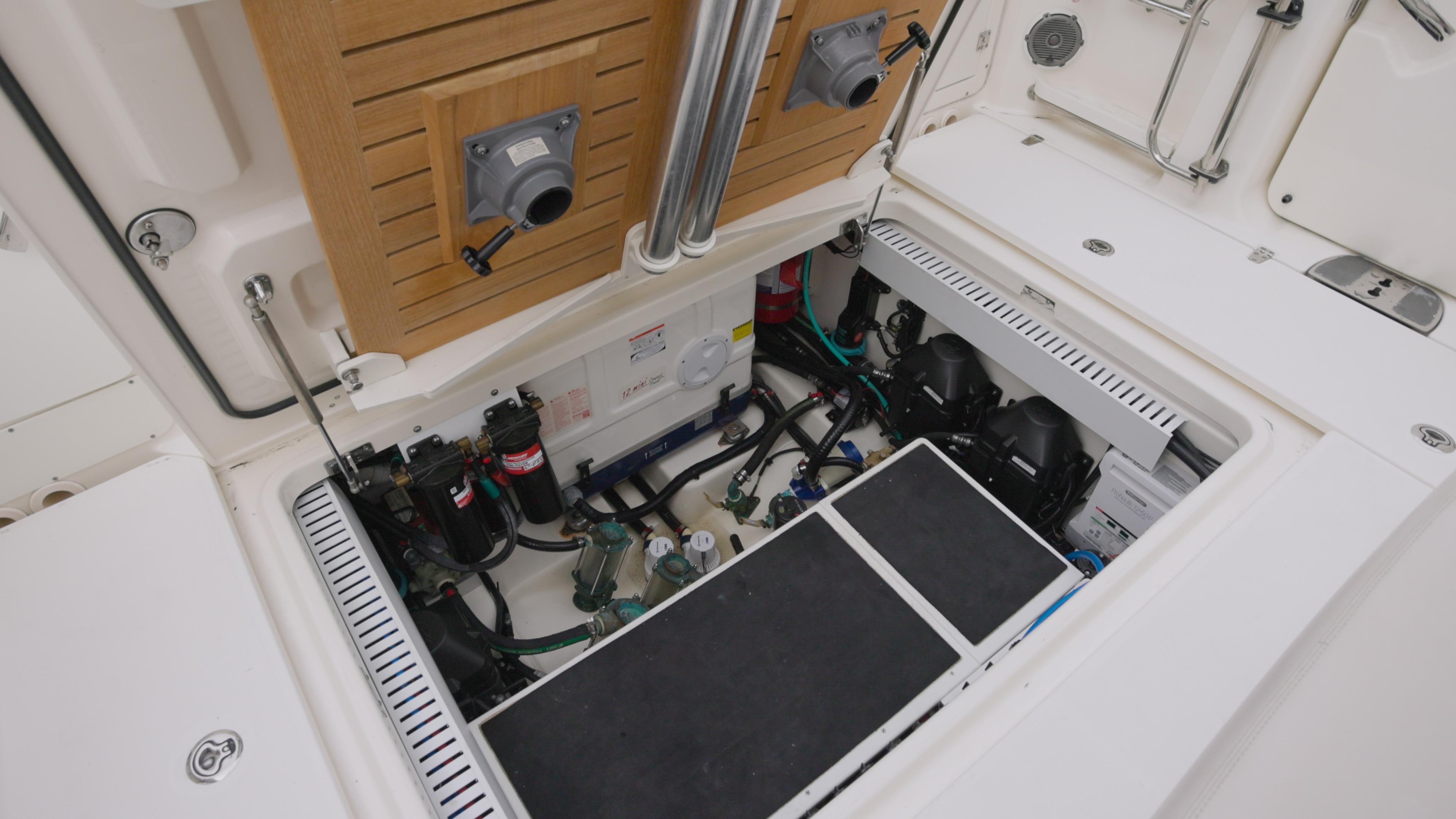 - Insulated in-floor fishboxes with pump-out; aft (2) forward (1)