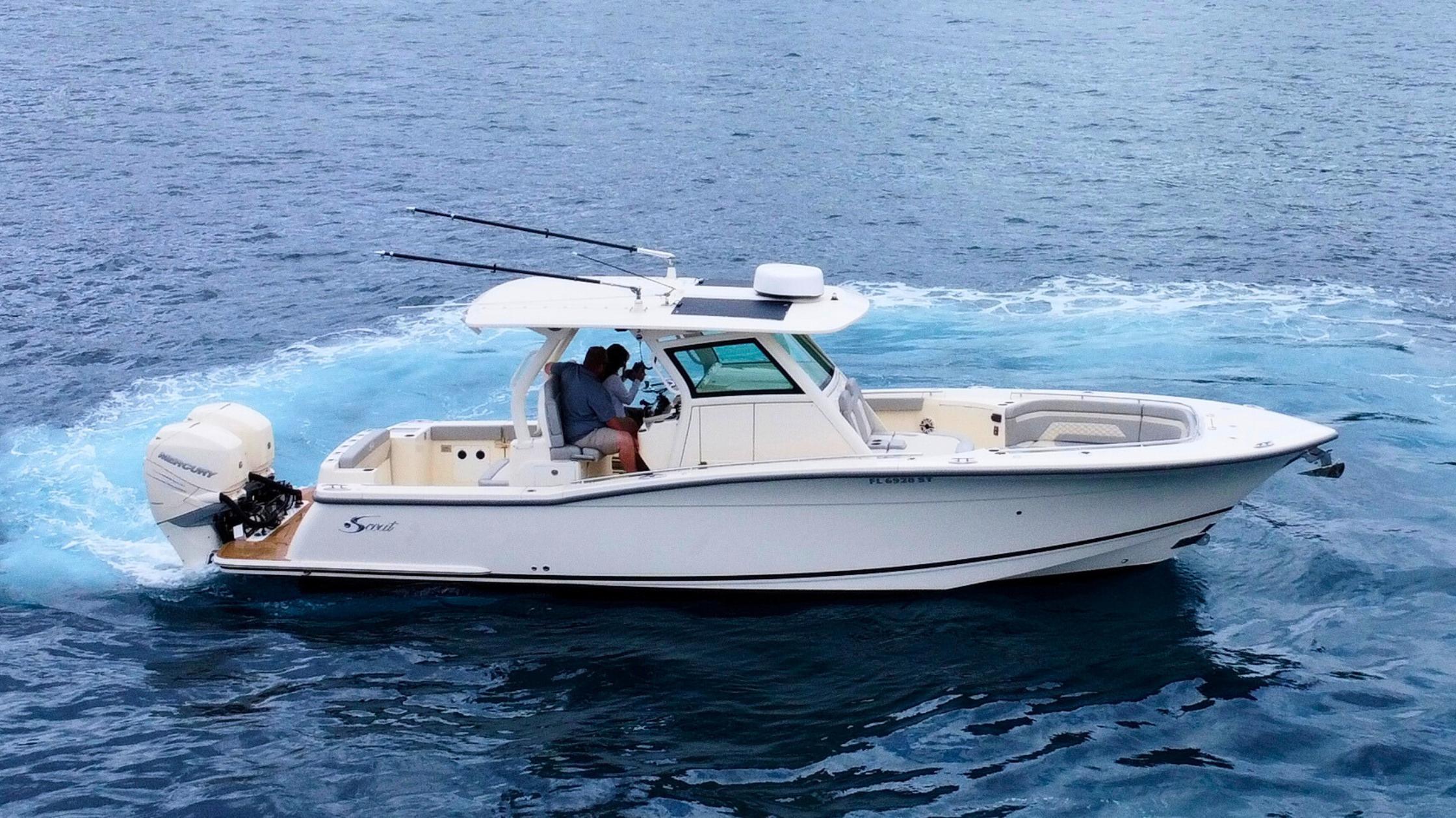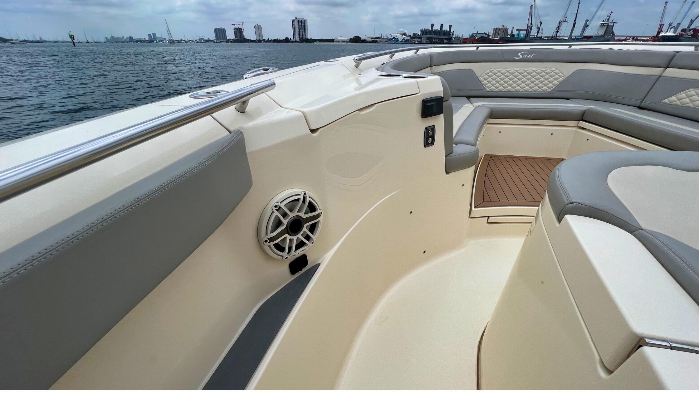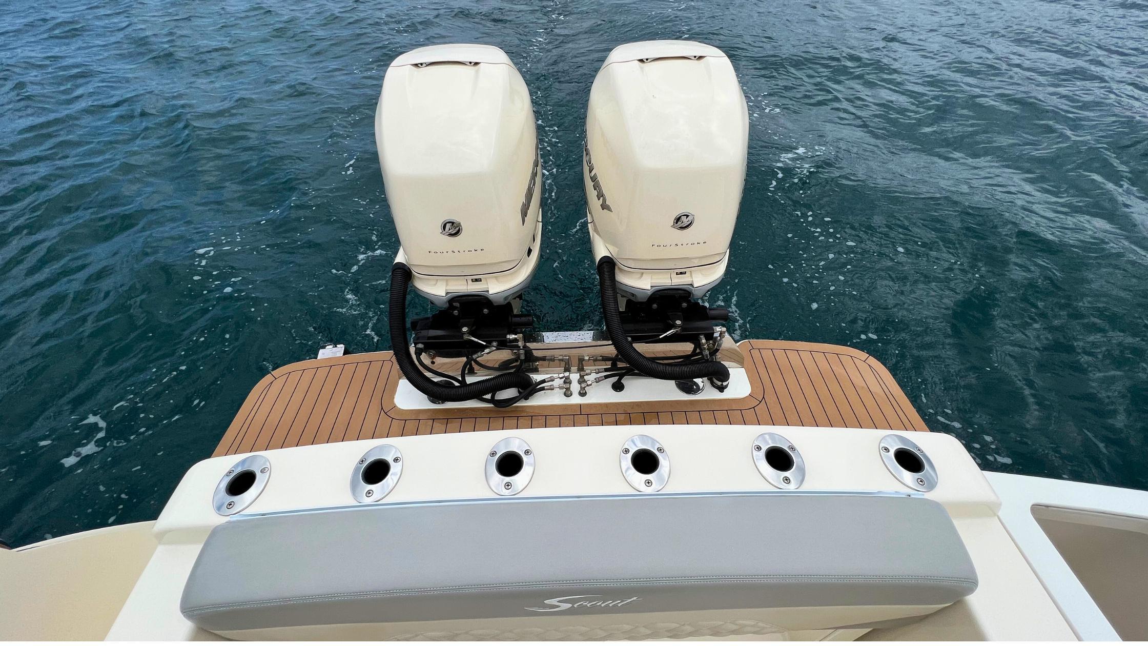 Just in time for the season!This is an especially clean & well equipped 2021 Scout 330LXF. She is powered with twin Mercury 400hp Verados w/Joystick Control, 570 hours & warranty until 7/2025.
