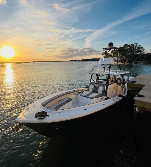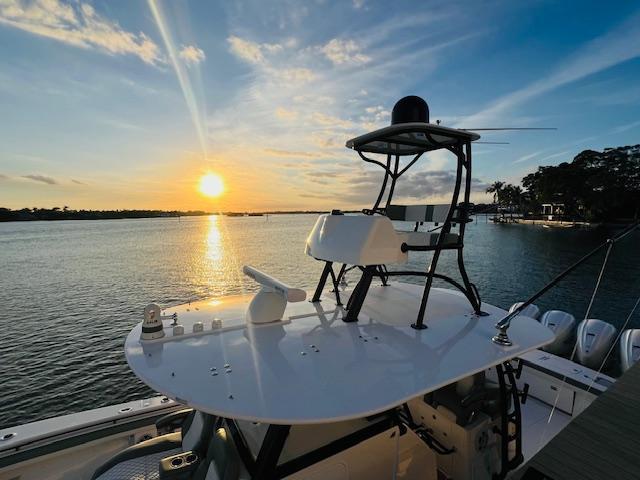 Regulator 41' 2024Yamaha Helm Master41 - Quad Yamaha F450 - Helm MasterEntire Hull ColoredCustom Color 41 Quad F450 Eng Bracket - Hull ColoredWhite Powder Coat Pkg41 Fiberglass HardtopT-Top Color Match Hull - Custom ColorT-Top Spray Curtain EnclosureGem 22ft Carbon Fiber OutriggersSureshade Auto Rear - BlackForward Sun Shade - BlackT-Top Garmin Navigation Screen Opt 37-4141 Dual Station TowerCarbon Fiber Edson Wheel - TowerDove Upolstry Quilt PkgHelm Seat Teak Ladderback4x Dlx Tackle Center W/ Mezz Seat - Grill-Sink UpgStd Garmin Offshore Pkg, Yamaha Autopilot, Gmr 1224 Xhd2 12kw Array - 14Siriusxm Gxm 54 Weather Marine ReceiverInductive Cell Phone ChargerFlir Thermal Camera - Std 31-41Freshwater Engine Flush - Quad Eng 41Refrigerated Transom FishboxThru Stem Bow RollerMulti-Colored Underwater Led LightsCup Holder Rod Holders In Lieu Of Std Additional Cup Rod Holder PkgTransom Rod Holders - 15 Deg (6x/37/41) Under Gunwale Rod Storage - OptionElectric Reel Plugs - OptionPhender Pro Fender CleatsClear Transom Livewell LidGaff HolderHose Coil RackSidescan Transducer OptionCarbon Fiber Edson Wheel W/ Pwr Knob - HelmStd 41 Marine Stereo Kit - 10 Speakers, 2 Subs &AmpsStd Synthetic Teak Bracket Mat Cover41 Standard Seakeeper 5 Gyro System4x Dlx Tackle Ctr - Black41 Helm Cover - Black450 Engine Cover Black Powered by quad Yamaha 450s with Helm Master® EX and equipped with Seakeeper® 5, the 41 is designed to meet all your offshore needs. The new Offshore Command Center features a Garmin® Multi-Function Display with Digital Switching and Monitoring, along with the proprietary Regulator MyHelm™ interface that seamlessly connects key functions into one intuitive application. With the wireless key fob, you can trigger lighting, batteries, and more with a simple touch as you approach or disembark.Serious anglers will appreciate the Taco® Grand Slam 500 outrigger bases with 20’ HD Carbon Fiber telescoping poles and the expansive livewell and fishbox capacity. The aft mezzanine seat with prep & tackle center and overhead SureShade® provide comfortable cockpit seating without compromising fishing amenities. Easy tower access enhances the appeal of the dual helm.Below deck, the newly-redesigned cabin features Chilewich interiors, a galley kitchen, double berth, and a spacious head with a shower, allowing you to accommodate friends and family with ease.