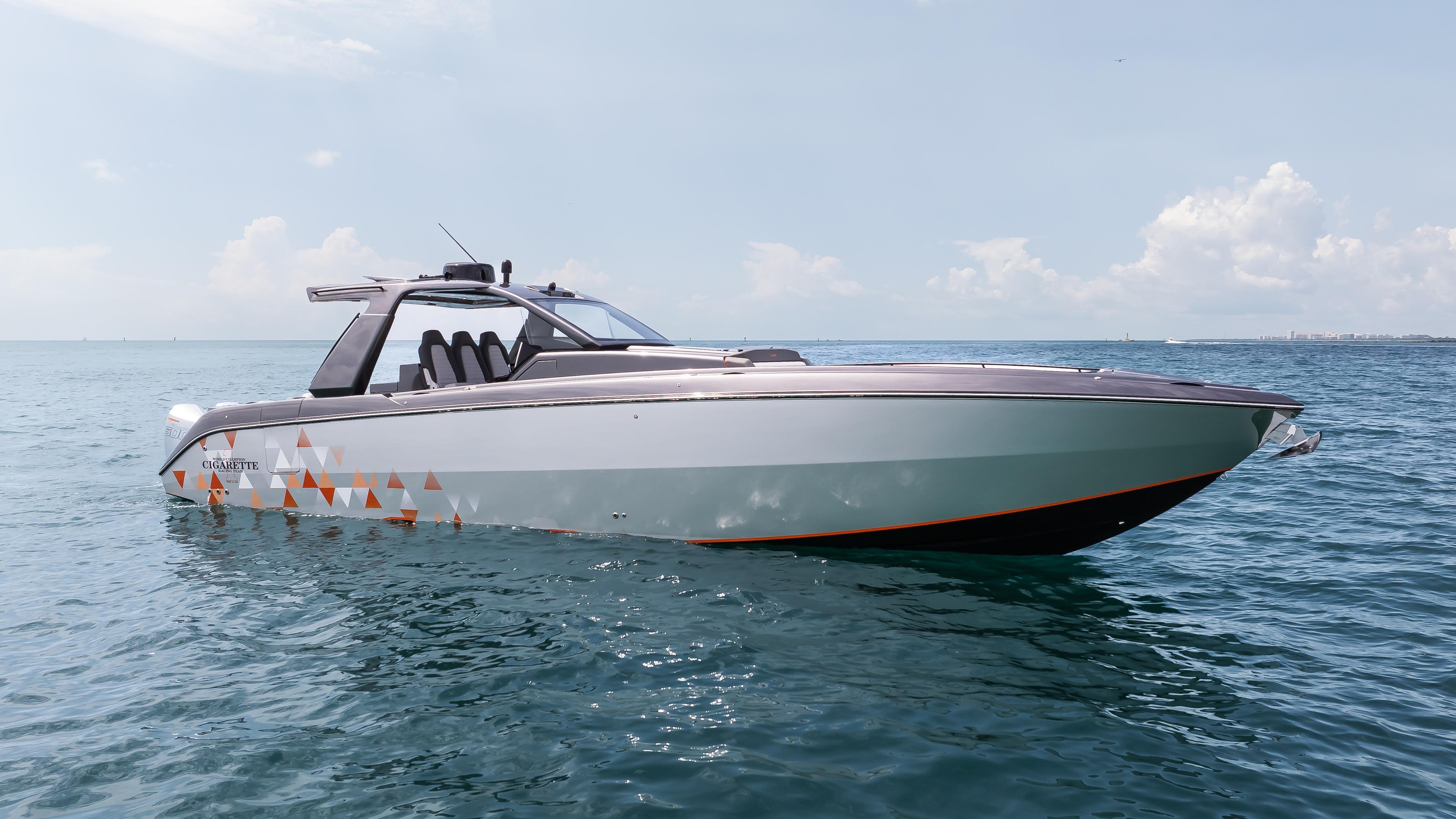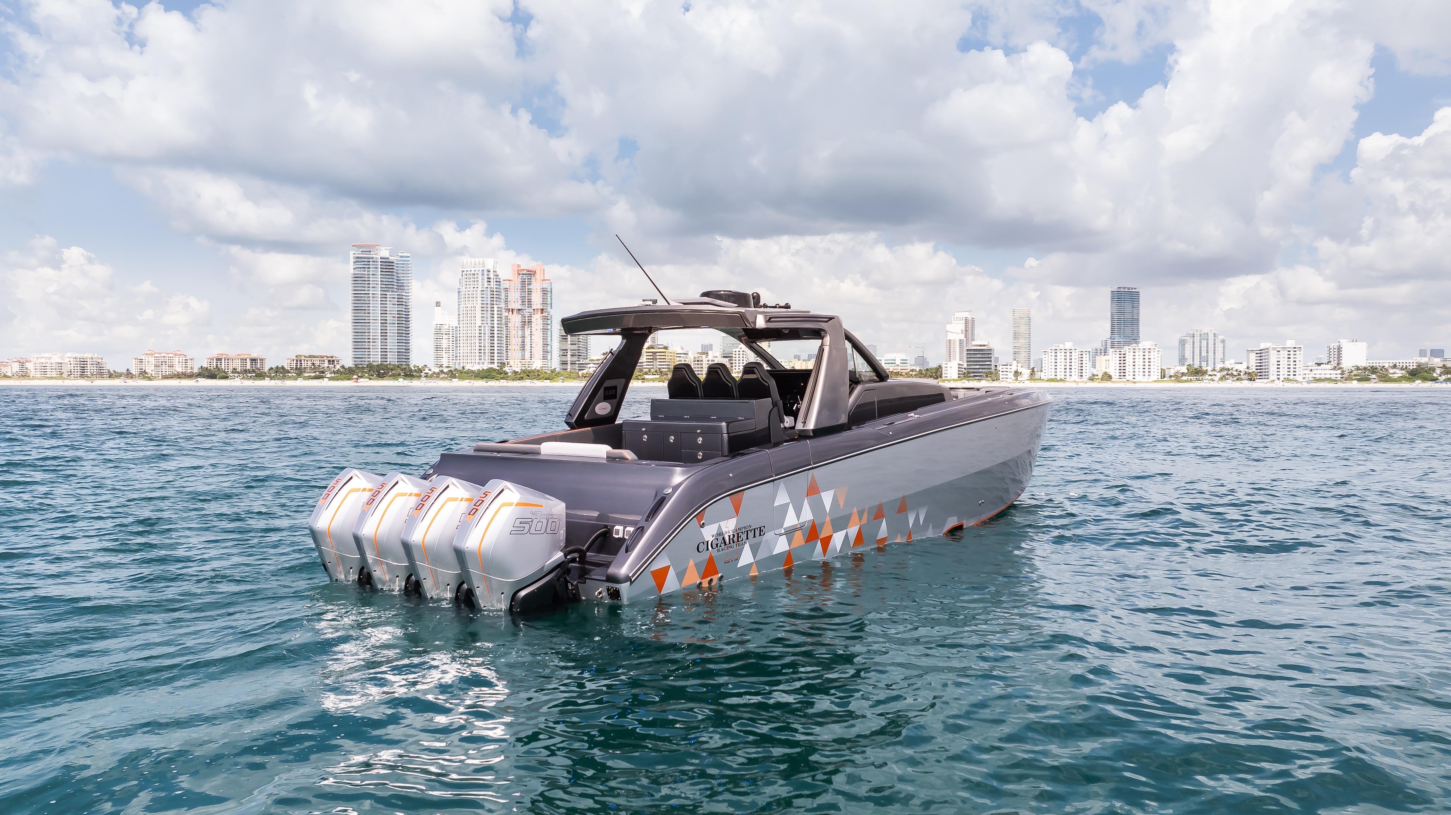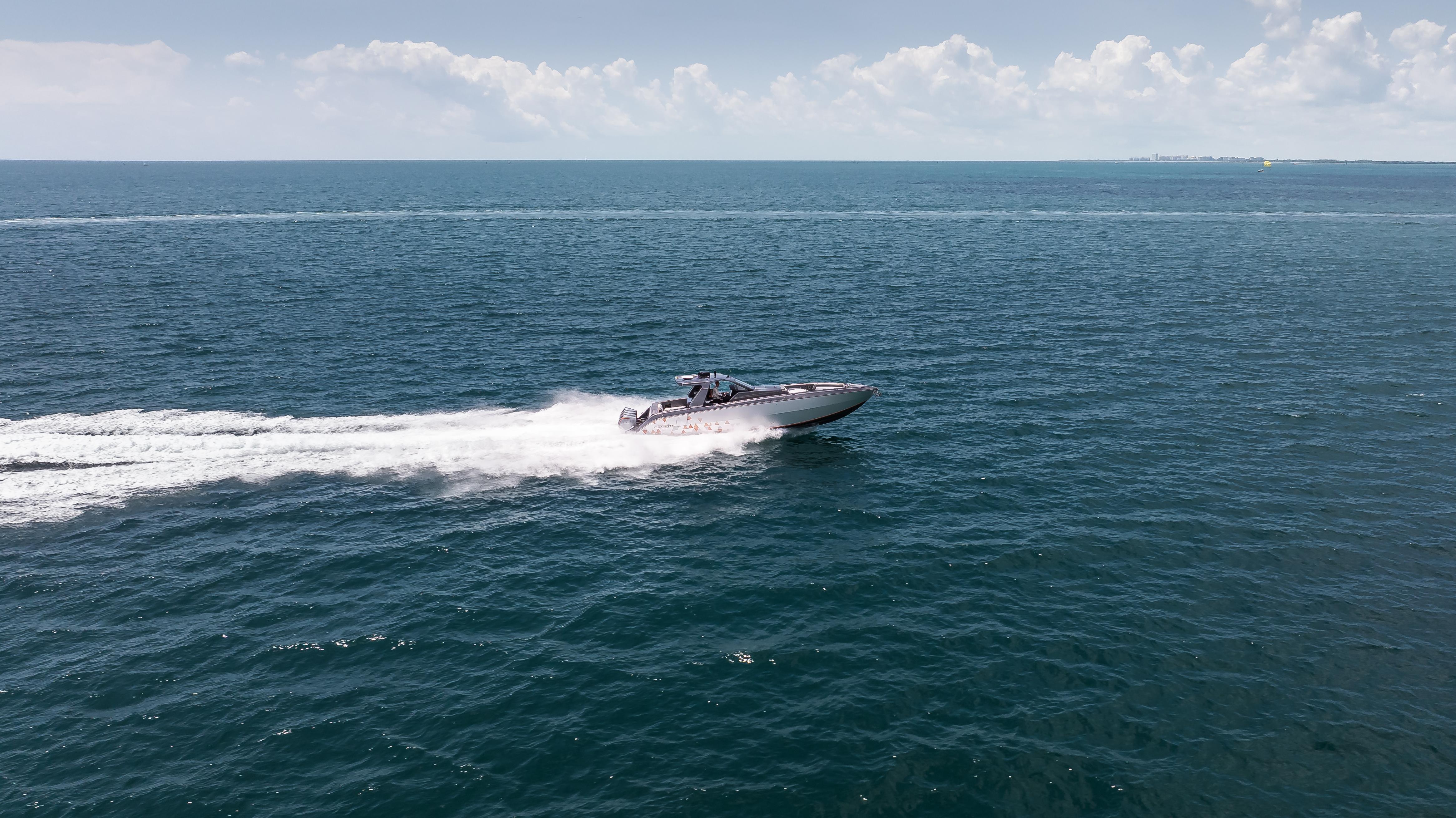 Introducing the stunning 2025 Cigarette 42 Auroris, a remarkable high-performance boat that combines sleek design with powerful engineering. Measuring an impressive 42 feet in overall length, this boat is crafted from durable fiberglass and features a modified Vee hull shape, ensuring exceptional stability and agility on the water. Equipped with four Mercury 500 Racing outboard engines, this boat delivers exhilarating performance with a total power output of 2000 hp, perfect for thrill-seekers and speed enthusiasts alike. With only 32 hours of use, the engines are in excellent condition, ready to provide an unforgettable experience. The Cigarette 42 Auroris is designed for those who appreciate luxury and performance, making it an ideal choice for both leisurely cruises and high-speed adventures. Experience the perfect blend of style and power with this exceptional vessel, where every journey becomes a memorable adventure on the water.