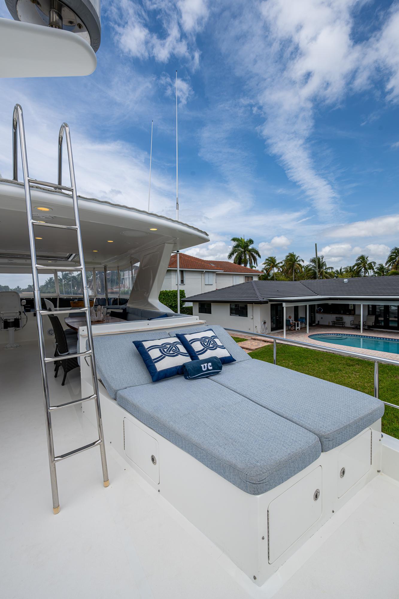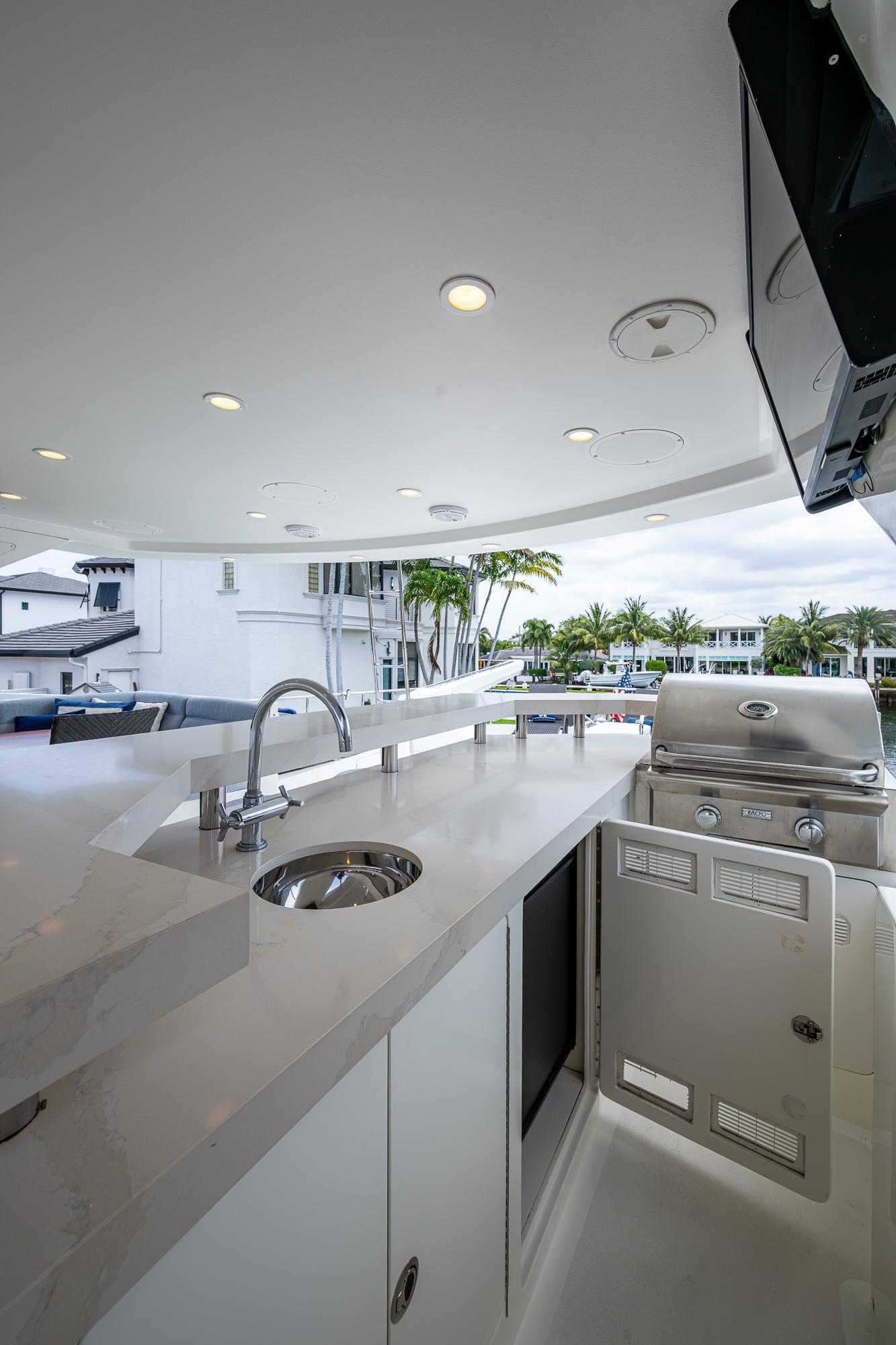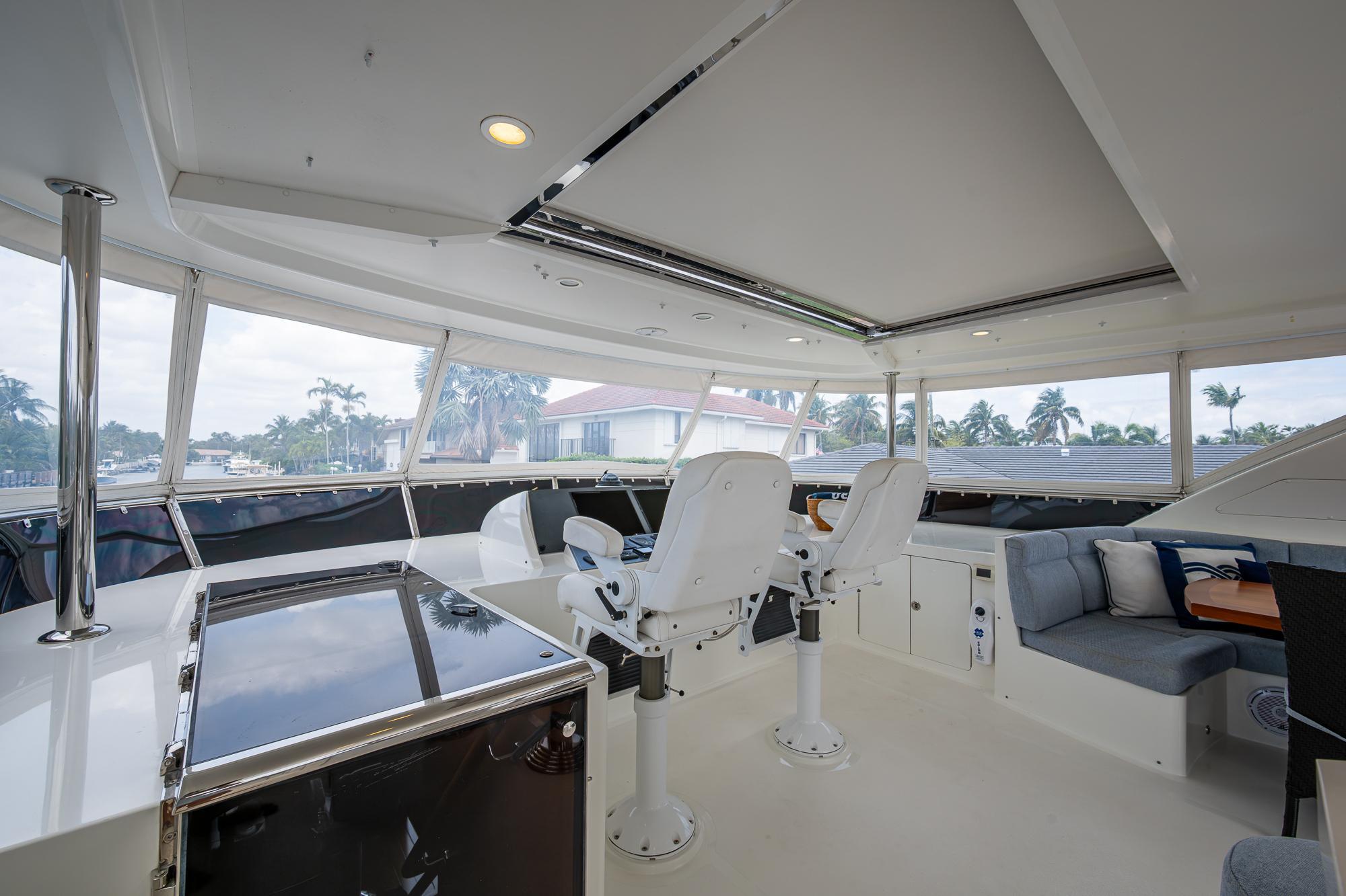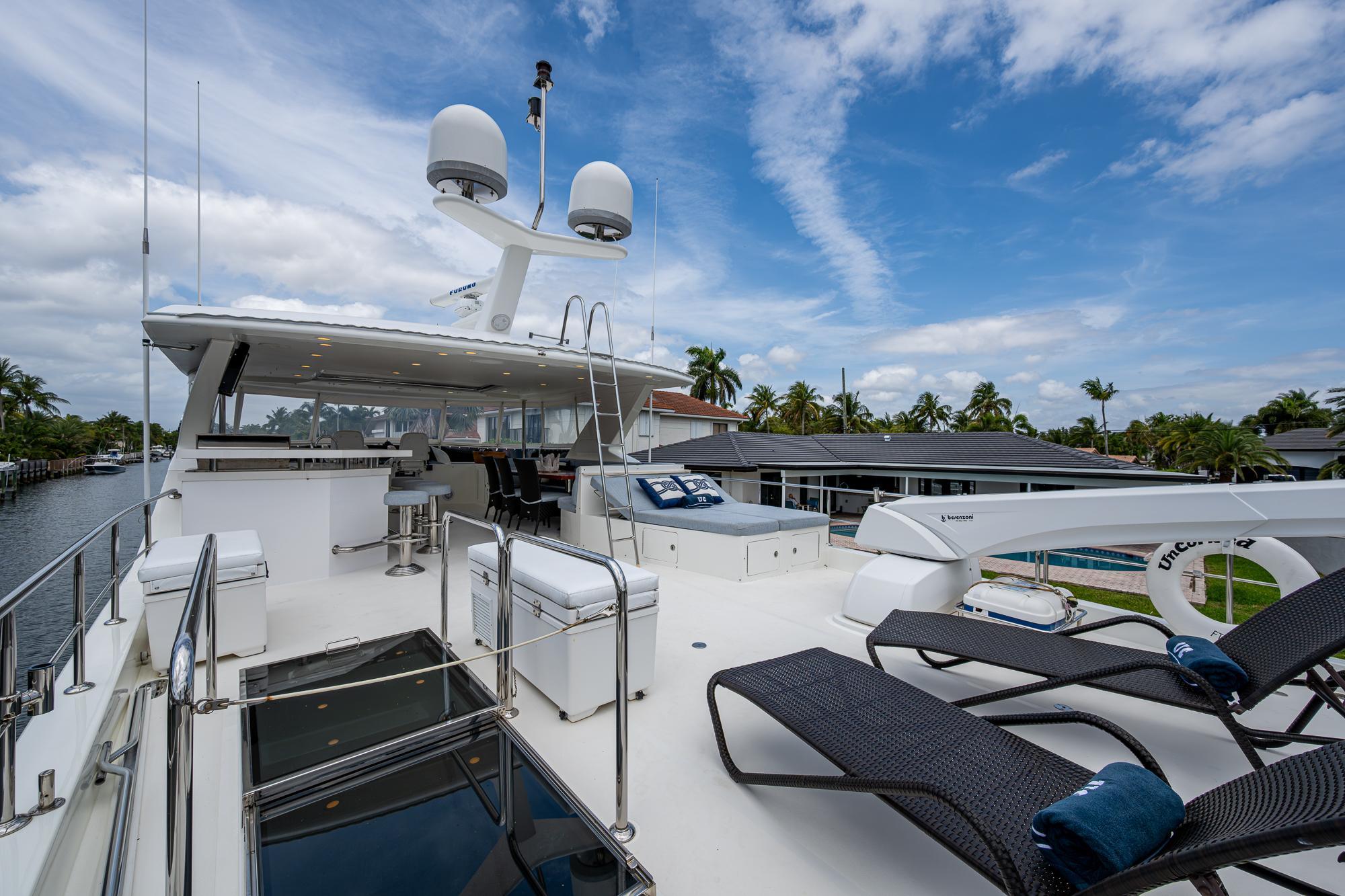 - Flybridge bar with panoramic views, wet bar, and seating for a crowd