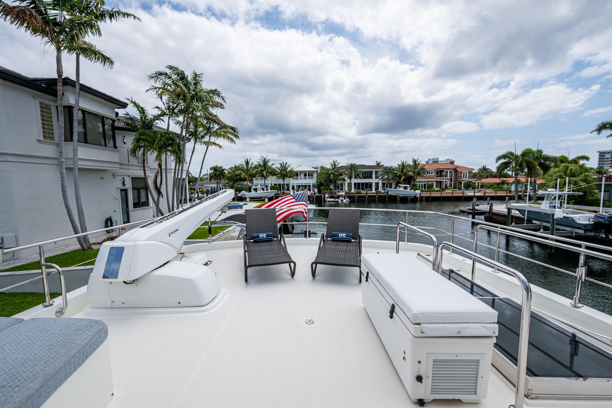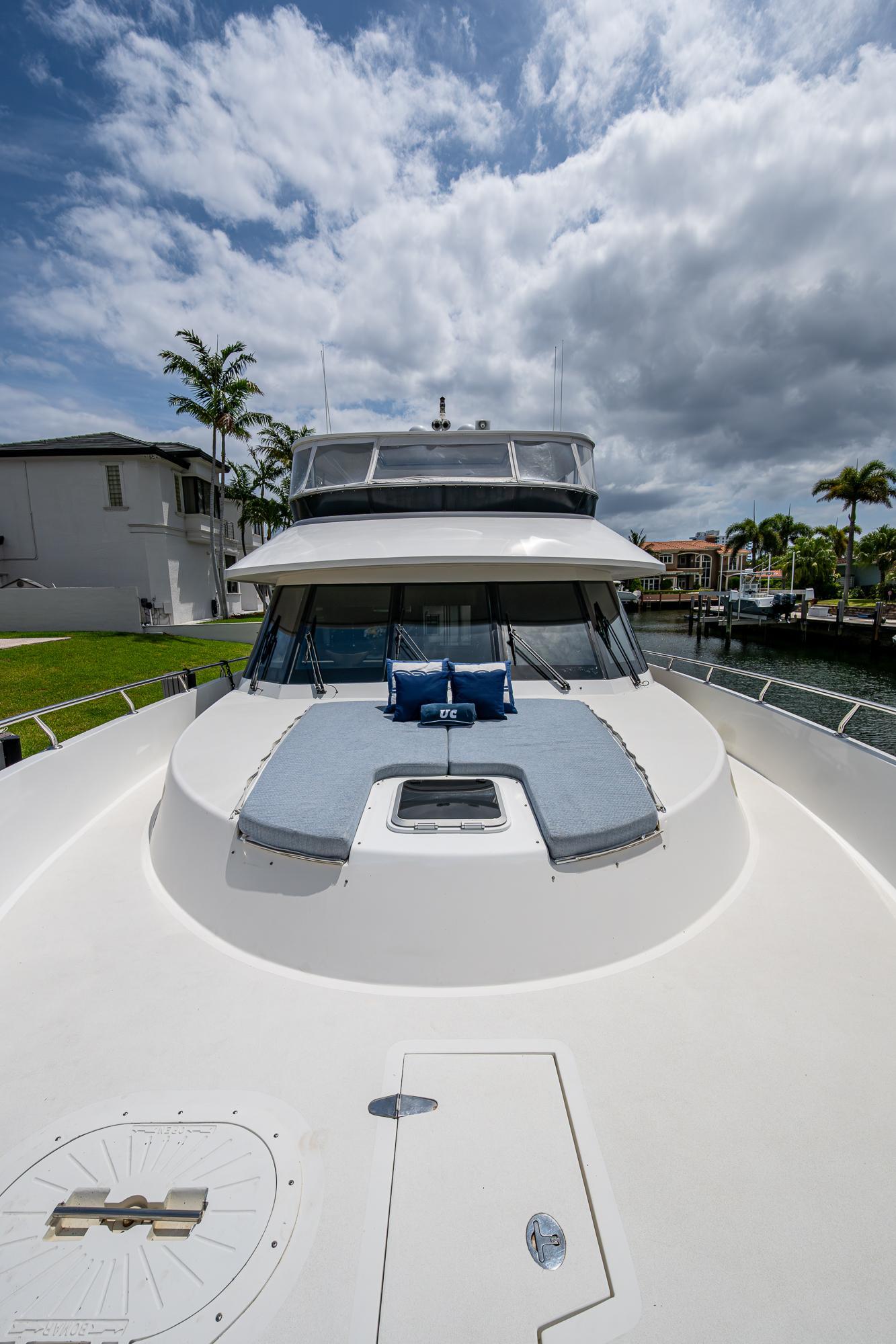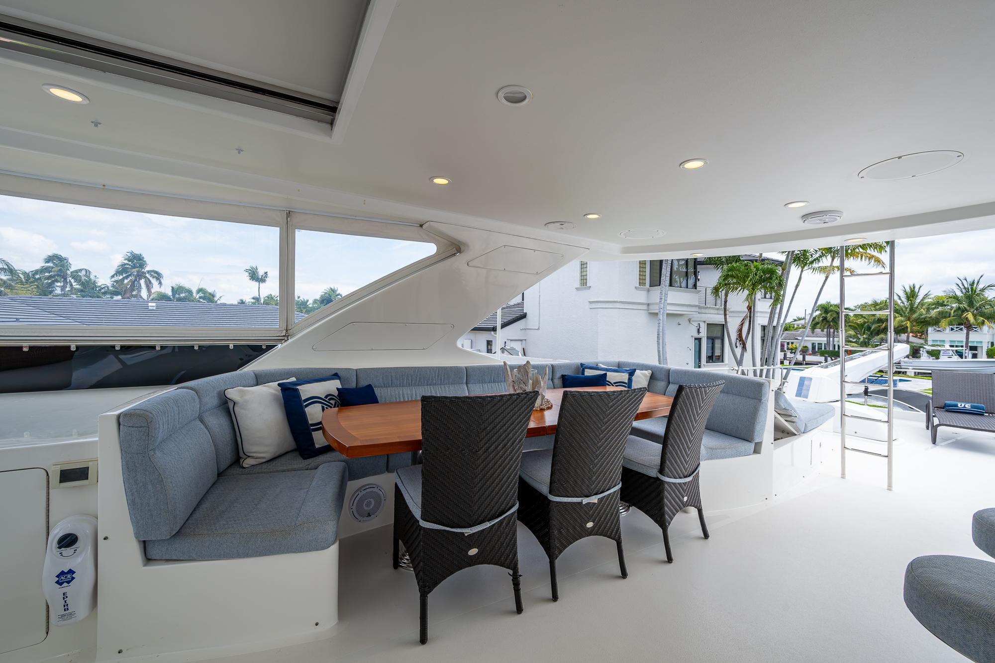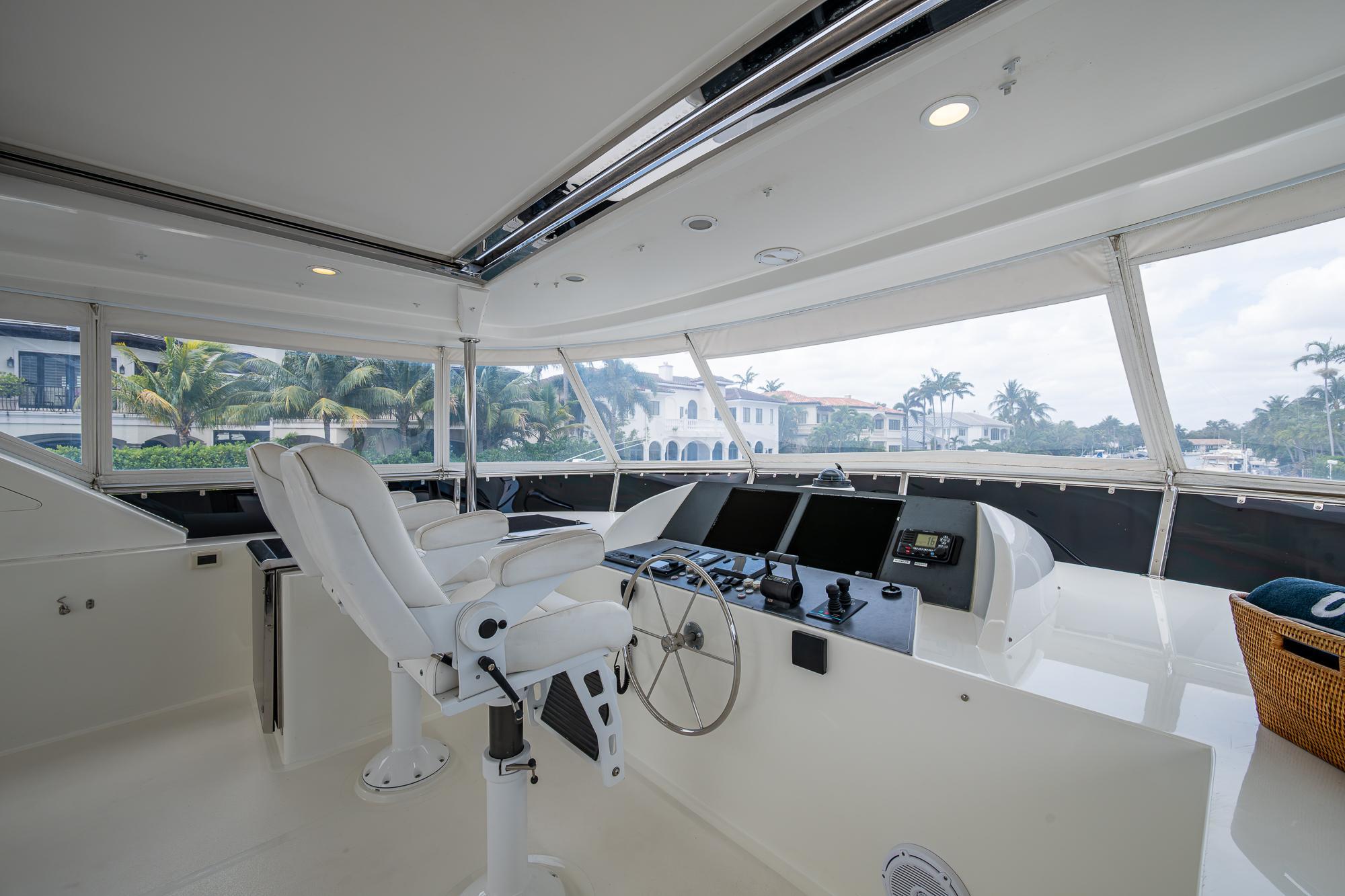 - Flybridge bar with panoramic views, wet bar, and seating for a crowd