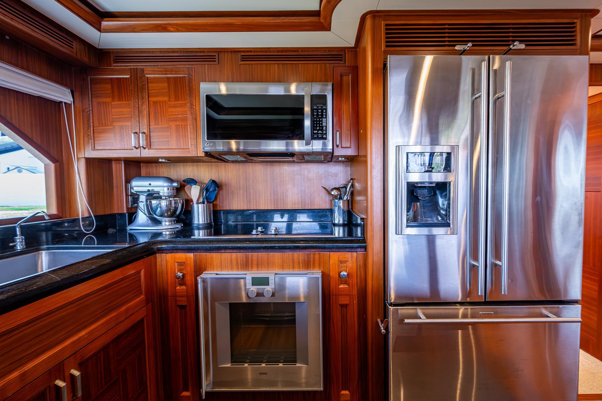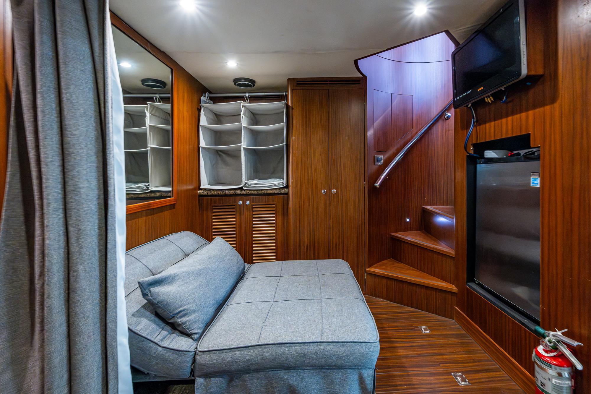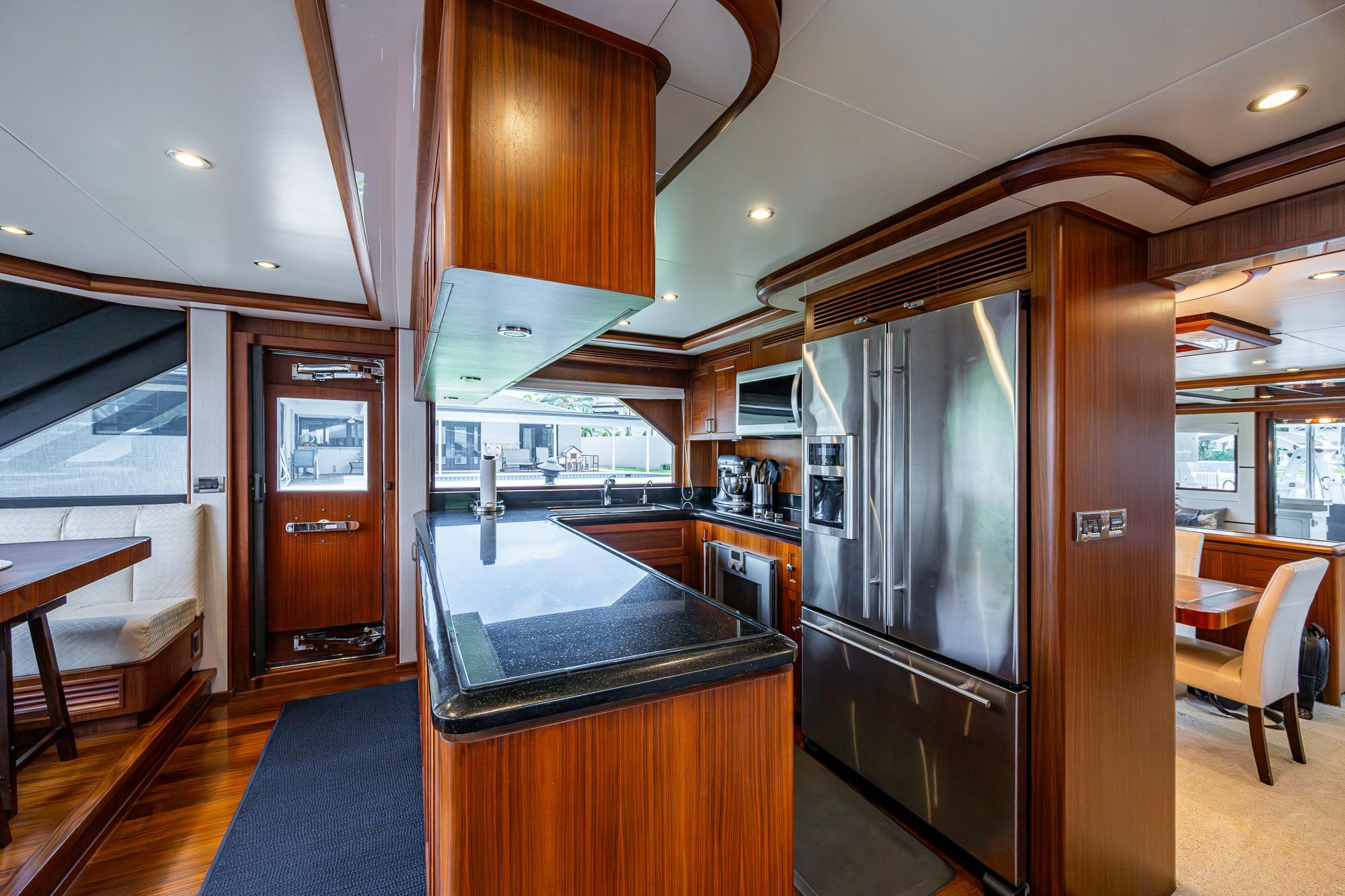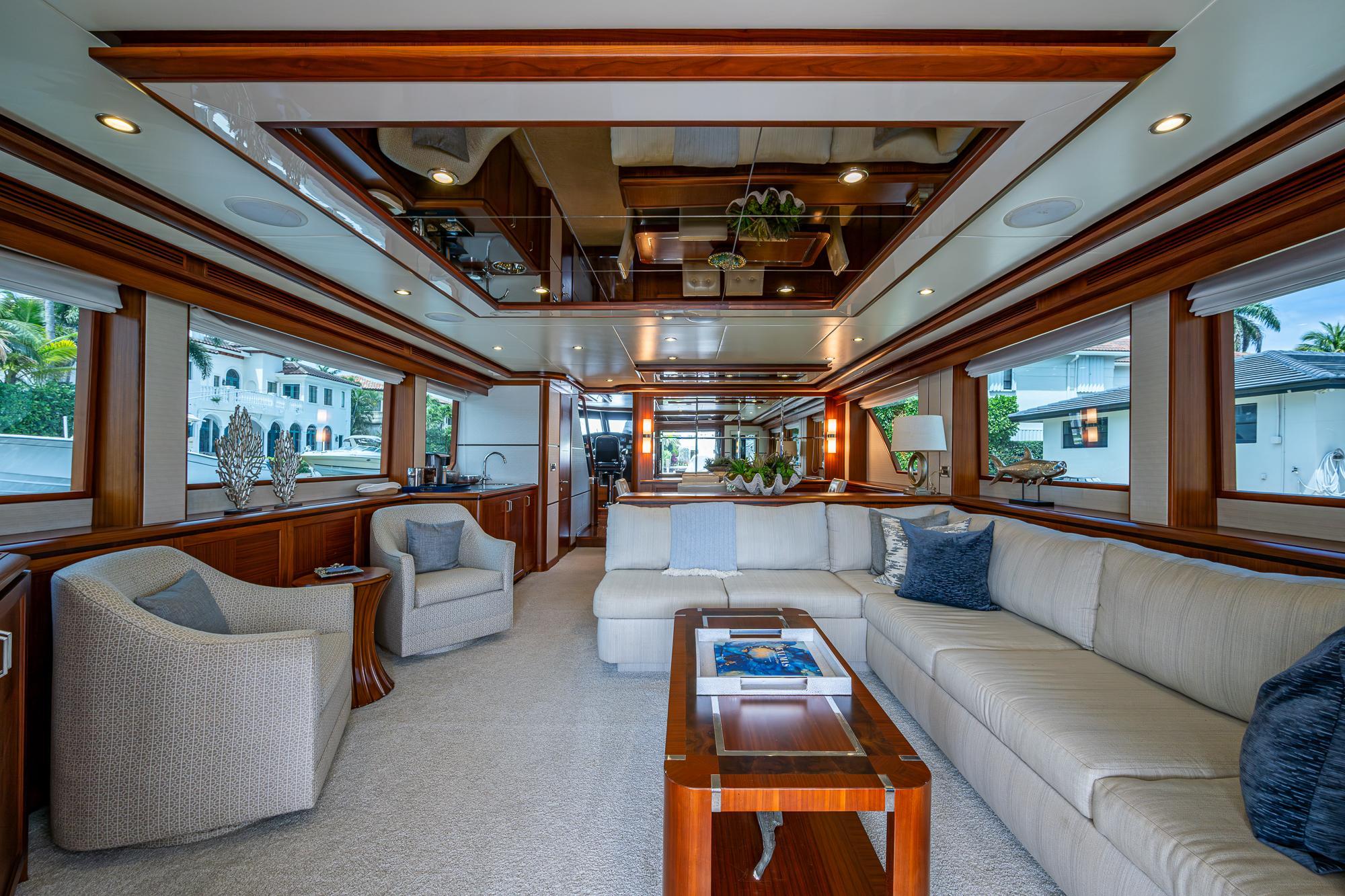 - Flybridge bar with panoramic views, wet bar, and seating for a crowd