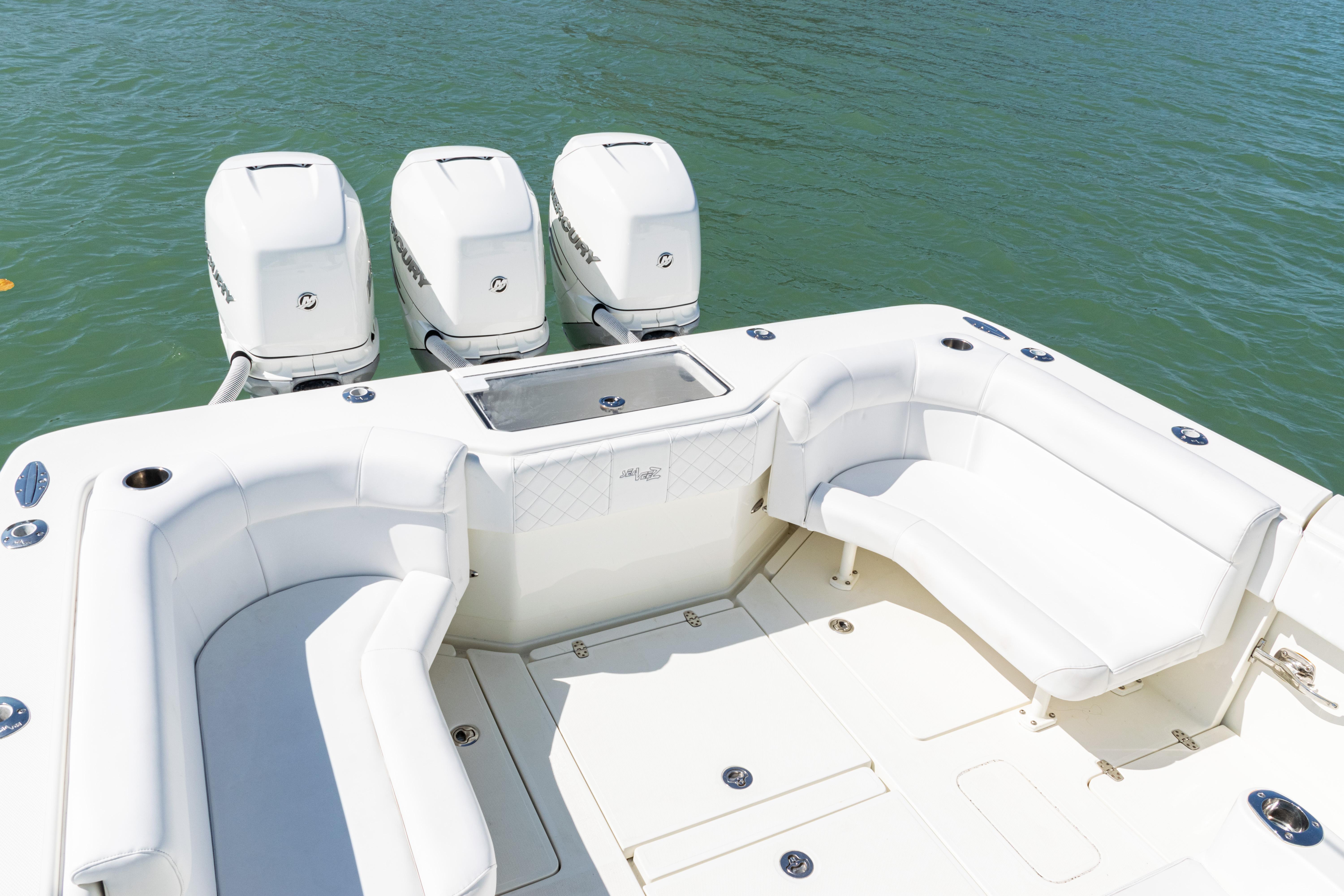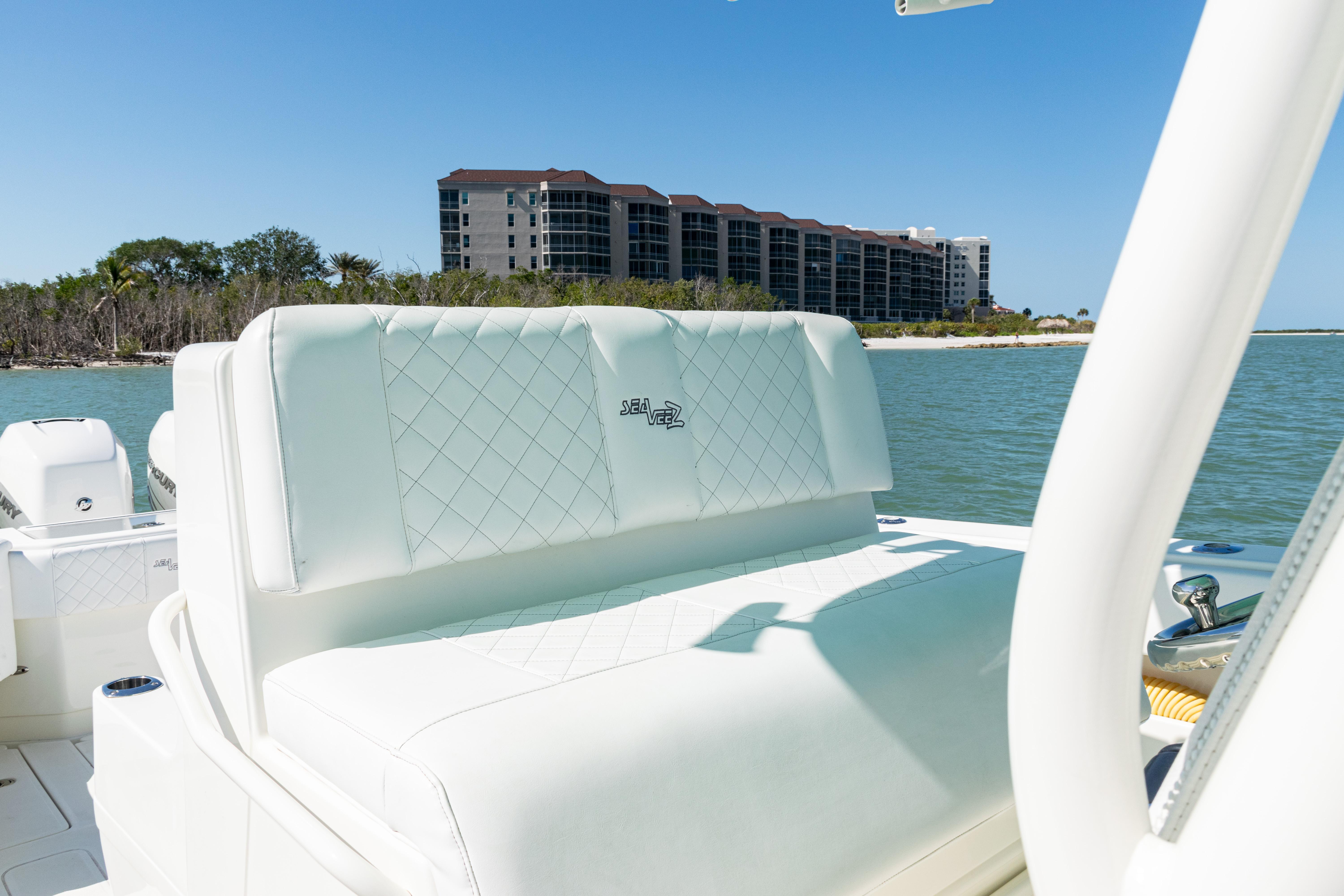 2015 SeaVee 390Z – Triple Mercury Verado 300s This 2015 SeaVee 390Z Stepped Hull Open Fisherman is a serious offshore performer built for anglers who want performance, capability, and comfort in one platform. Powered by Triple Mercury Verado 300 HP outboards with 550 original hours, this boat is fully equipped with premium fishing gear, an advanced Simrad electronics suite, and high-end features throughout. The boat also sports a custom Sea Foam hull, painted motors, upgraded lighting, and luxury seating. Whether you're running offshore or entertaining at the sandbar, this 390Z is rigged and ready.Power & PerformanceTriple Mercury Verado 300 HP I6 Outboards (550 original hours)High Performance Mercury K-Planes Trim TabsCustom painted engine gear cases and plastics with new decalsExtra AGM batteryGalvanic isolator with 30 Amp inlet & ELCI breakerCustom stainless steel sea chest baitwell system with dual 1500 GPH pumpsFlush-mounted high-speed 1.5” pickup for sea chestElectric head with holding tank and macerator pump-outY-valve for overboard dischargeWindlass anchor with molded-in anchor chuteFreshwater washdown in windlass compartmentFresh and saltwater washdown systemsAdditional pull-out freshwater shower headHelm & Electronics(2) Simrad NSS16 Evo2 16” Multifunction DisplaysSimrad OP40 Wired RemoteSimrad GS25 Active GPS AntennaSimrad TX06S 6kW / 4ft HD Radar Open Array with ProcessorSimrad BSM3 Sounder ModuleSimrad B275LH 1kW CHIRP Thru-Hull TransducerSimrad Structure ScanSimrad AP24 Autopilot (Integrated w/ Power Steering)Simrad NEP-2 Expansion HubSimrad Sirius Satellite Weather ReceiverSimrad GoFree Wi-Fi-1 ModuleICOM M400BB Black Box VHF Radio with 8’ Digital Antenna & MountPoly-Planar VHF External SpeakerDual USB charger socket (location advised)Additional 12V outlet (location advised)Audio & EntertainmentJL Audio (2) 7” Coaxial Speaker PairsJL Audio (1) 8.8” Coaxial Speaker PairJL Audio (1) 10” Subwoofer PairJL Audio M600/1 – 600W Mono AmpJL Audio M600/6 – 6x100W AmpFusion MS-RA205 Marine StereoBluetooth Integration for Fusion 700 & RA2058’ Digital AM/FM Antenna with MountFishing FeaturesSidewinder Outriggers (Lee)(8) Gunnel-mounted 15° rod holders(2) Gunnel-mounted 30° rod holders(2) Rod & Cup Holders – 316 Stainless Steel (0° and 15°)(2) Swivel Rod Holders – 15° for Electric Reels(2) Electric Reel 30 Amp Outlets w/ Cover and BreakersConsole-mounted rod holders (plumbed)Locking gaff holders (2" and 3")Kingfish rod holders (pair)Removable King Board divider for forward fish boxAdditional fish box inline diaphragm pumpY-valve for dual fish box applicationSeating, Storage & ComfortCaptain’s Edition Helm Seat / Prep StationDeluxe rear-facing tackle station seat with cooler and storageMolded forward seating with electric reclining backrestsRemovable bow sun lounge padLocking console rod holders (side-mounted)Under-gunnel blue LED lighting(2) SeaBlaze X8 Blue Underwater LED LightsTops, Canvas & LightingCustom Sea Foam Hull ColorMatching Sea Foam Hard Top UndersideFiberglass molded hardtop with:(6) Rod holders(1) Aft-facing LED spreader light(4) Multicolor LED lightsForward-facing molded-in LED flood lightDual molded-in LED flood lights (port & starboard)Rod slots on hardtop (1 pair)Five-panel polycarbonate enclosureBahama shade at cockpitRemote dual-beam search lightPowder-coated finish on:T-top frameHelm handrail and footrestRear seat support legsForward lounger filler frameWhite rub railThis 390Z checks all the boxes—loaded with fishing equipment, excellent electronics, upgraded lighting and seating, and a custom finish throughout. It’s the ultimate blend of form and function.