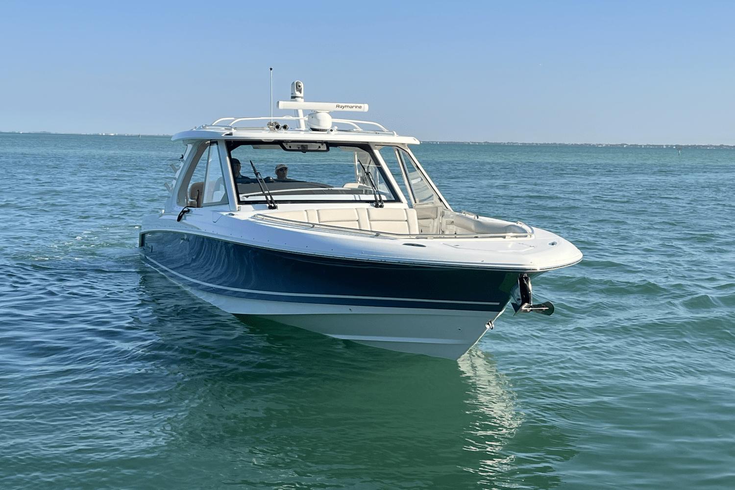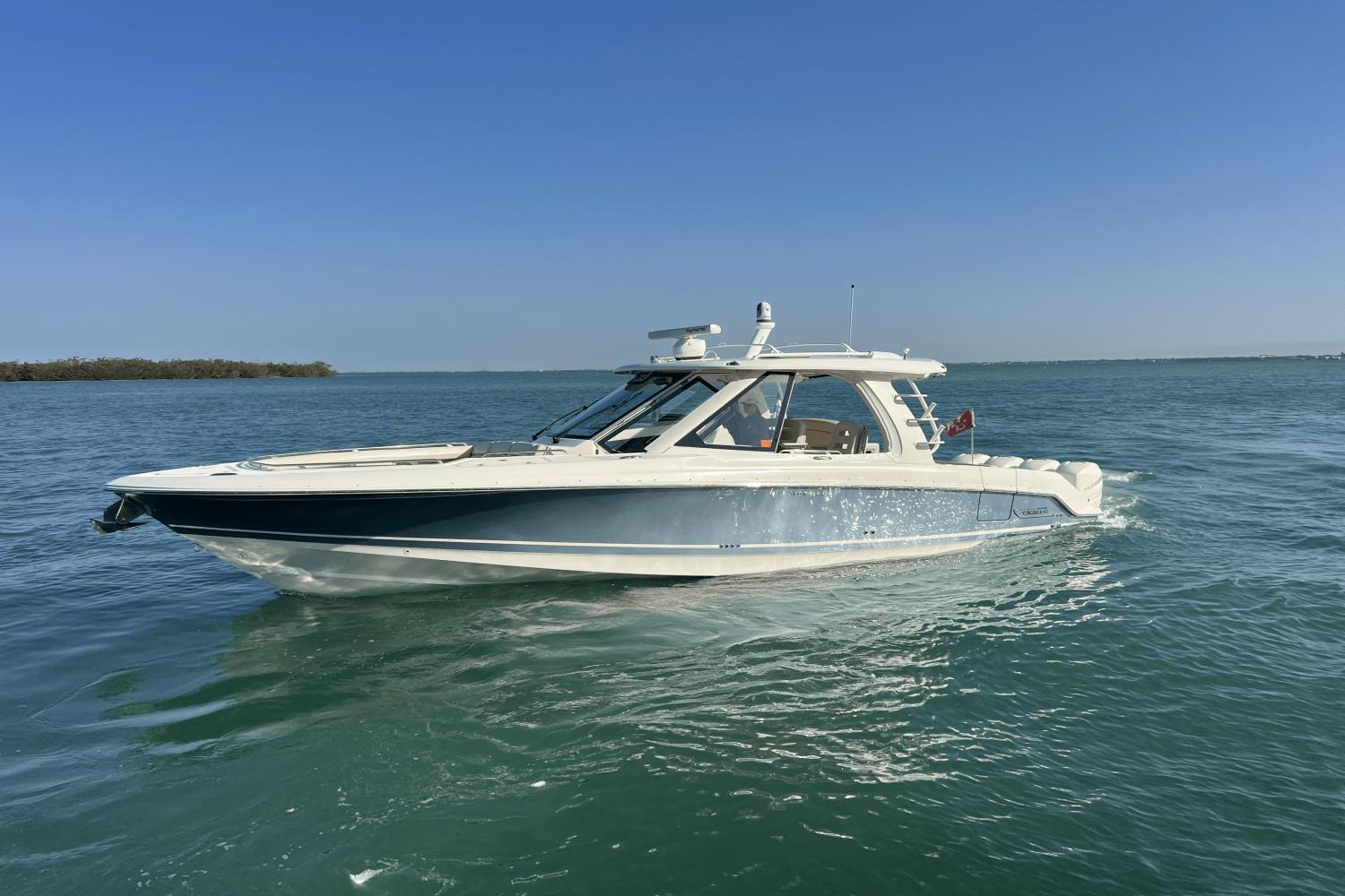 New to market! Very Well maintained, low hour, and highly optioned 2020 mBoston Whaler 380 Real available now in the Sarasota area. This one owner and lift kept Steel Blue 380 Realm features all of the most desireable options for the model listed below, as well as transferable engine warranties through 2028. Priced to sell and awaiting her next owner. Contact the listing broker today for more details!Contact: Michael Mongelli 610-745-8645-Steel Blue Hull-Quad Mercury Verado 350's w/ Joystick Piloting (White)-Gyroscopic Stabilizer-Diesel Generator-Retractable Aft Sunshade-Teak Aft & Cockpit Tables-Underwater LED Lights-Freezer Plates (STB Fishbox)-Automatic ID System (AIS)-Thermal Night Vision Camera-Engine Flush System-Triple 16" Raymarine Axiom GPS Units-Canvas Cover Package-Full Custom Boat Cover