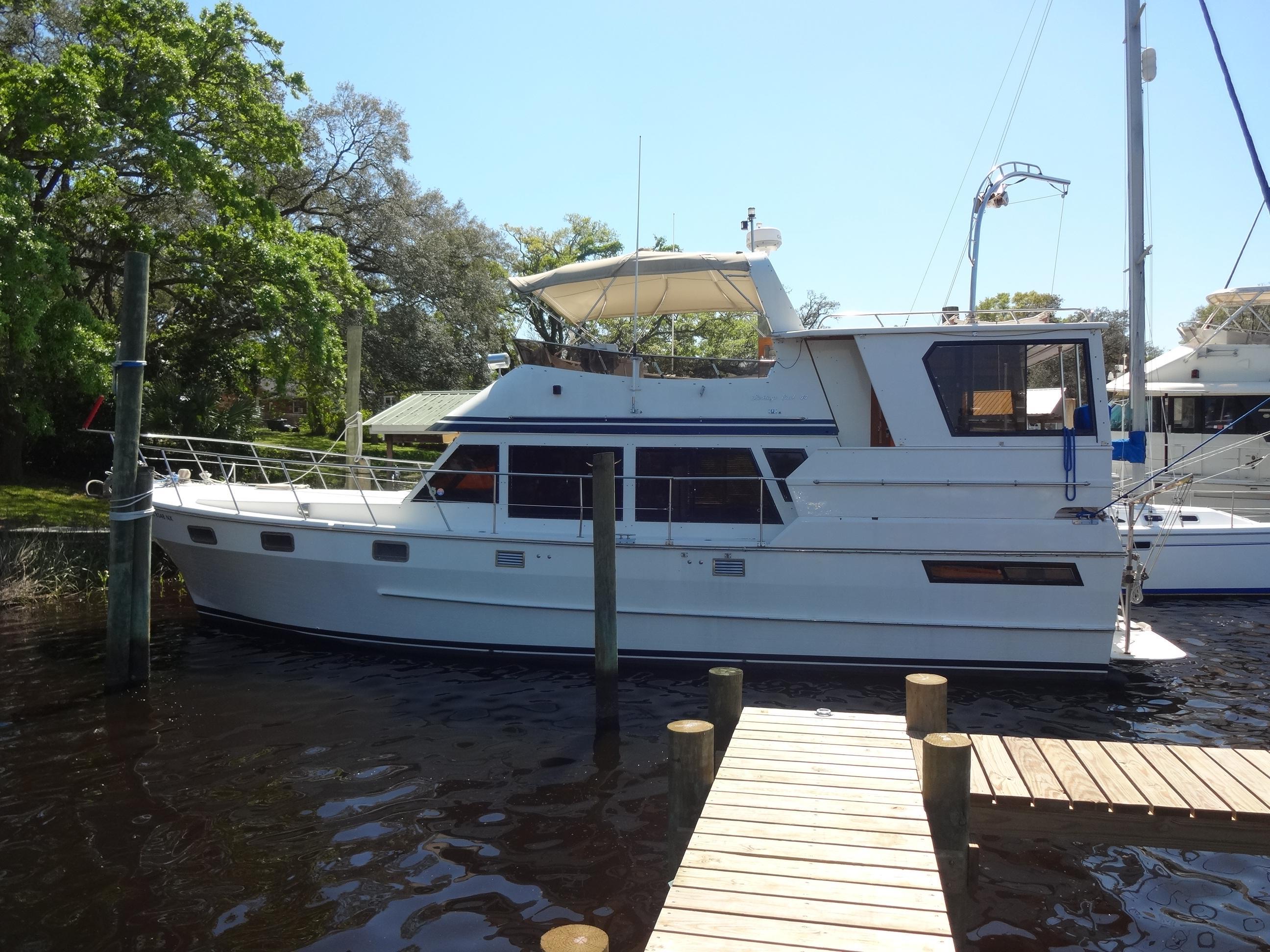 BUBBLES UP, an exceptional 44' Heritage East Sundeck Motor Yacht.HAS COMPLETEED THE GREAT LOOP AND READY TO GO AGAIN!!!SELLER IS TRAVELING EXTENSIVLY IN THE NEAR FUTURE AND DOES NOT WANT TO YACHT TO SUFFER, BRING ALL OFFERS TO SECURE THIS BEAUTIFUL GREAT LOOP VETERAN.Beautiful teak interiors create a harmonious ambiance, while updated electronics and twin Cummins engines guarantee a seamless and reliable cruising experience.Whether you seek leisurely voyages or adventures on the Great Loop, Bubbles Up is ready to make your dreams a reality.Bubbles Up is more than just a yacht; it's an experience that must be encountered firsthand. Indulge in the allure of luxury living on the water and let Bubbles Up ignite your imagination. Don't miss the opportunity to make this extraordinary vessel your own.