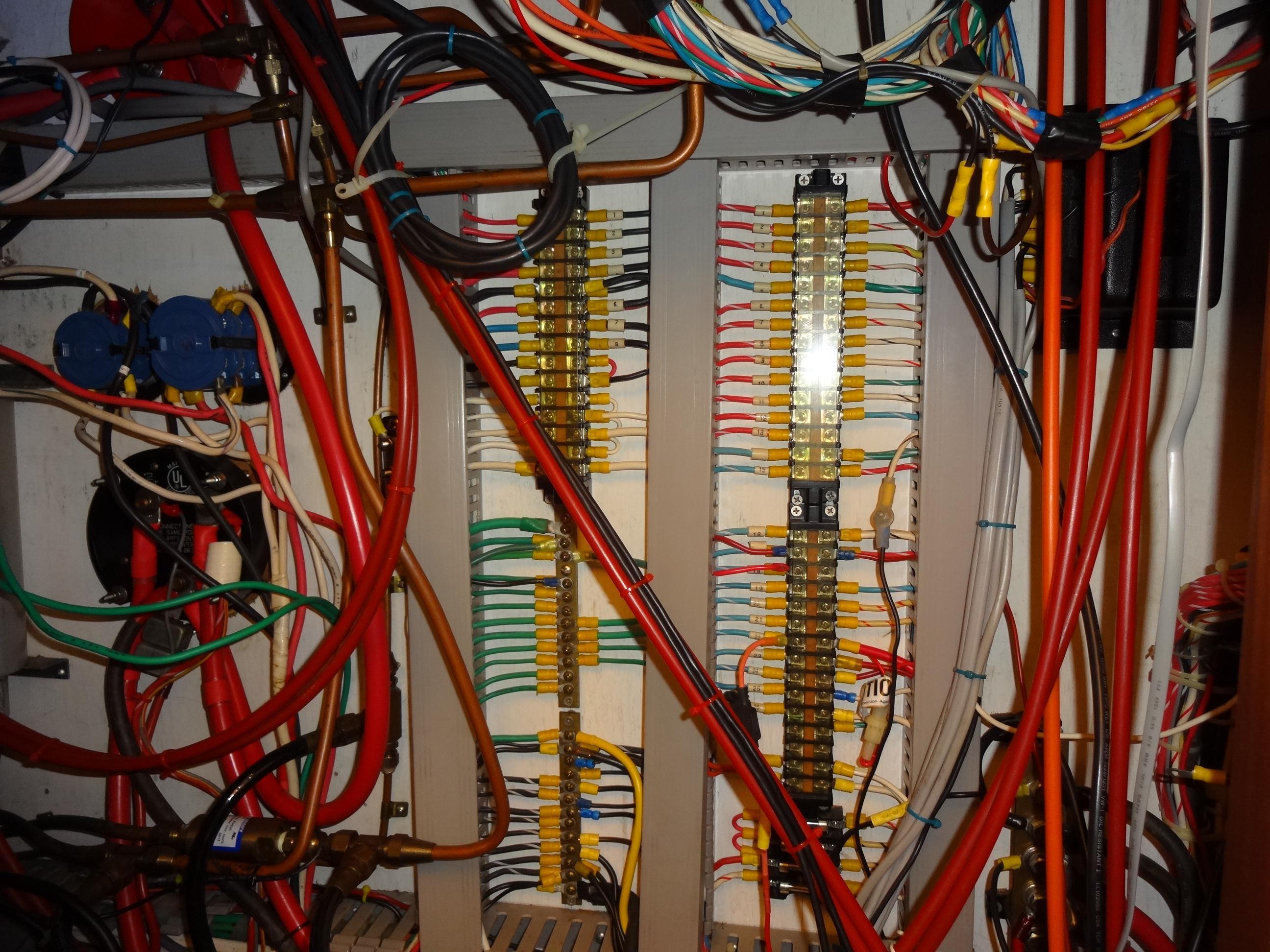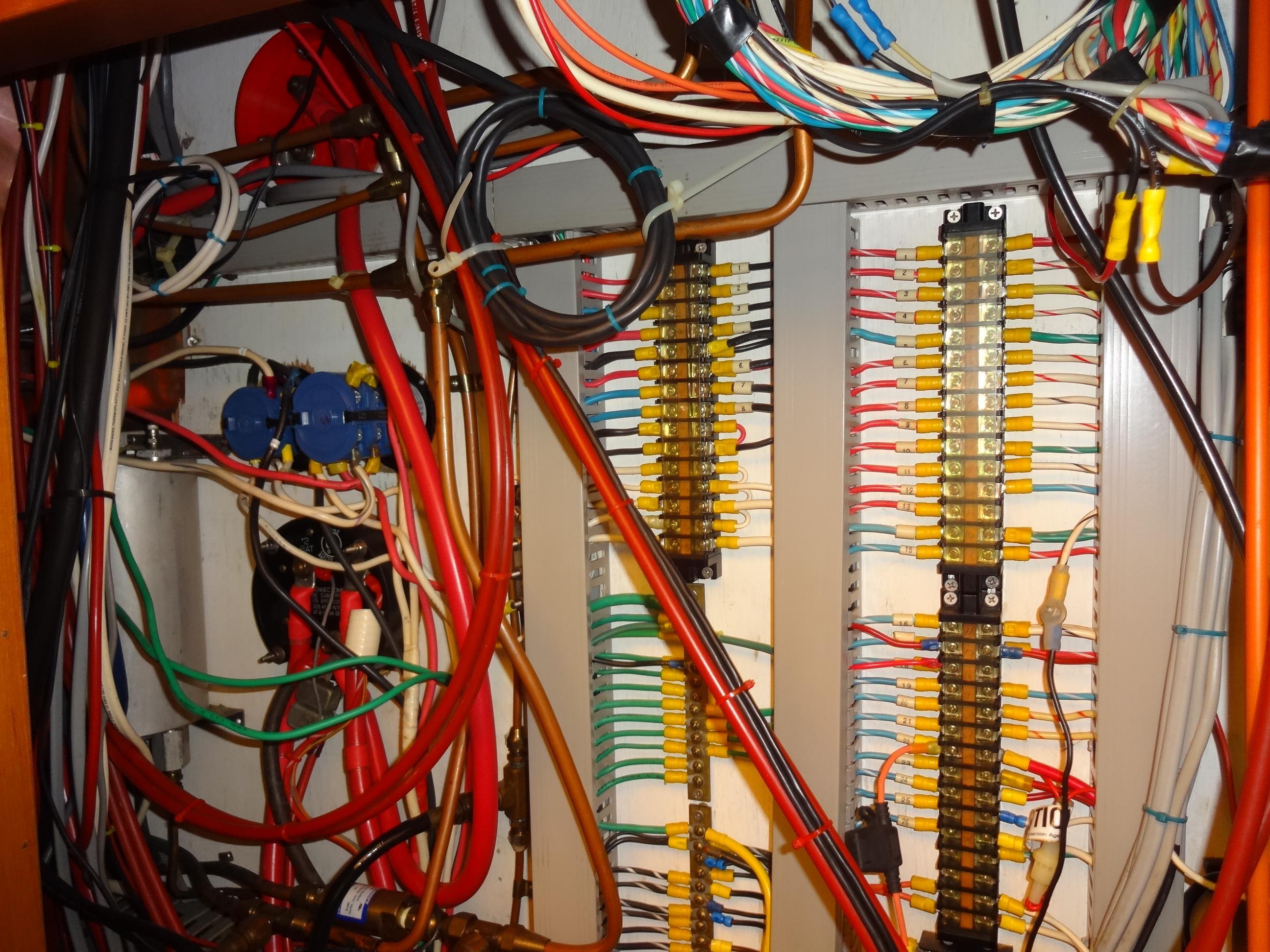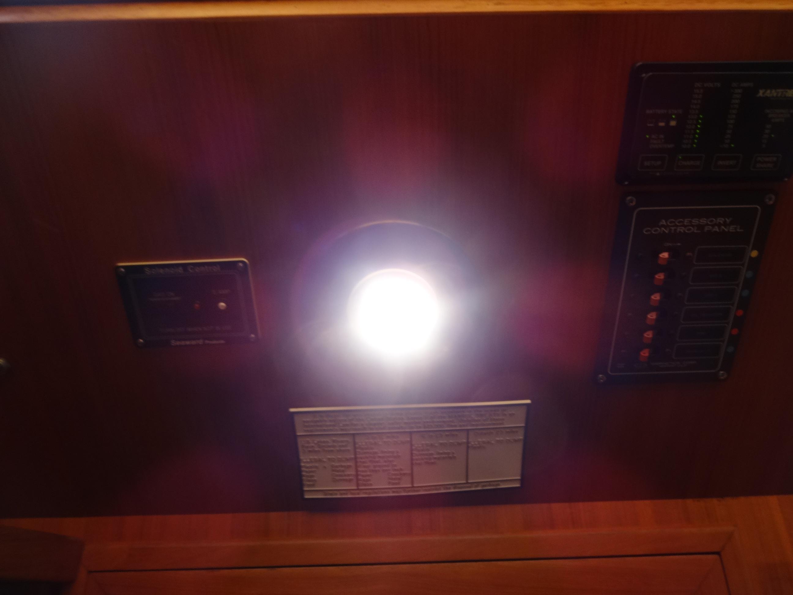 Furthermore, custom shelving is added on the starboard side over the cupboards for additional storage space. The galley is equipped with Bank 1 and Bank 2 engine battery selector switches with 30A breakers, neatly installed below the settee, ensuring reliable power management.Electronics