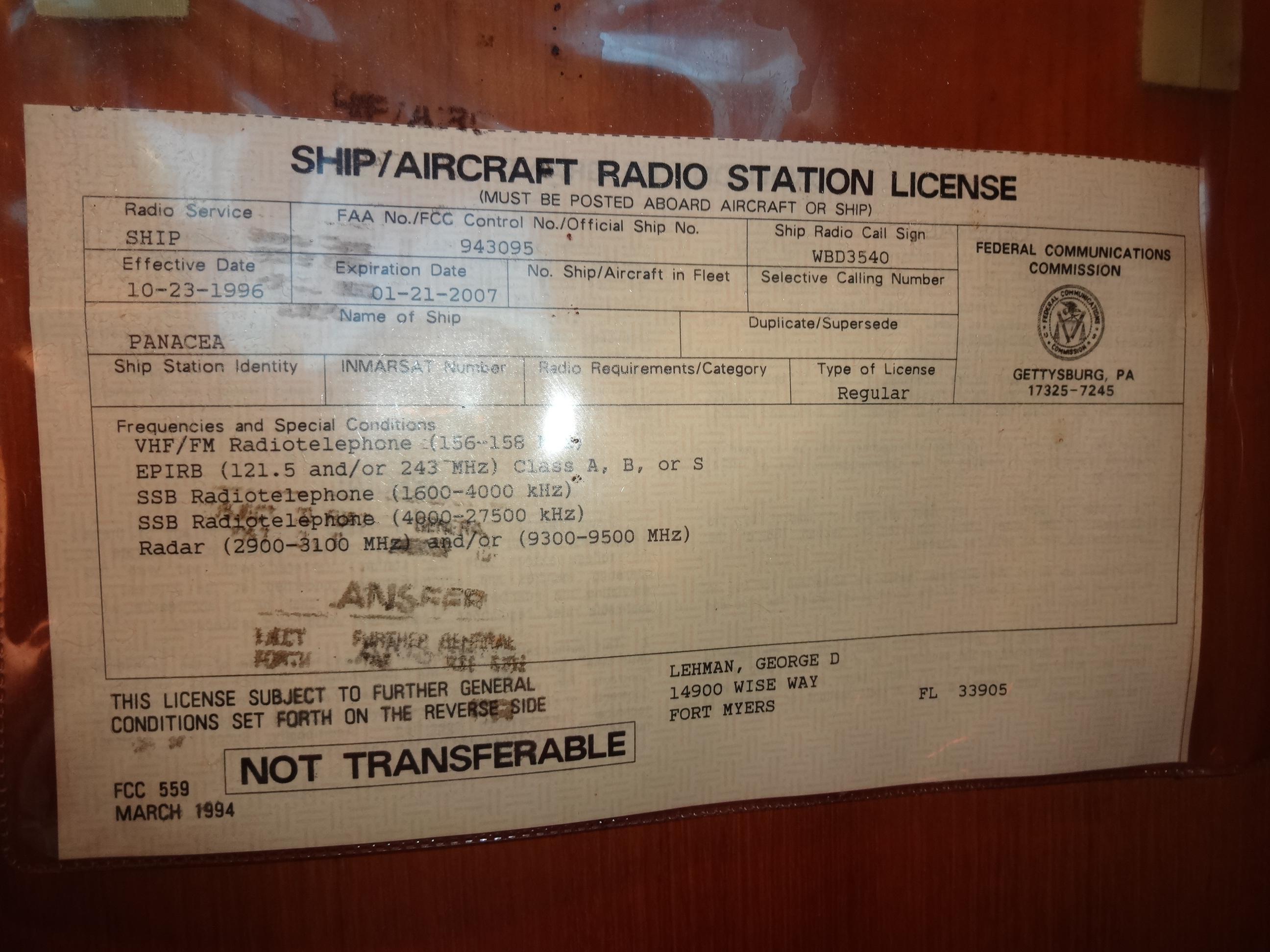 - VHF/Radio 2 Icom, backup, bridge, lower helm