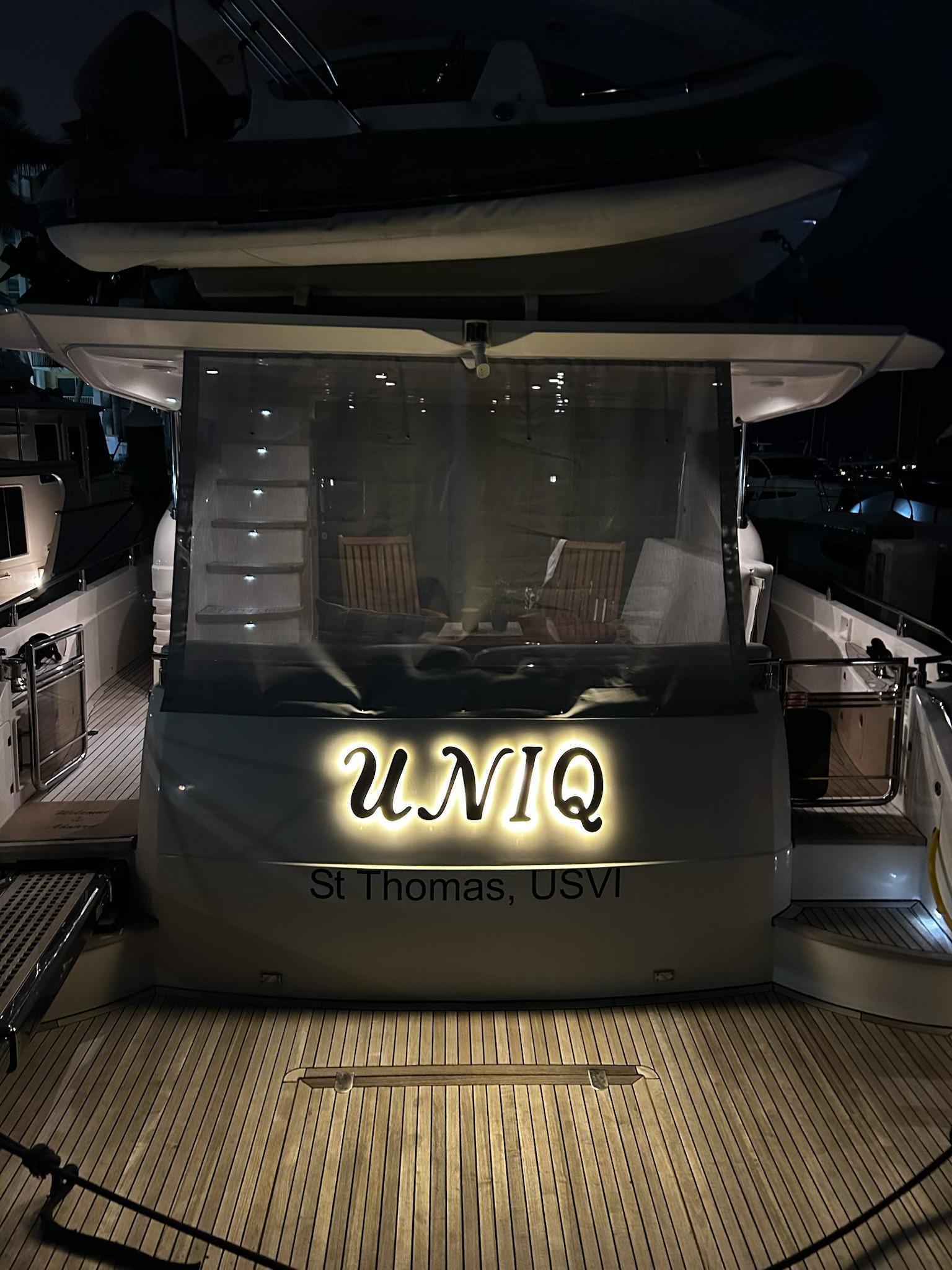 Currently the seller is considering a completely different style vessel, and your clean trade-in will be considered. UNIQ is docked 30 minutes north of Fort Lauderdale, in Lantana, FL. UNIQ is available for yacht broker previews and buyer inspections by appointment only.