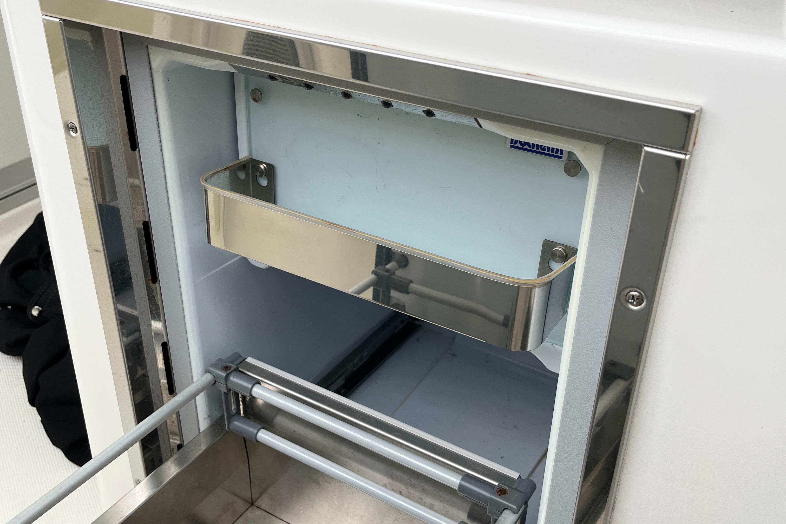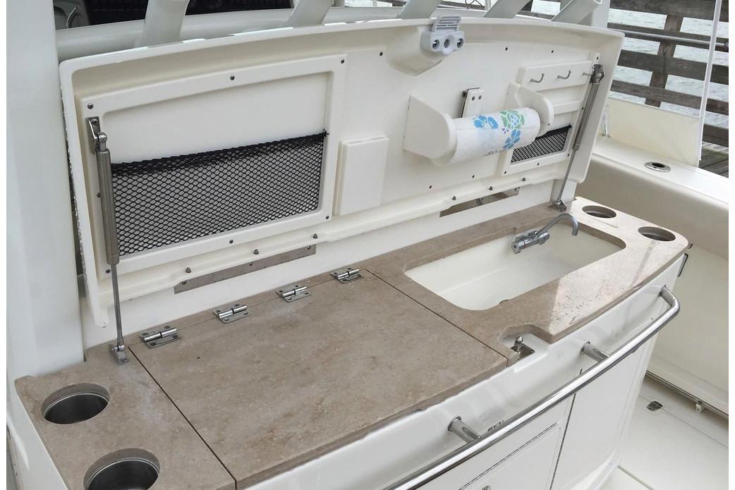 - Freshwater - hot and cold, sink and shower in console, pull-out shower at transom and dive door