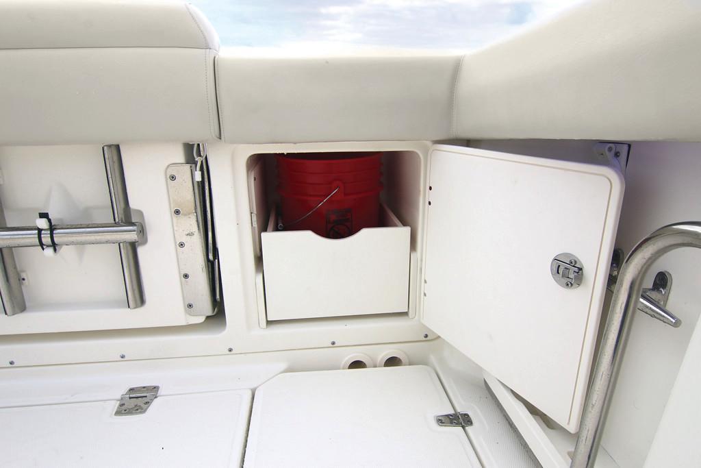 - Insulated storage compartment under aft facing seat with drain and insulated sealed lid (upgradable to livewell option)