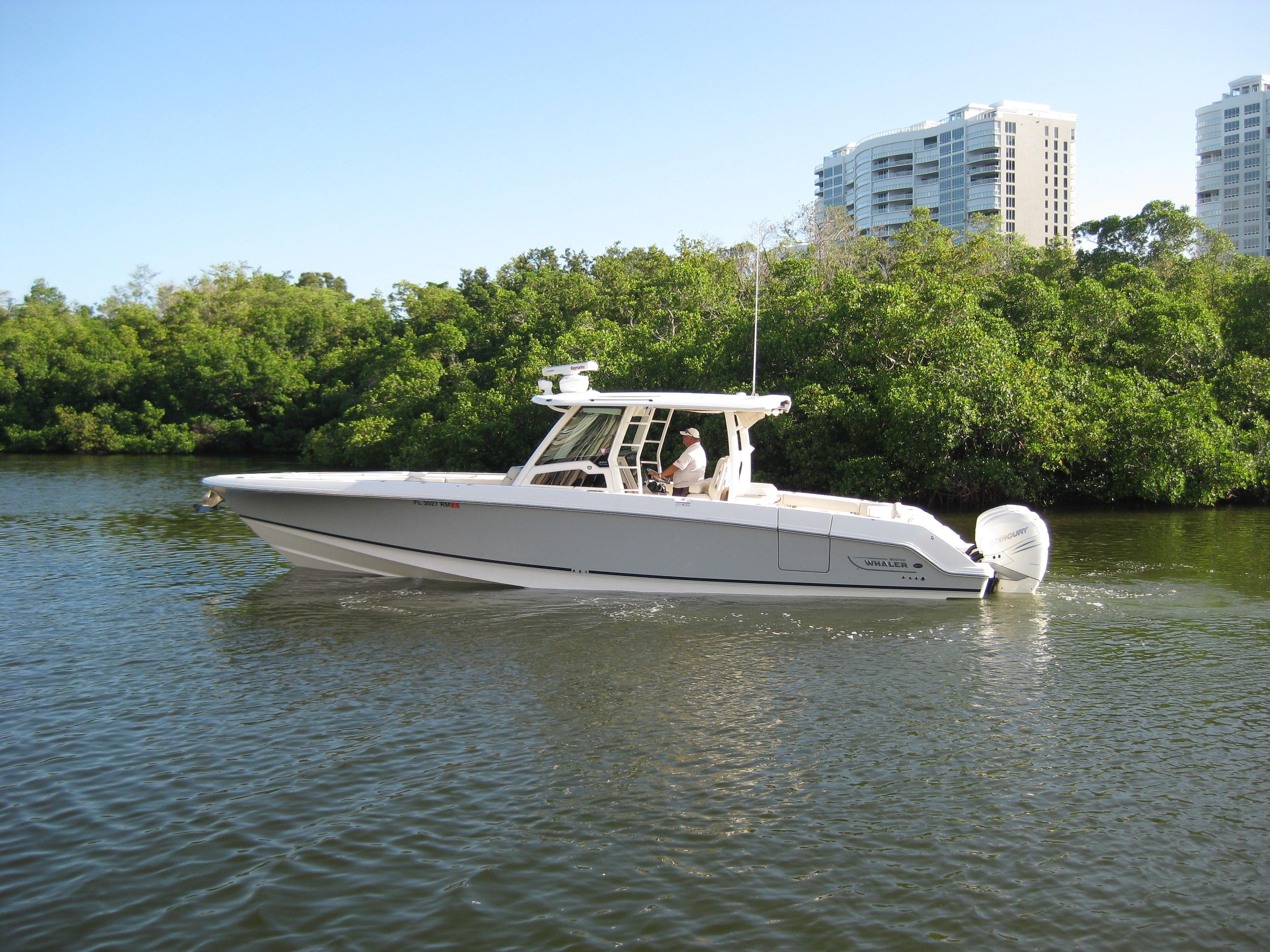 This 380 Outrage with a Sea-Keeper delivers comfortable fishing / family cruising. The roomy, notched bow features expansive seating and storage.A Summer Kitchen, perfect for entertaining friends and family.Joystick Piloting for effortless docking and seamless command.Air-conditioned helm deck boasts seating for the captain and two companions with bolsters and fold-down arm rests.------Dual widescreen helm displays feature state-of-the-art Raymarine® navigational technology and offer full control of the stereo as well as the Mercury propulsion system.Spacious air-conditioned cabin features a fully enclosed head for added comfort and privacy.