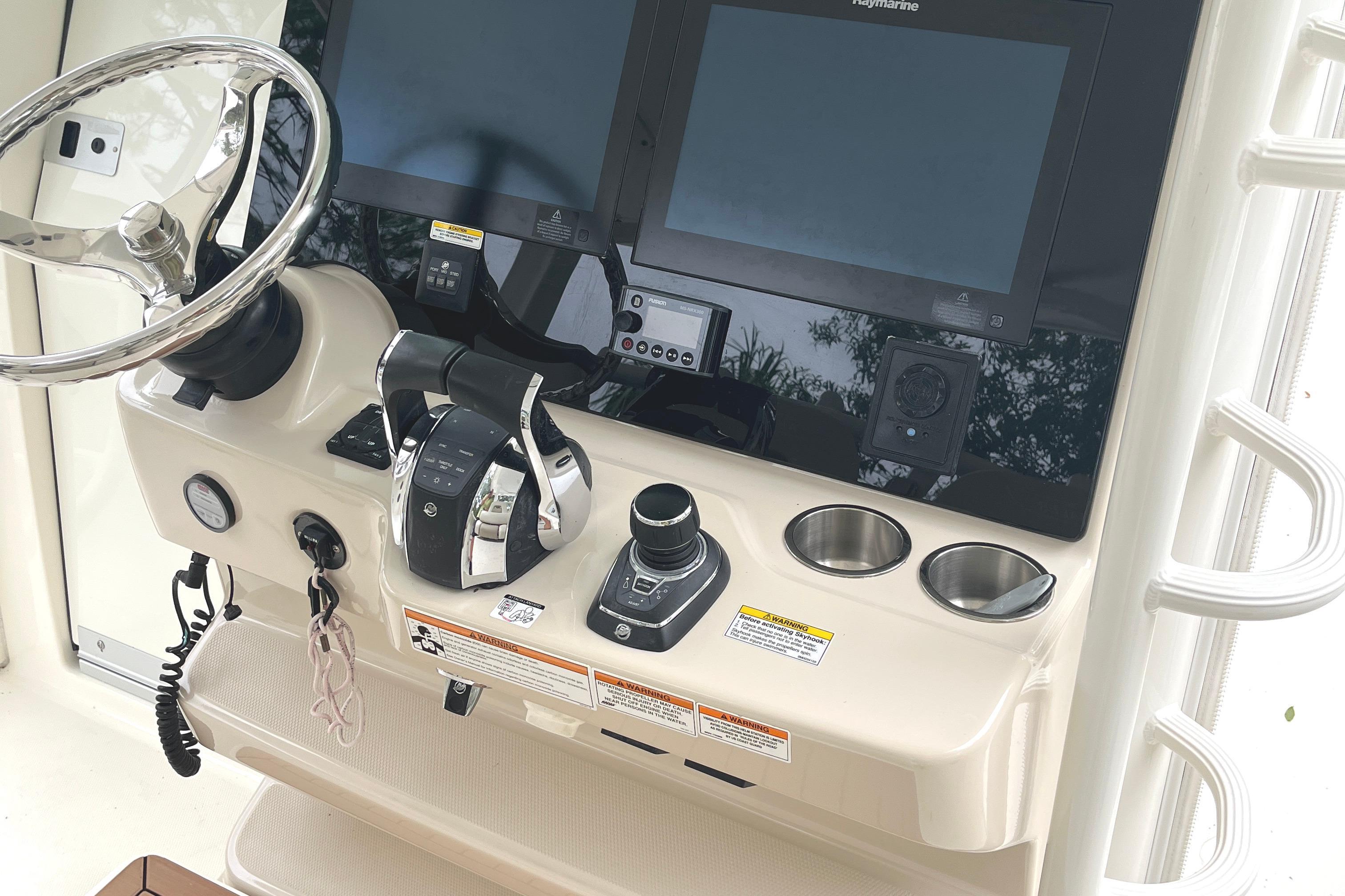 - Mercury DTS dual binnacle controls with integrated engine trim controls