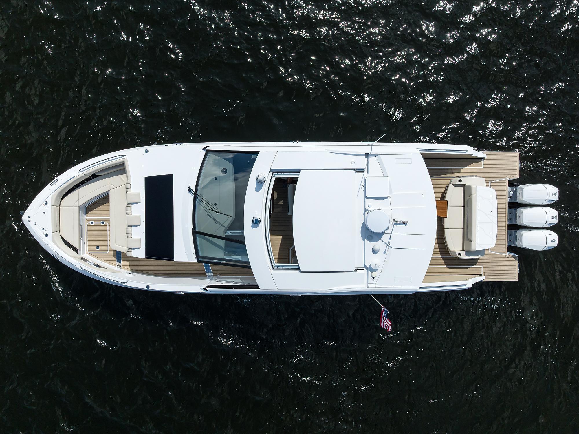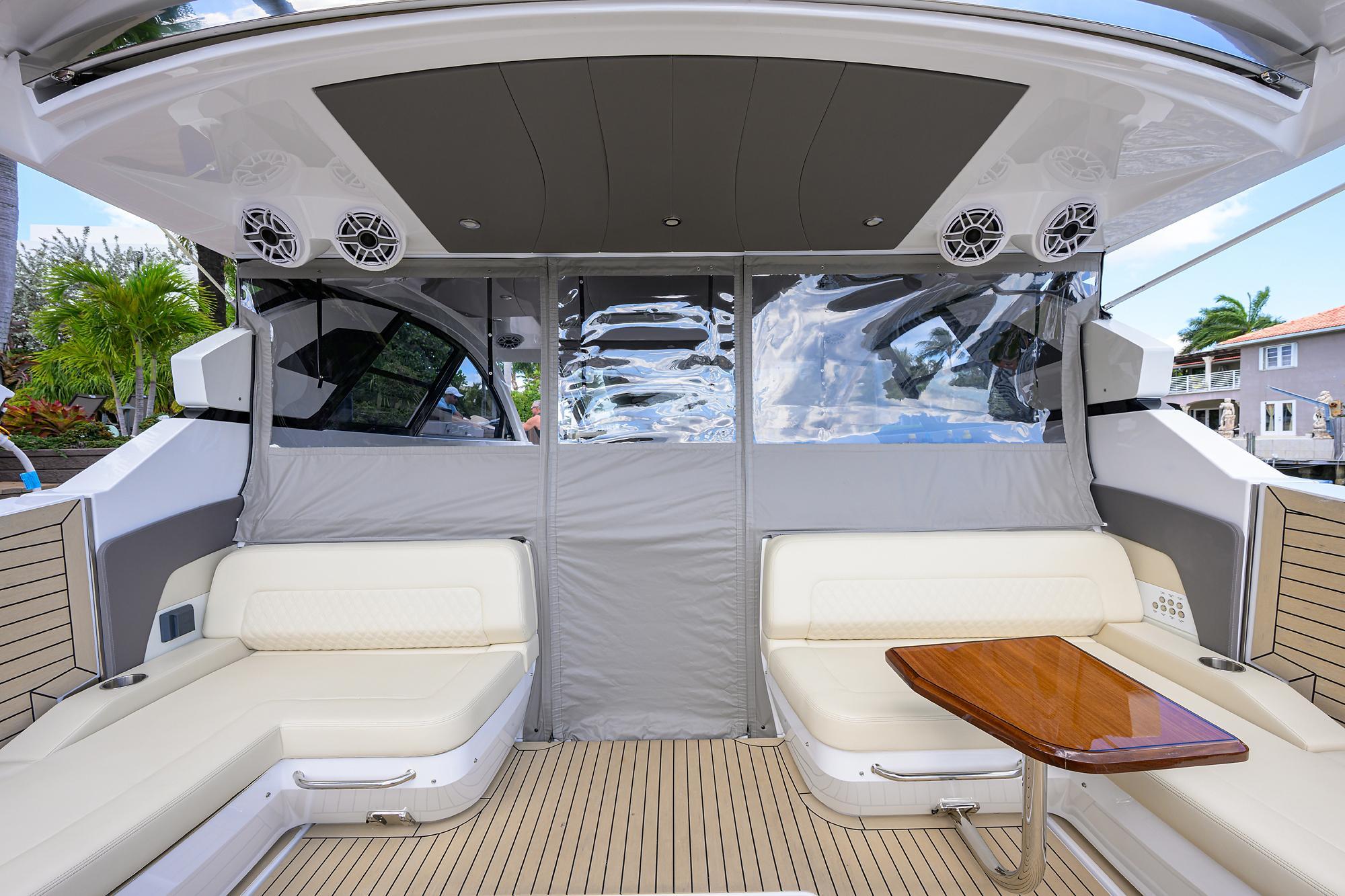 - Dual hydraulic beach doors expand the cockpit into large swim platforms for water access and entertaining