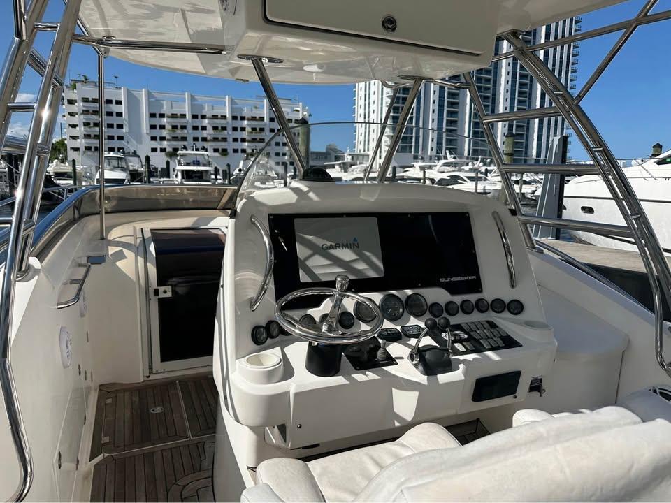 ~New Arrival~~2004 Sunseeker 37 Sportfisherman~~Twin Volvo Penta Diesel D-310 with 100 and 500 Hours ~~Garmin Electronics: GPS, Radar, Depthfinder / Fishfinder~~Includes Generator and Air Condition To Stay Cool and Comfortable~~Spacious Cockpit: Rod Holders, Fish Boxes, Livewell and Plenty of Storage~~Luxury Cabin: Sleeps 4, Convertible dinette, and Shower~~Bow Thruster For Effortless Docking and Maneuverability~~Stored in Marina Dry Rack~~Fuel Capacity: 290 gallons~~Water Capacity: 55 gallons~This boat is turn key and ready for fishing or island hopping. Weather you're looking to impress guests on a sunset cruise or run to the Bahamas for the weekend, the Sunseeker 37 Sportfisherman does it all.