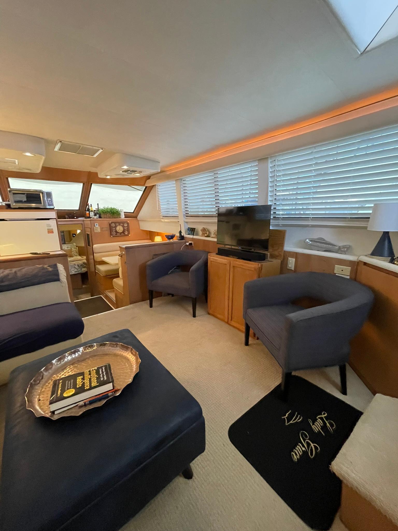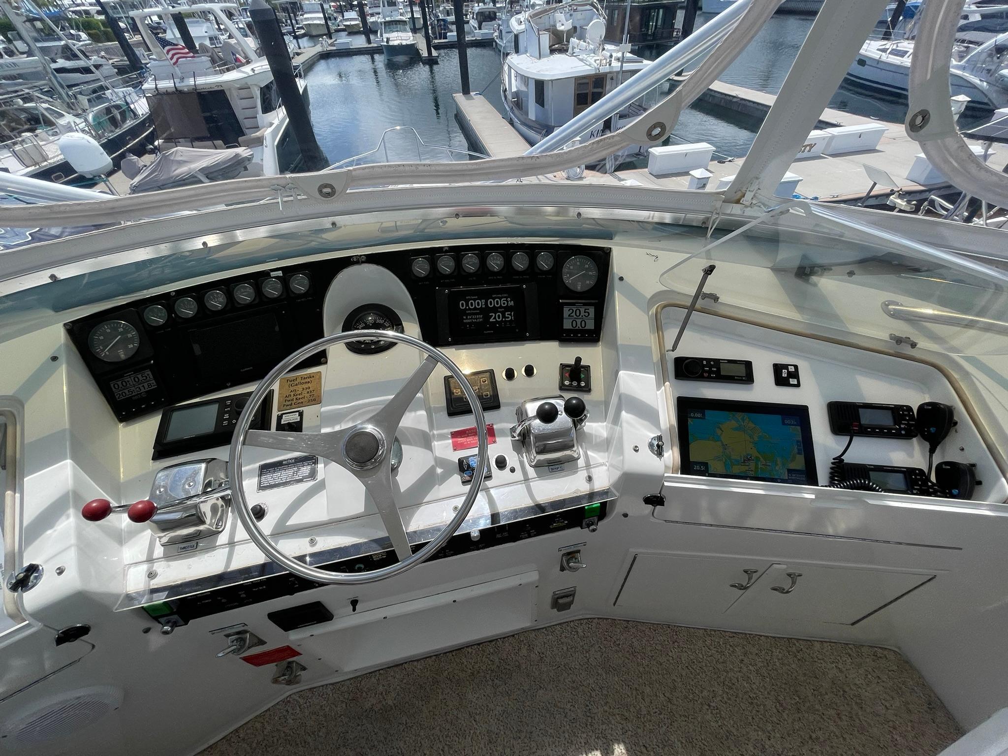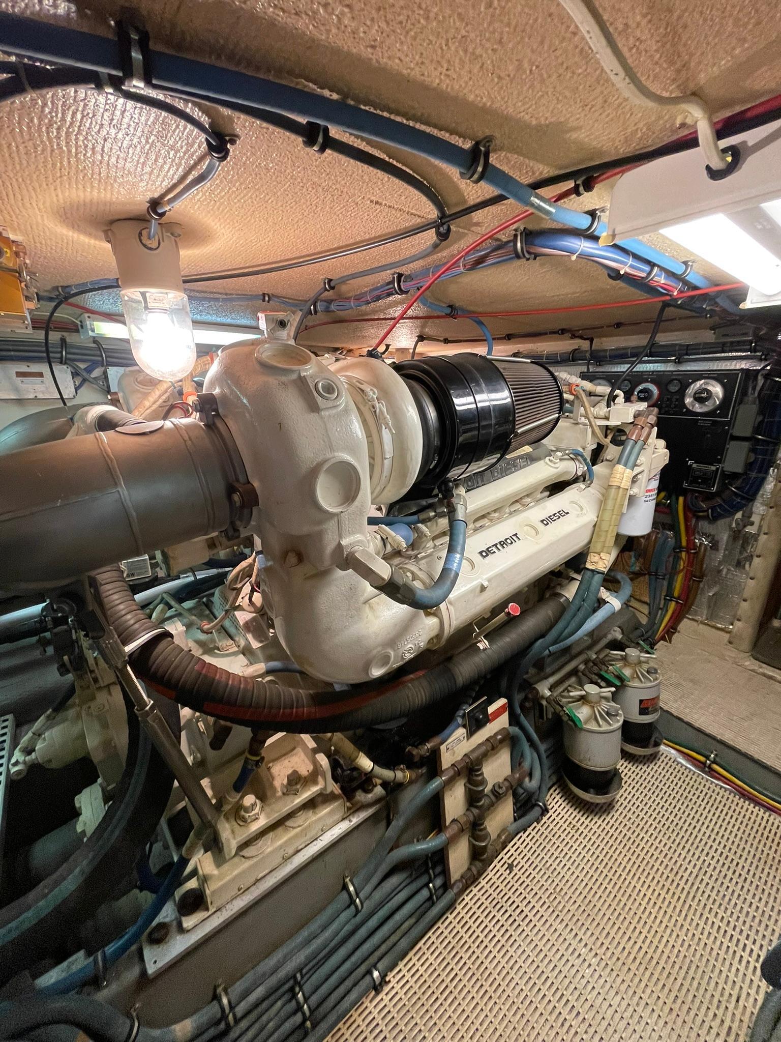She boasts low time, well maintained and inspected Detroit Diesels that are easy to operate and extremely durable. A full suite of new Garmin electronics compliments a well organized and functional helm station. The addition of a wireless Yacht Controller makes docking a breeze from anywhere on the boat. Generous fuel & water tankage makes long range trips possible.