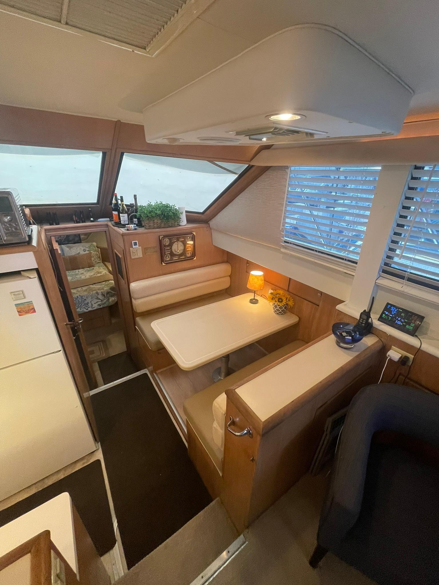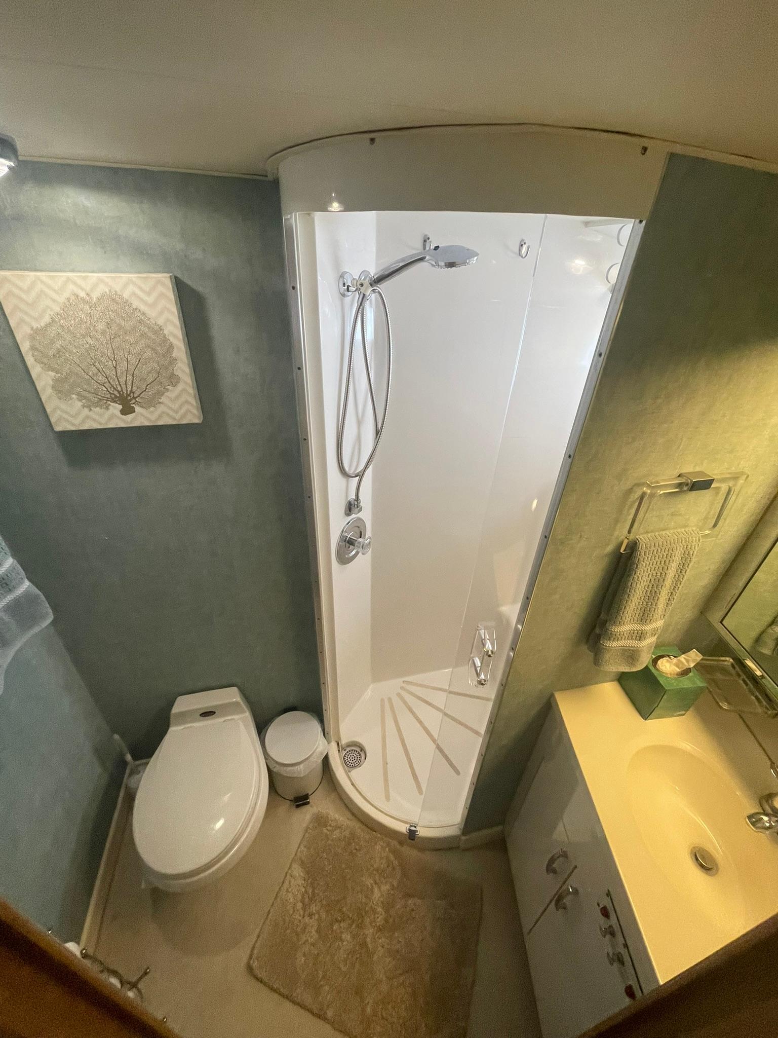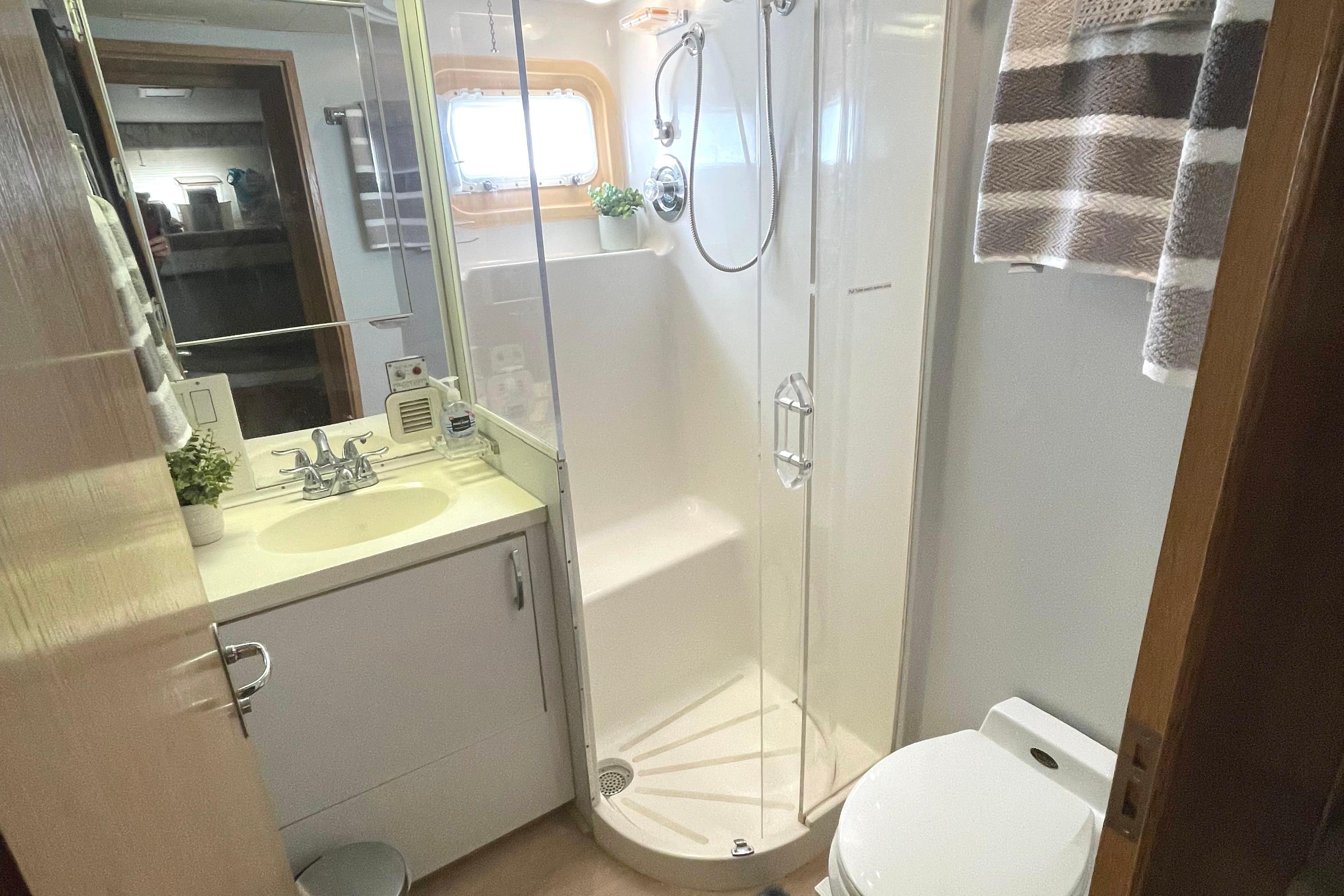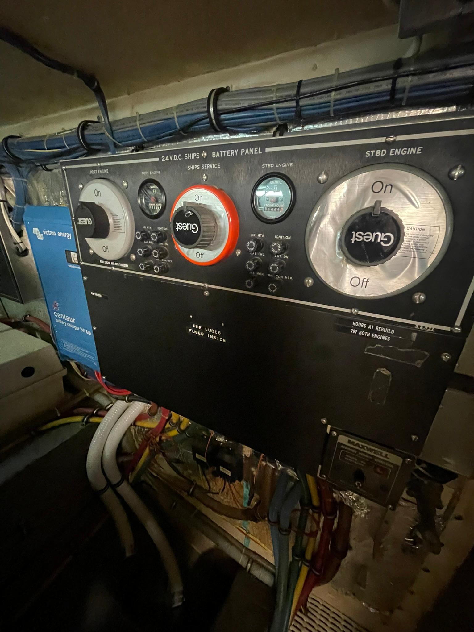 She boasts low time, well maintained and inspected Detroit Diesels that are easy to operate and extremely durable. A full suite of new Garmin electronics compliments a well organized and functional helm station. The addition of a wireless Yacht Controller makes docking a breeze from anywhere on the boat. Generous fuel & water tankage makes long range trips possible.