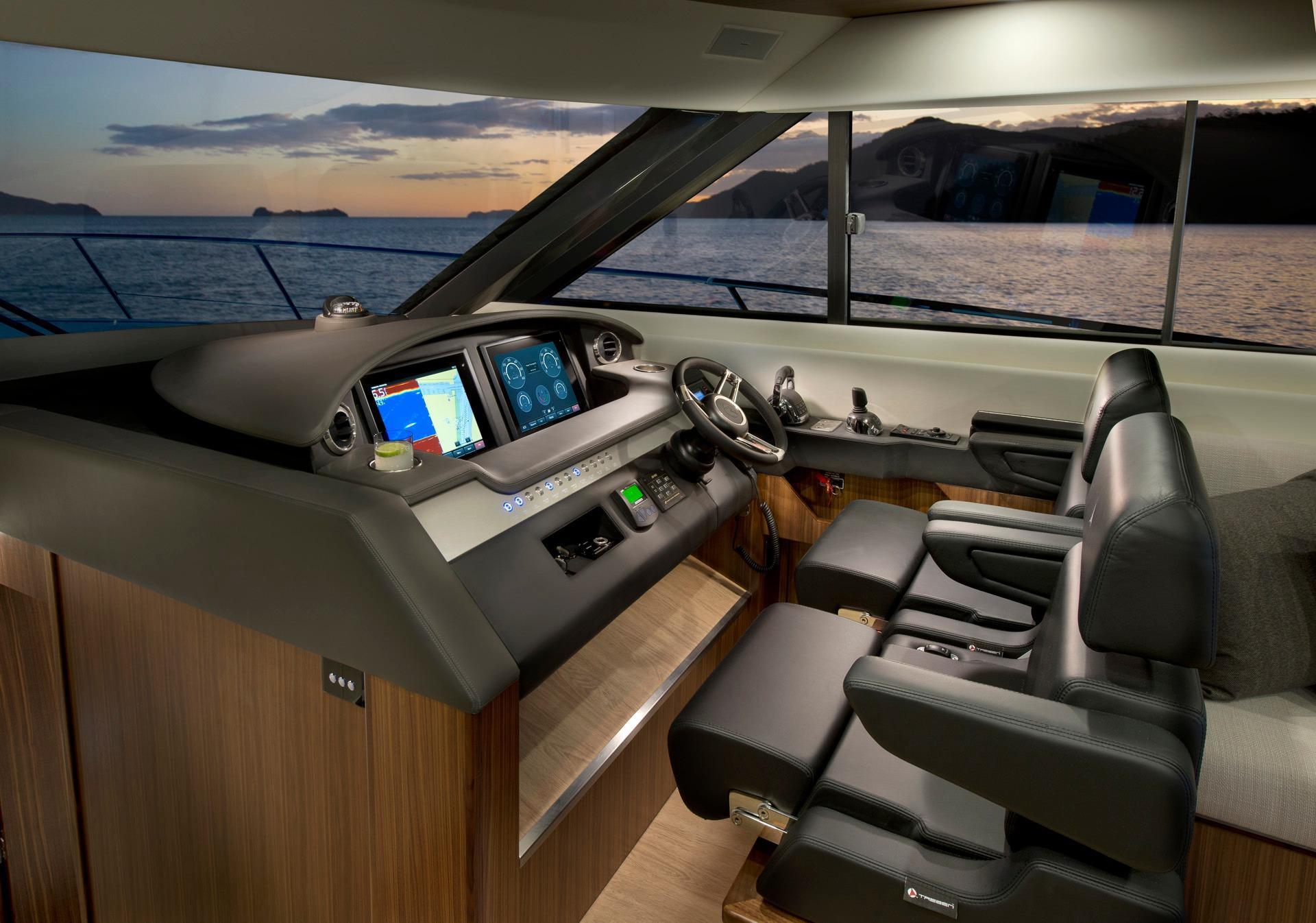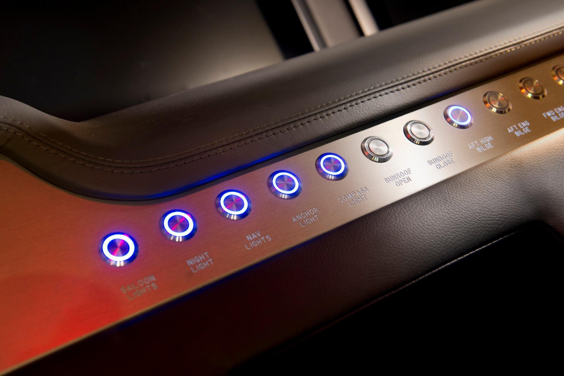 Three C-Zone central AC/DC control panels – saloon wet bar, helm and full-beam master stateroom – with pre-set and customised modes to simplify owner operation