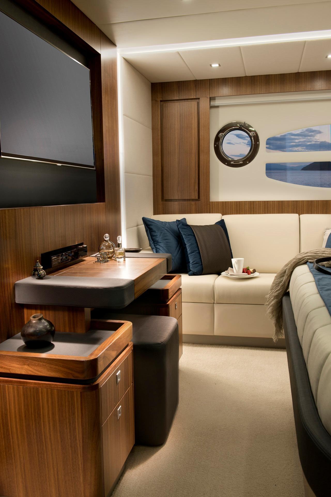 Luxurious internal furnishings, including lounges made from the finest of padding, plush leathers and fabrics