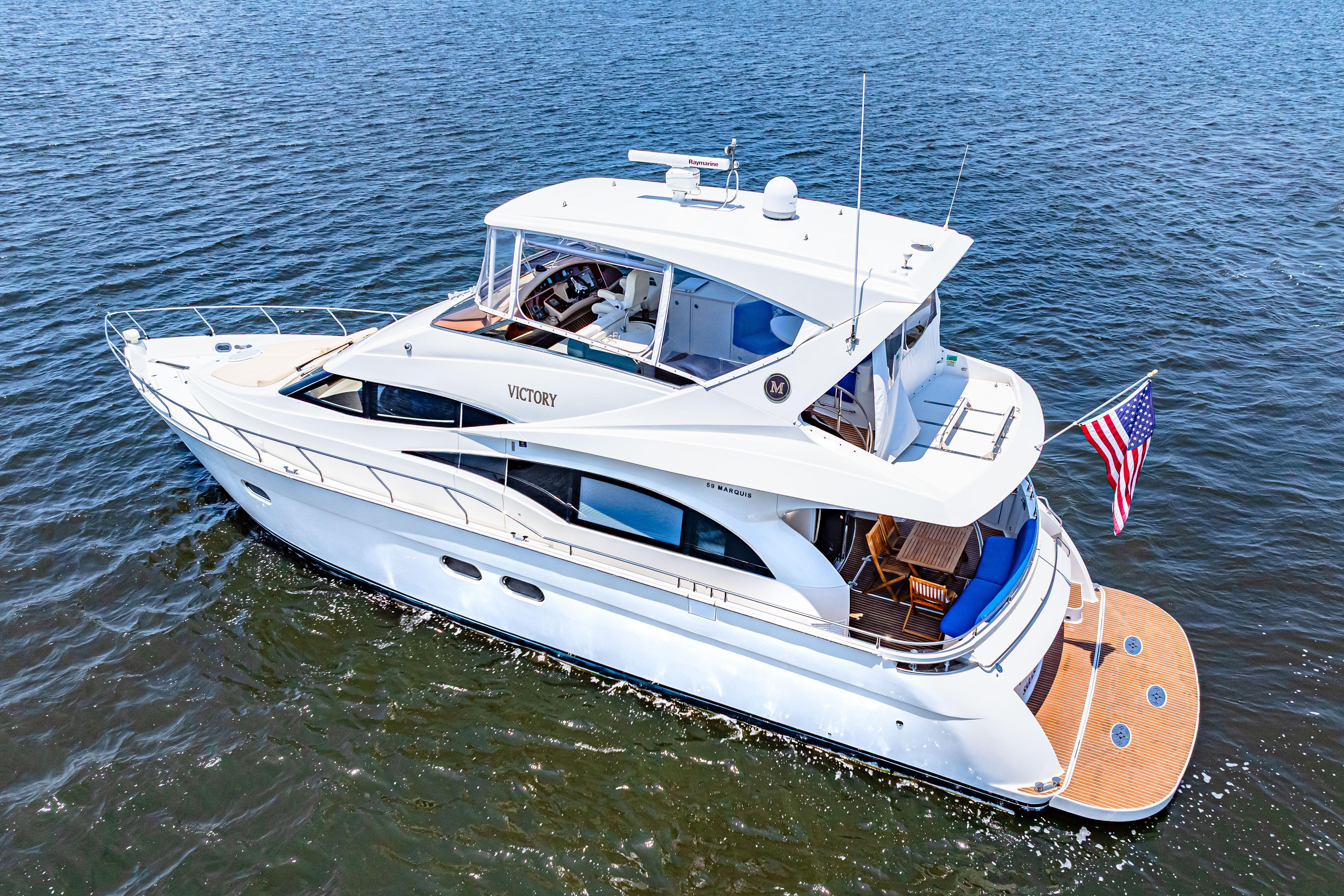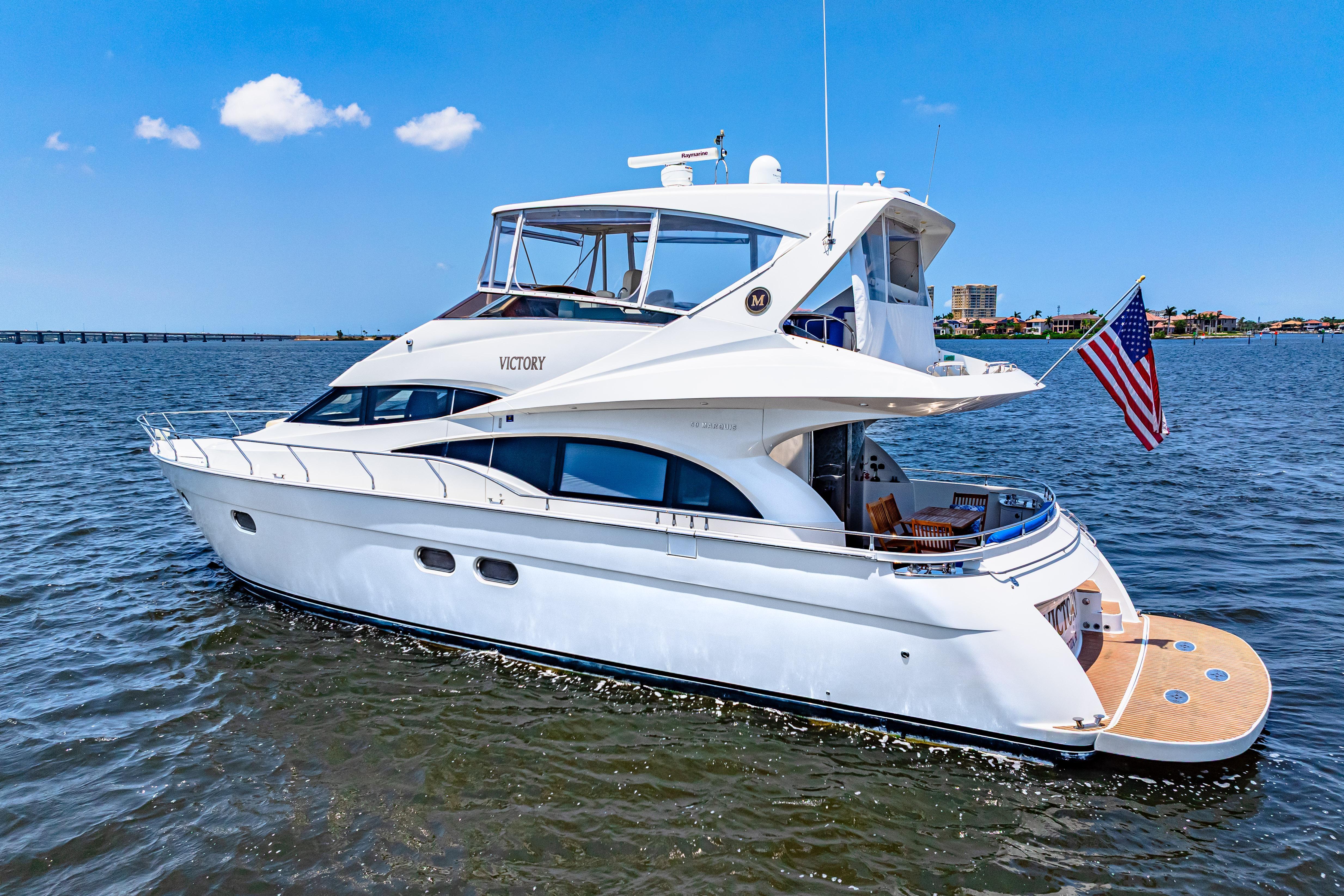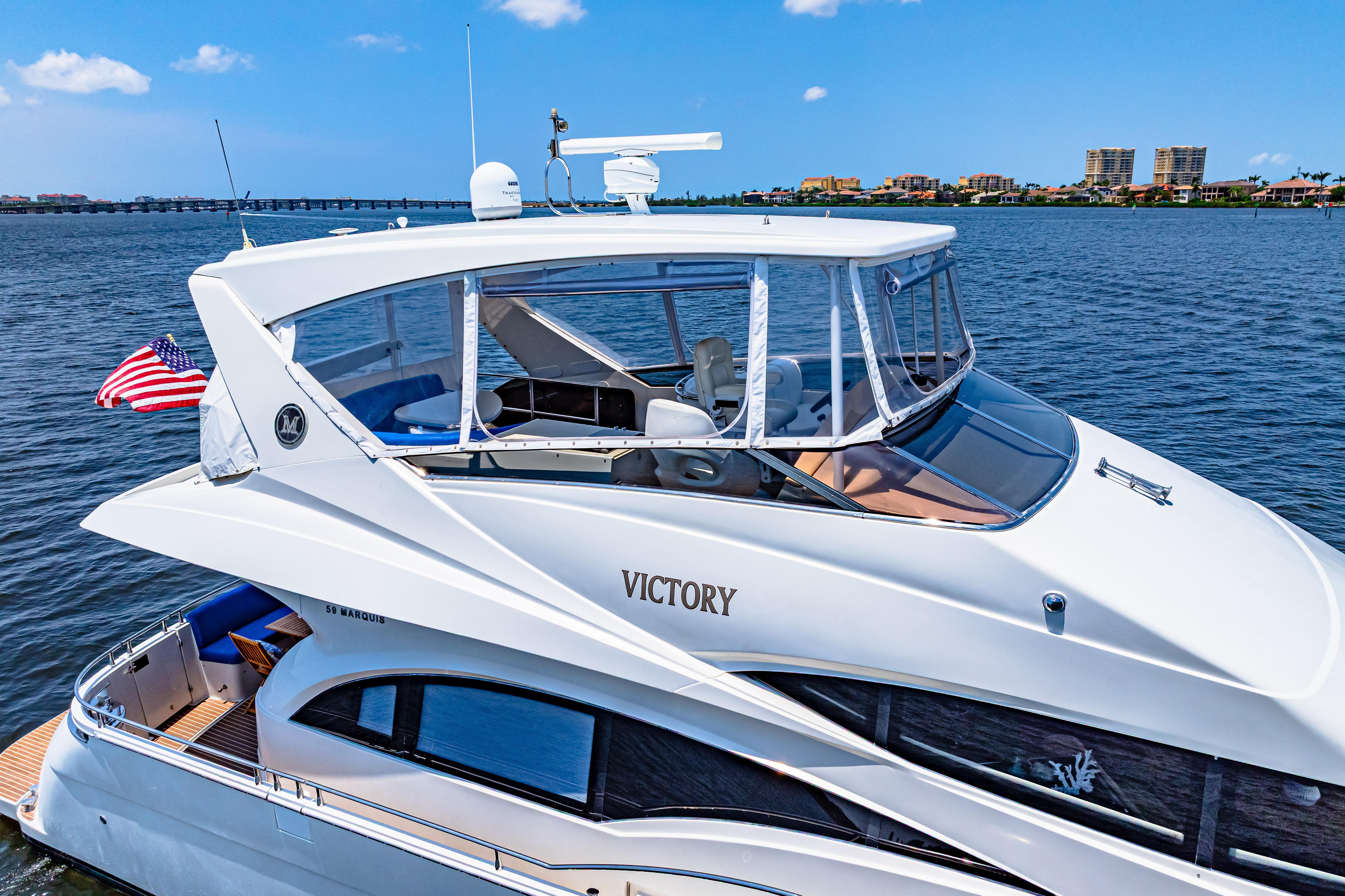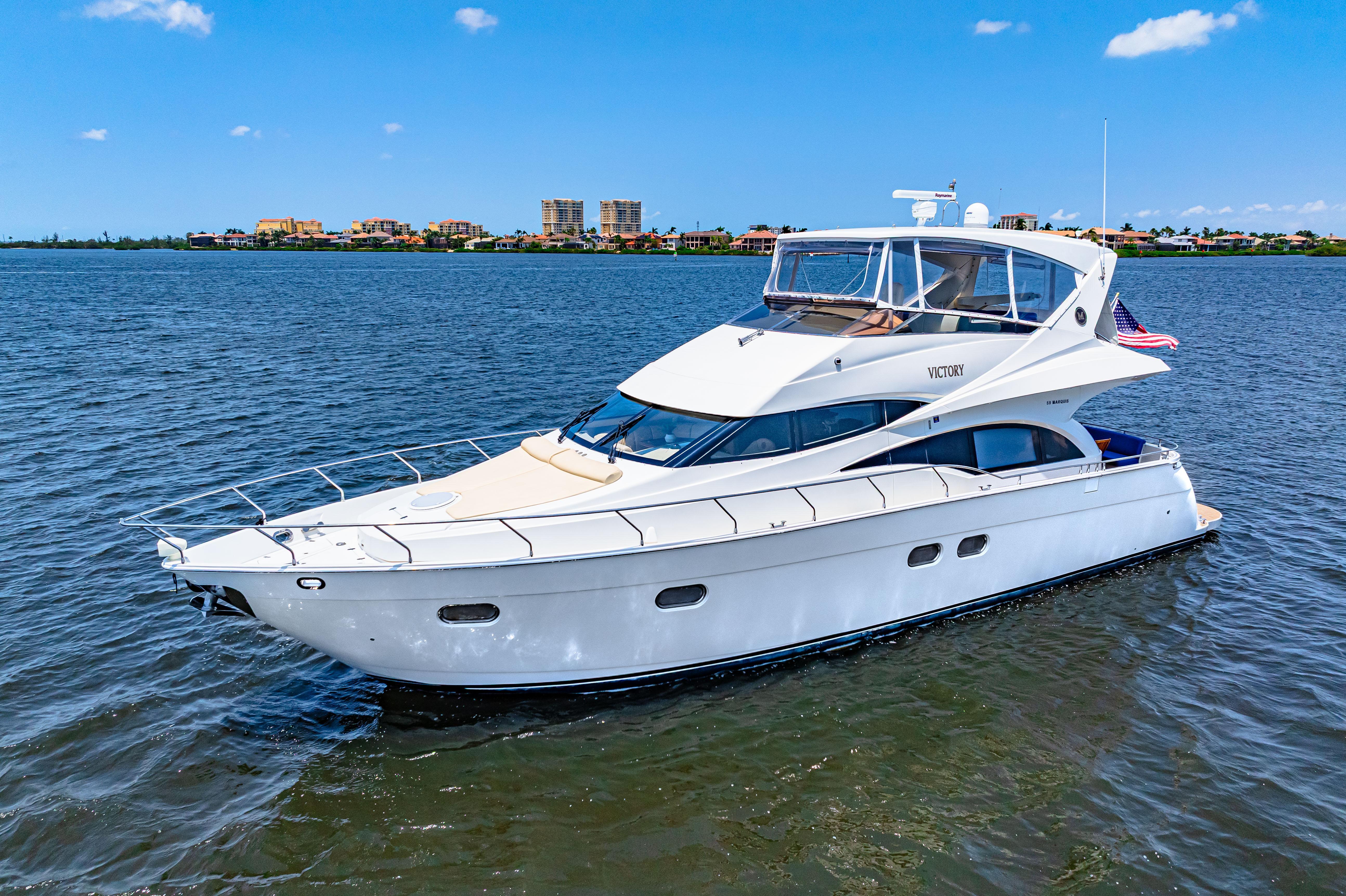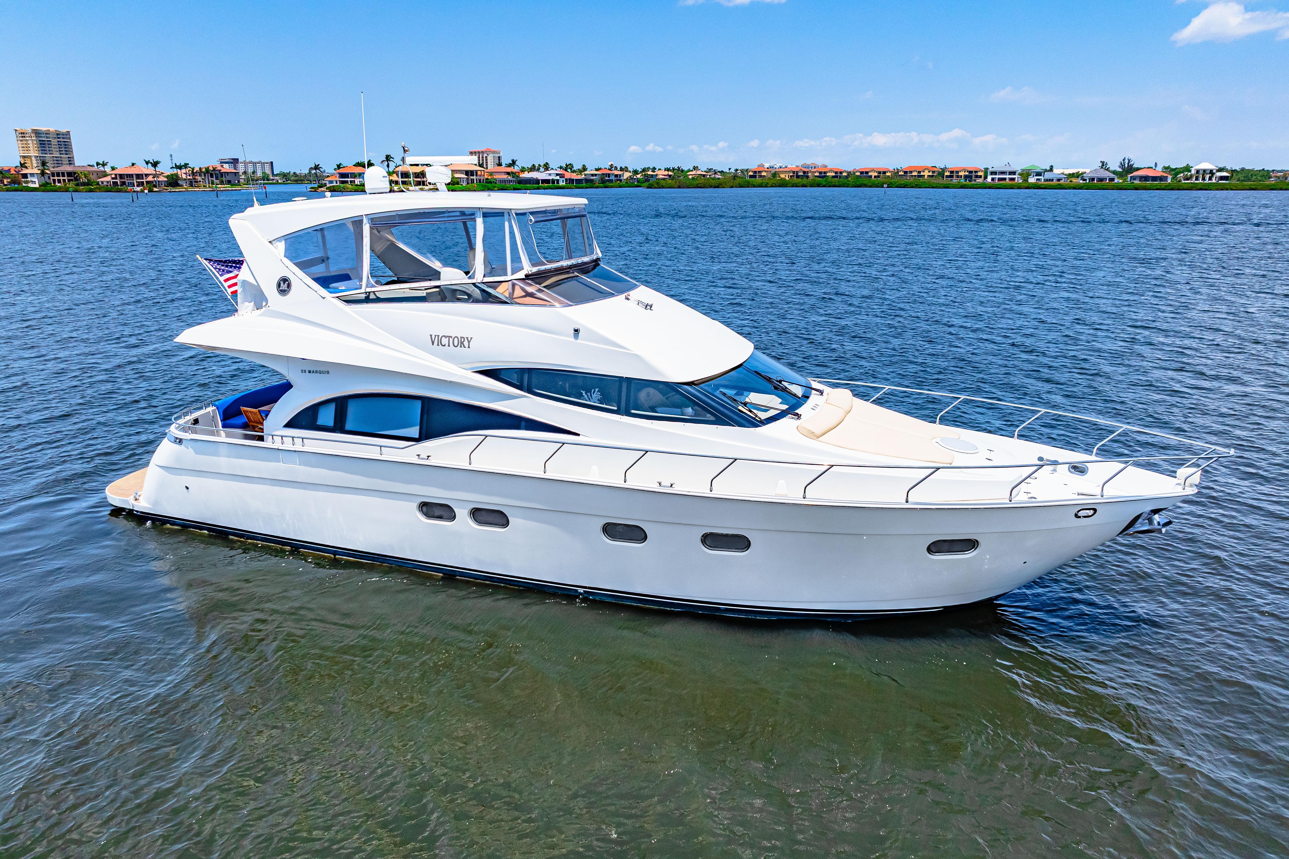 2005 Marquis 59 Motor YachtAsking Price: $649,000Location: Palmetto, Florida Riveria Dunes MarinaOverview:Step aboard this impeccably maintained 2005 Marquis 59 Motor Yacht, a rare opportunity to own one of the most sought-after models in her class. Combining Italian styling by Nuvolari-Lenard with American craftsmanship from the Marquis Yachts shipyard in Wisconsin, this yacht offers the perfect blend of luxury, performance, and seaworthiness. Whether cruising with family or entertaining guests, this Marquis 59 delivers a sophisticated yachting experience.Key Features:Twin Volvo Penta D-12 Inboard Diesel Engines (715 HP each) – approx. 950 hours3 Stateroom, 2 Head Layout + Separate Crew QuartersCherry Wood Interior with Custom Décor UpgradesFull-Beam Master Suite with Private En-SuiteLarge Flybridge with Full Enclosure, Wet Bar, and GrillSpacious CockpitBow and Stern ThrustersFull Raymarine Electronics SuiteKohler 23kW GeneratorInterior: Stepping inside, you are welcomed by a bright, open salon with expansive windows, designer furnishings, and plush carpeting. The galley is positioned forward, featuring full-size appliances, granite countertops, and an adjacent dining settee. Below deck, the accommodations include a full-beam master suite with a walkaround berth, abundant storage, and a luxurious private head with full size tub. The VIP stateroom forward and twin guest stateroom amidships share a second large head. Separate crew quarters with private access offer added flexibility.Mechanical and Electrical: This yacht is powered by reliable and well-maintained Volvo Penta D-12 Inboard Diesel Engines, offering excellent range and performance. A robust Kohler generator ensures all systems run seamlessly while underway or at anchor. Recent mechanical services include new risers and AC Unit.Recent Upgrades and Maintenance:New Flybridge Canvas and Enclosure 2023Heat Exchangers 2023Starboard Engine Turbo Rebuilt 2023All New House and Generator Batteries 2023Yacht ControllerBottom Paint and Prop Speed 2022Engine and Generator Service 2024Additional Information:LOA: 59'2"Beam: 16'6"Draft: 4'10"Fuel Capacity: 800 GallonsWater Capacity: 200 GallonsTop Speed: Approximately 30 knotsDisclaimer: The information provided is believed to be accurate but is not guaranteed. Buyers are encouraged to verify all details independently and consult with their own marine surveyors, legal, and financial professionals prior to purchase.Perfect For: Long-range cruising, entertaining, or liveaboard use. Whether your goal is business entertaining, family vacations, or coastal adventures, this Marquis 59 is an excellent choice.