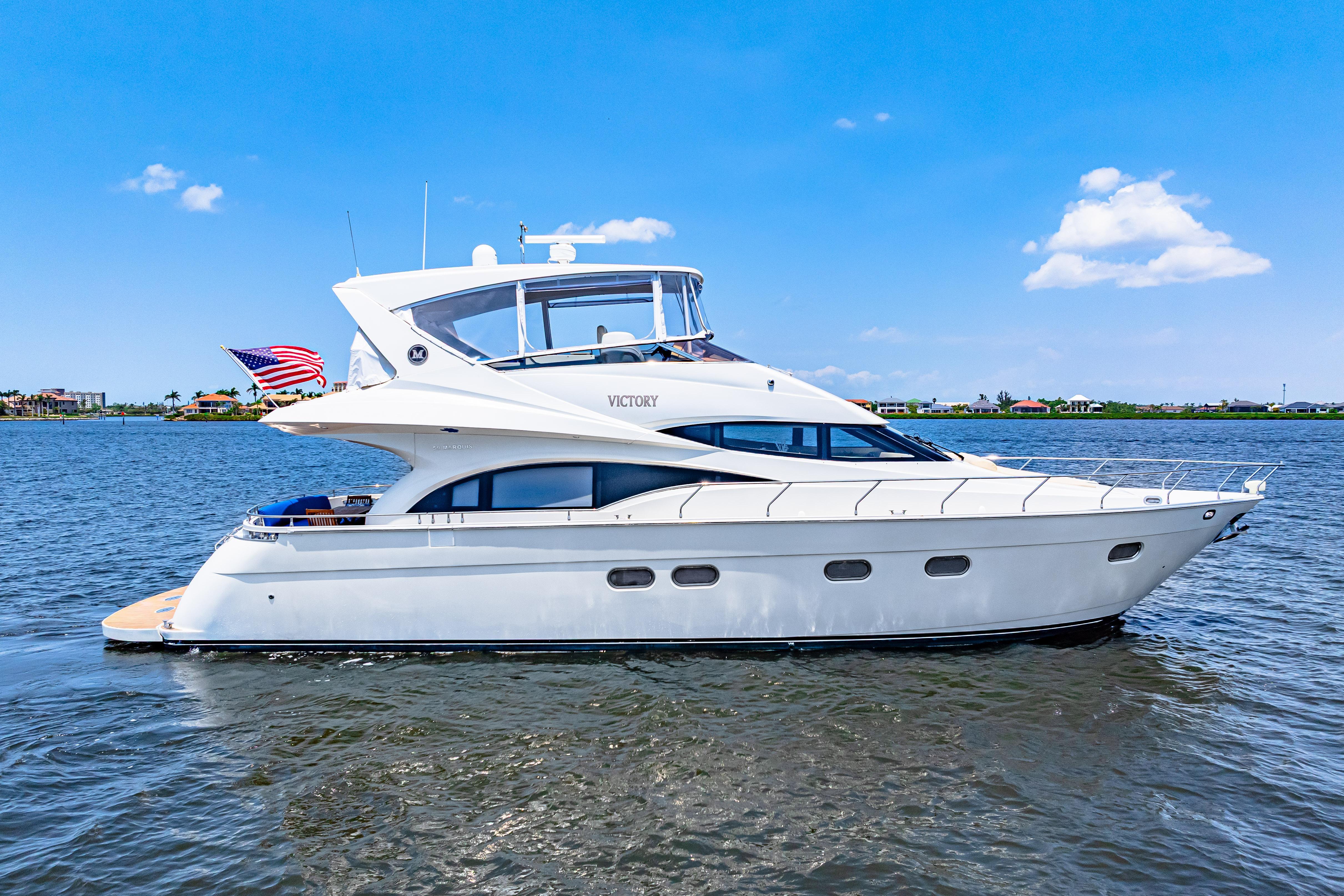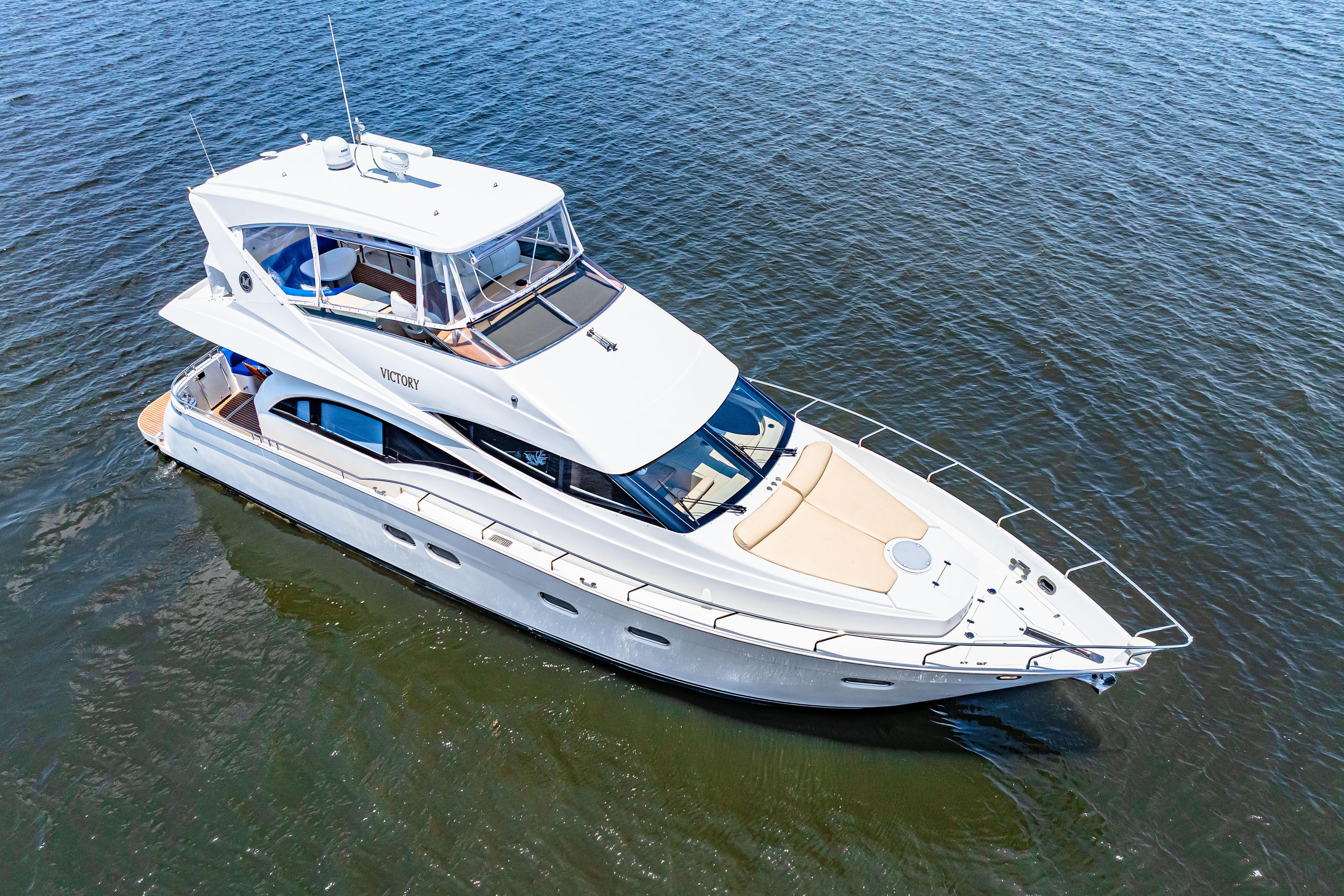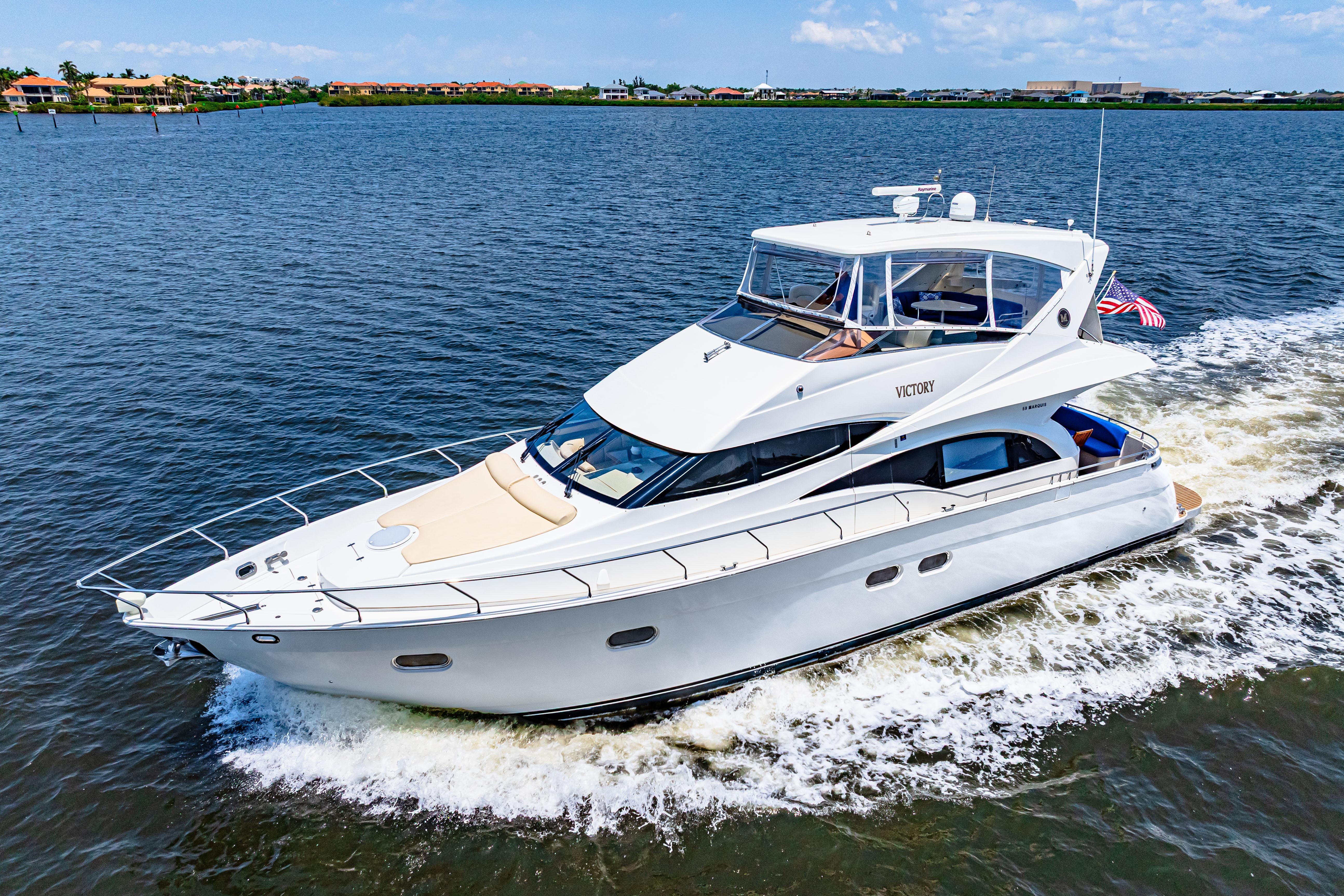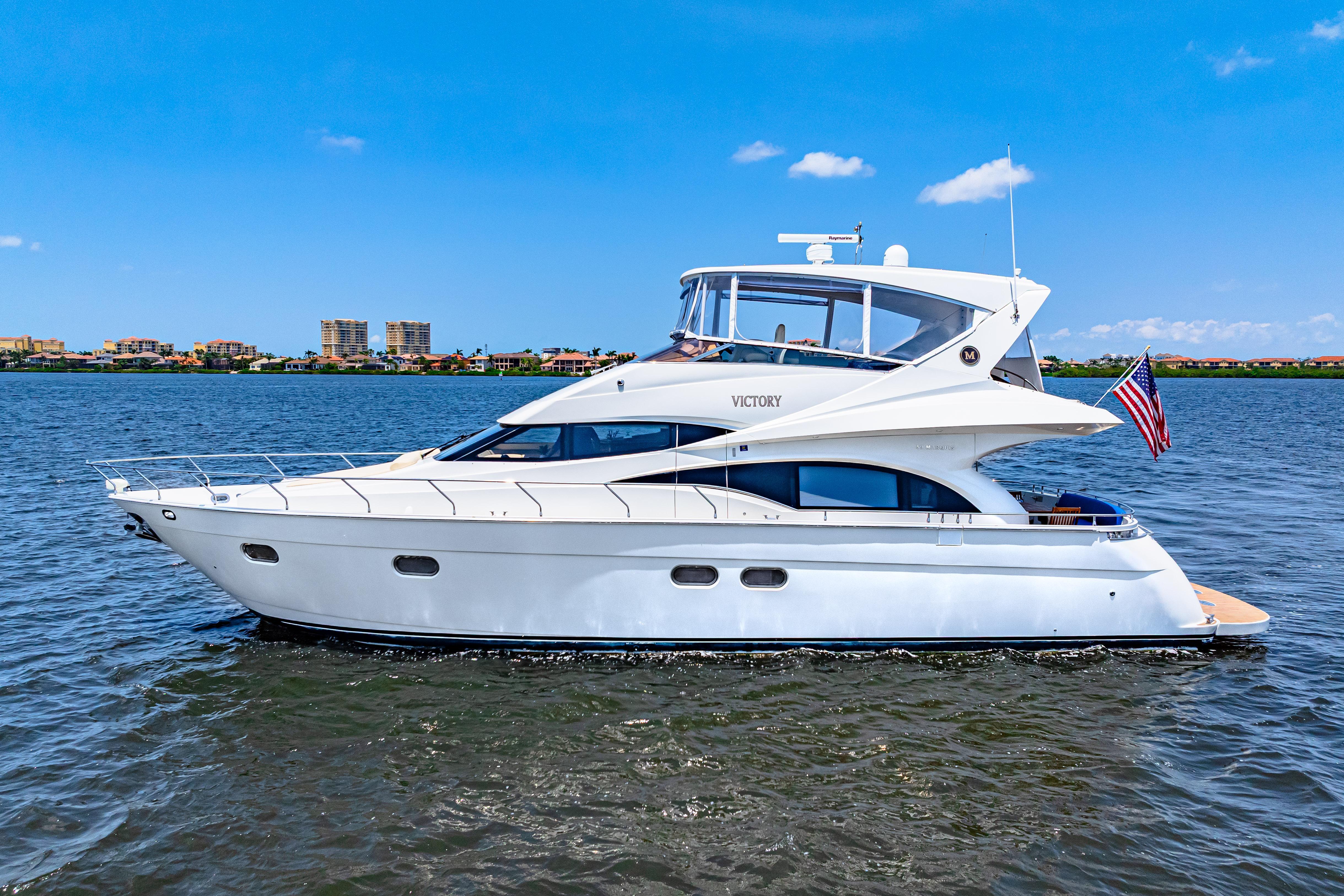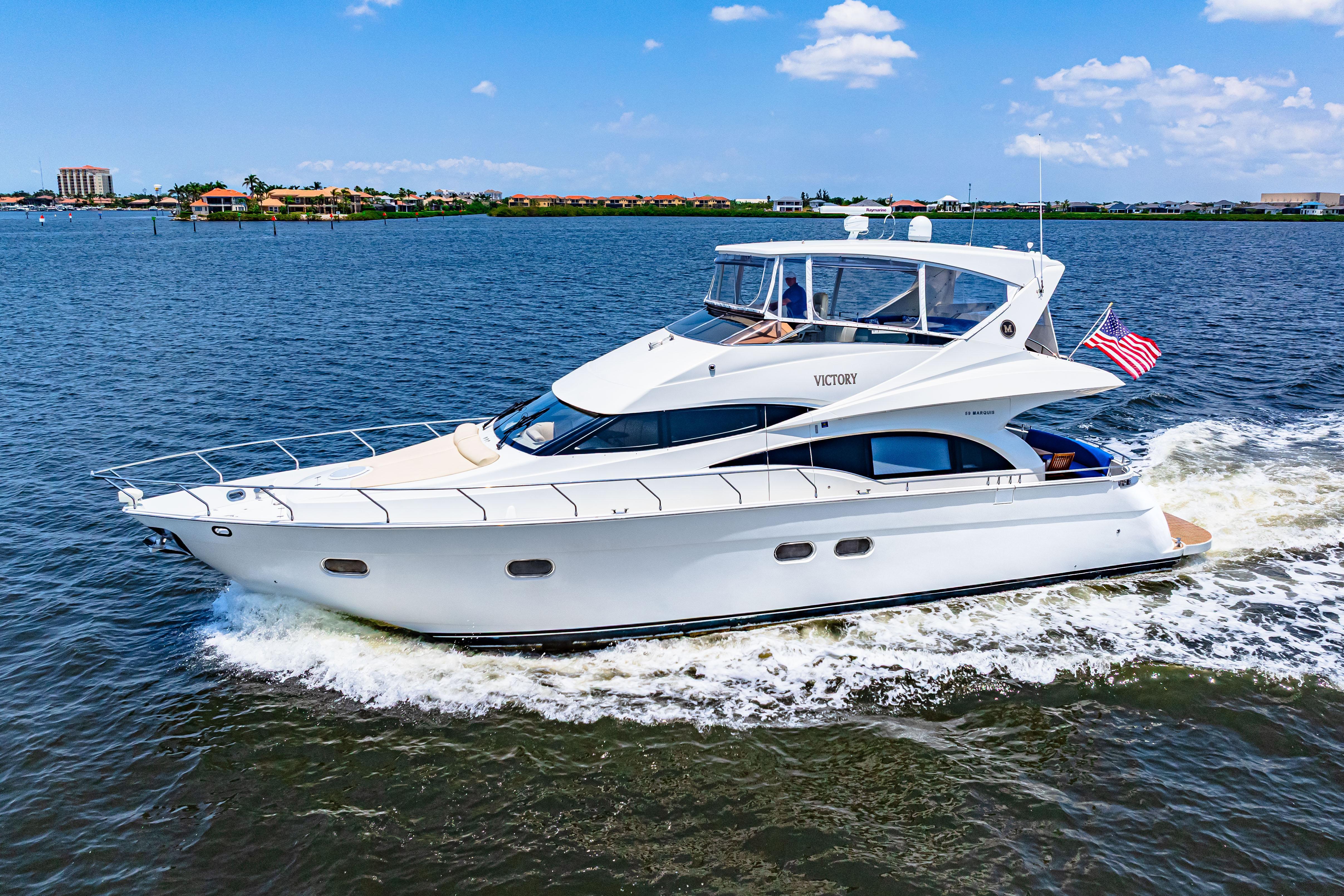 2005 Marquis 59 Motor YachtAsking Price: $649,000Location: Palmetto, Florida Riveria Dunes MarinaOverview:Step aboard this impeccably maintained 2005 Marquis 59 Motor Yacht, a rare opportunity to own one of the most sought-after models in her class. Combining Italian styling by Nuvolari-Lenard with American craftsmanship from the Marquis Yachts shipyard in Wisconsin, this yacht offers the perfect blend of luxury, performance, and seaworthiness. Whether cruising with family or entertaining guests, this Marquis 59 delivers a sophisticated yachting experience.Key Features:Twin Volvo Penta D-12 Inboard Diesel Engines (715 HP each) – approx. 950 hours3 Stateroom, 2 Head Layout + Separate Crew QuartersCherry Wood Interior with Custom Décor UpgradesFull-Beam Master Suite with Private En-SuiteLarge Flybridge with Full Enclosure, Wet Bar, and GrillSpacious CockpitBow and Stern ThrustersFull Raymarine Electronics SuiteKohler 23kW GeneratorInterior: Stepping inside, you are welcomed by a bright, open salon with expansive windows, designer furnishings, and plush carpeting. The galley is positioned forward, featuring full-size appliances, granite countertops, and an adjacent dining settee. Below deck, the accommodations include a full-beam master suite with a walkaround berth, abundant storage, and a luxurious private head with full size tub. The VIP stateroom forward and twin guest stateroom amidships share a second large head. Separate crew quarters with private access offer added flexibility.Mechanical and Electrical: This yacht is powered by reliable and well-maintained Volvo Penta D-12 Inboard Diesel Engines, offering excellent range and performance. A robust Kohler generator ensures all systems run seamlessly while underway or at anchor. Recent mechanical services include new risers and AC Unit.Recent Upgrades and Maintenance:New Flybridge Canvas and Enclosure 2023Heat Exchangers 2023Starboard Engine Turbo Rebuilt 2023All New House and Generator Batteries 2023Yacht ControllerBottom Paint and Prop Speed 2022Engine and Generator Service 2024Additional Information:LOA: 59'2"Beam: 16'6"Draft: 4'10"Fuel Capacity: 800 GallonsWater Capacity: 200 GallonsTop Speed: Approximately 30 knotsDisclaimer: The information provided is believed to be accurate but is not guaranteed. Buyers are encouraged to verify all details independently and consult with their own marine surveyors, legal, and financial professionals prior to purchase.Perfect For: Long-range cruising, entertaining, or liveaboard use. Whether your goal is business entertaining, family vacations, or coastal adventures, this Marquis 59 is an excellent choice.