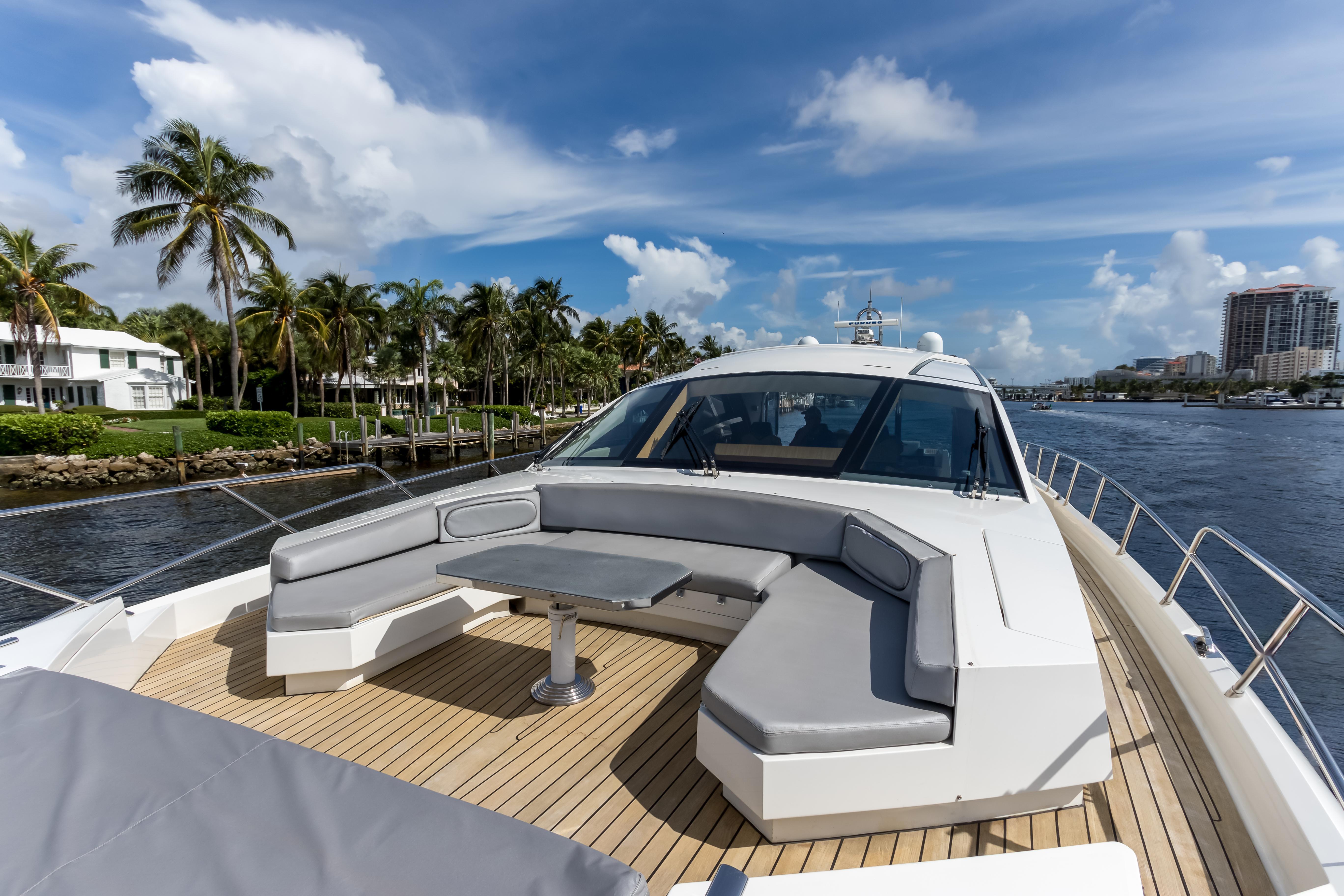 "Bikinis Optional" – 2012 Cheoy Lee Alpha Owner has purchased his new boat - All offers considered - trades welcomed. HOT TUB - STUNNING GALLEY - INCREDIBLE BOW"Bikinis Optional" is a prime example of Cheoy Lee’s renowned craftsmanship, representing the Alpha Series Express Motoryacht line with distinction. Built in 2012 by the respected yacht builder Cheoy Lee, this vessel seamlessly blends high-performance speed—reaching up to 38 knots—with the superior build quality and attention to detail the brand is known for.Starting aft on the teak swim platform, you’ll find direct access to the tender garage for convenient water access and storage. Dual staircases to port and starboard lead up to the aft deck, where you'll find an inviting seating area for six, complemented by two high-low tables that adjust at the touch of a button. At the transom, a generous sun pad—affectionately referred to as a "bunny pad"—conceals a hidden jacuzzi large enough to accommodate four adults, offering both luxury and discretion.The teak decking continues seamlessly along full walk-around side decks, bordered by polished stainless steel railings, guiding you to the bow. Here, guests can enjoy additional seating for six, expansive sun pads, an escape hatch from the VIP stateroom below, and easy access to chain lockers and anchor controls.Entering the main deck through twin sliding glass doors, you’re welcomed into a space where indoor and outdoor living blend effortlessly. A central glass partition disappears completely, merging the aft deck with the interior salon to create a single, open-concept living area. Large picture windows, overhead skylights, and a retractable hardtop flood the space with natural light and a sense of openness.The main salon is outfitted with a built-in wet bar, glass and bottle storage, a pop-up television, and ample seating for 6–8 guests—perfect for entertaining. Moving forward, three captain’s chairs face a striking floating glass bridge. This elevated helm position offers an atrium-style view down into the lower-level galley and dinette, which remain fully open to the salon above for maximum connectivity and visual impact.Accommodations are thoughtfully arranged for both guests and crew. A full-beam master stateroom is located aft, featuring a spacious walk-in closet and an en-suite bath with a jacuzzi tub. Forward, the VIP stateroom includes its own en-suite bath, while a bunk cabin and day head provide additional guest accommodations off the companionway.Access to the engine room and crew quarters is located discreetly off the aft deck. The engine room is exceptionally spacious for this class of yacht, offering 7-foot headroom, outstanding access to all critical machinery, and a watertight door to the crew cabin, which comfortably sleeps two with its own en-suite facilities. This layout will appeal strongly to owner-operators and engineering-minded buyers, combining practicality with luxury throughout.Recently work done: Wax detail topside (2x) Brand new chillers (2) 8 new underwater lights Repair and replace stern hydraulic controls (garage, swim ladder & panel), including buttons and panel New bottom paint New wrap on hull, stern, bench, topside of hard top New windshield shade New side window shades (2) Added marquipt boarding steps Added a security camera Established cellular Wi-Fi for the boat (Pepwave)All service records up to dateHelm And Electronics Echo Pilot forward looking sonar with KEP monitor electronic monitoring system(2) CAT MFD’sZF 5200 low profile electronic engine controlsZF JMS joystick maneuvering system with I anchor station keeping2 additional ZF joystick docking stations, aft deckRemote generator control panelCustom rimmed wheelThree Boning flat navigation screensEngine instrumentation and alarmsHumphree trim controlsRemove for anchor windlass with chain counterACR remote for searchlightThree PPI helmsman’s seats with leather upholsteryHorn buttonNight lightingTwo AC duplex outletsFuruno NavNet 3D black box multifunction processor/chart plotterFuruno 4’ UHD digital radar array for NavNet 3D, 6kw, 64 N.M.Furuno BBW/GPS, WASS/GPS receiver antennaFuruno FA50 black box class B AIS transponderDeltaT air intake fans4’ digital antenna AIS VHFFuruno DFF1 network sounder526TIDLET20 bronze thru hullLow profile transducer with tempFuruno 720 Nav pilot – handheld displayAdditional Furuno 720 autopilotVHF Simrad AHK 050Antenna digital 4’ VHFAxis PTZ dome camera (engine room)Upgraded AIS and GPS antennaSalonIsland bar with glass storage belowLED accent lighting on bar front panelSamsung entertainment center with 46” popup televisionSurround sound audio systemLED ceiling lights with dimmer controlLED valance and floor lightingPowered sunroofFive AC duplex outlets in salonStainless steel tempered glass doors to aft deckPowered drop down aft center windowMX 880 intuitive universal remote GaleyGE radiant electric cooktopGE profile stainless steel microwave/convection oven with ventilation hoodGE profile stainless steel side by side refrigerator/freezer with ice dispenserGE profile stainless steel dishwasherWine refrigeratorWasher/dryerGE profile garbage compactorCorian sink and countertop with faucetStorage cabinetsTwo mirror backed backlit crockery cabinetsStorage drawersWood dining tableSettee with leather upholsteryLED overhead lights with dimmer controlLED under cabinet lightsFour A/C duplex outletsMaster CabinCustom king berth with suede leather headboardStorage under berthTwo wooden night tables with drawersHull side window with stainless steel trim and curtainSamsung 40” popup television behind setteeSurround sound audio systemWalk-in closet with cedar wall liningWatertight escape door to crew quartersUpholstered setteeVanity unit with mirrorStorage cabinet with three large drawersLED ceiling lights with dimmer controlLED valance and floor lights3 LED table lampsMirror on closet doorDoor to headThree A/C duplex outletsSmoke detec