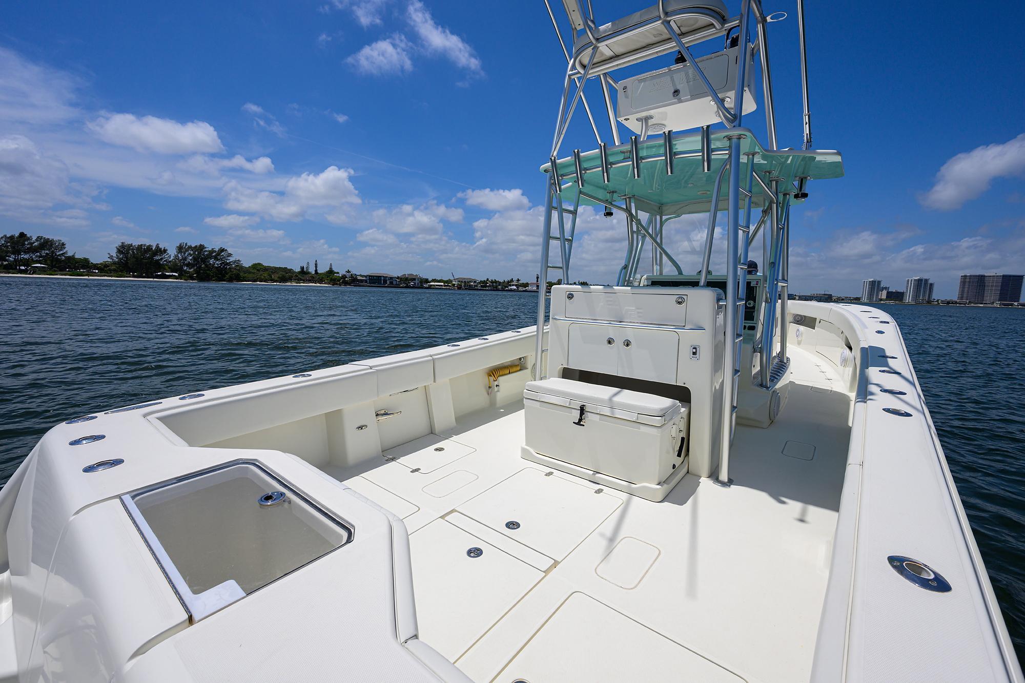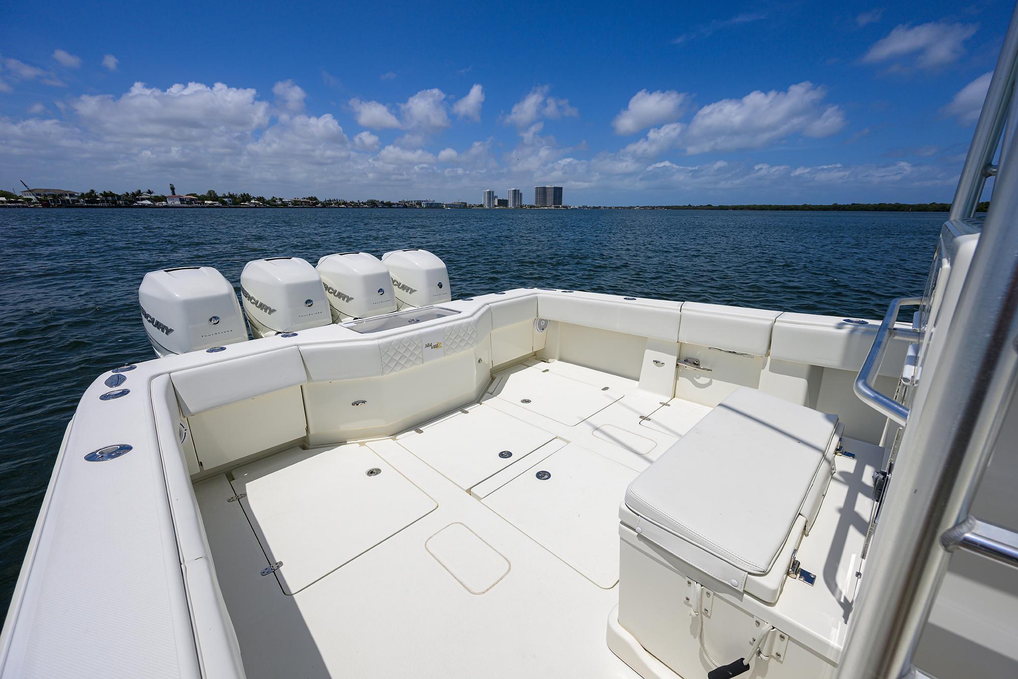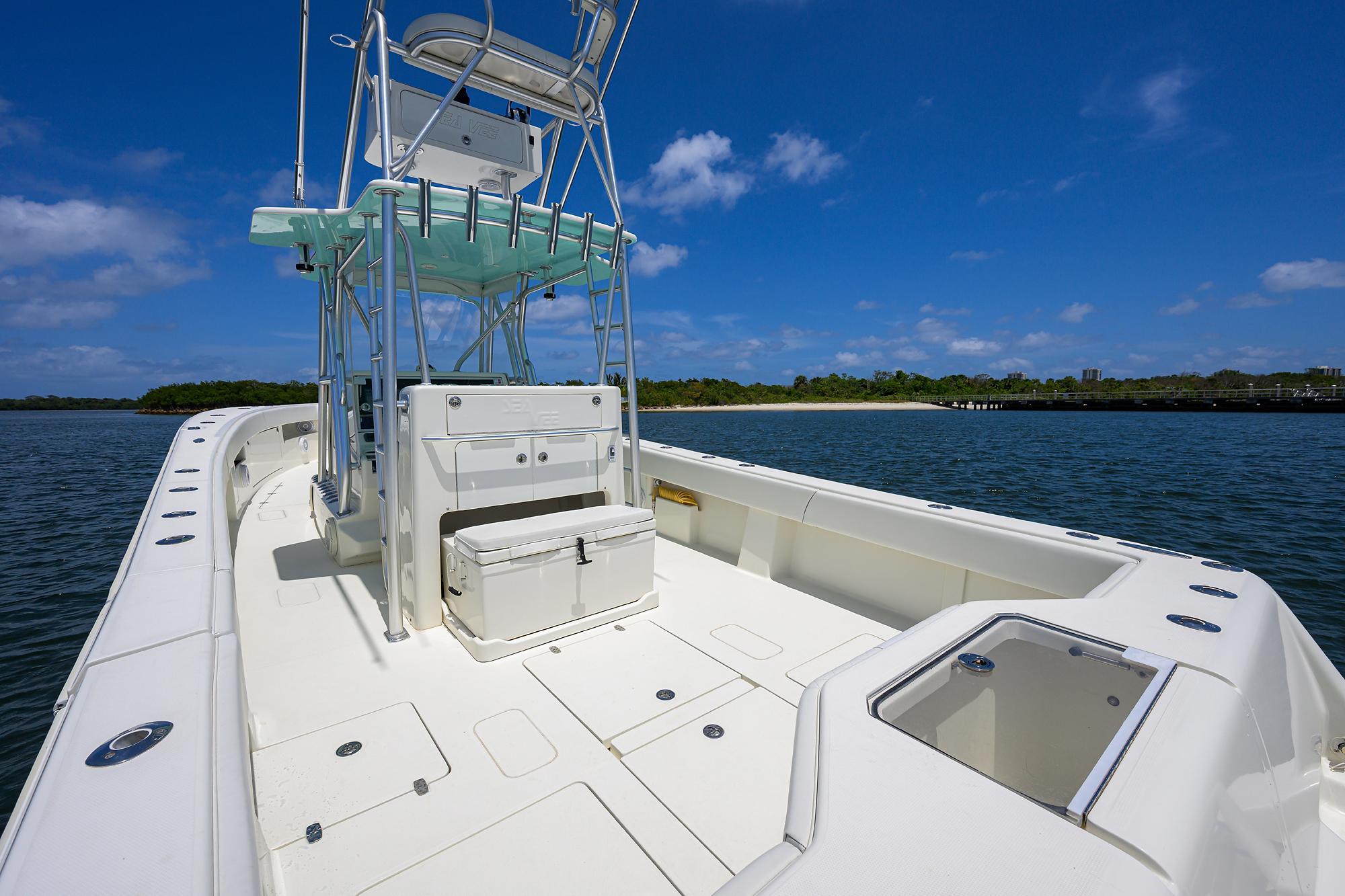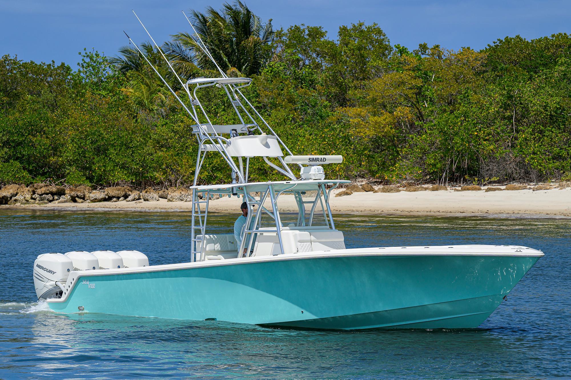 Repowered 2014 Sea Vee 39’ center console, inside storage, excellent updates to include an all new cushion and bolster package from Sea Vee. Vessel is Captain maintained and in excellent condition. Sea foam green gelcoat hull. Legendary design