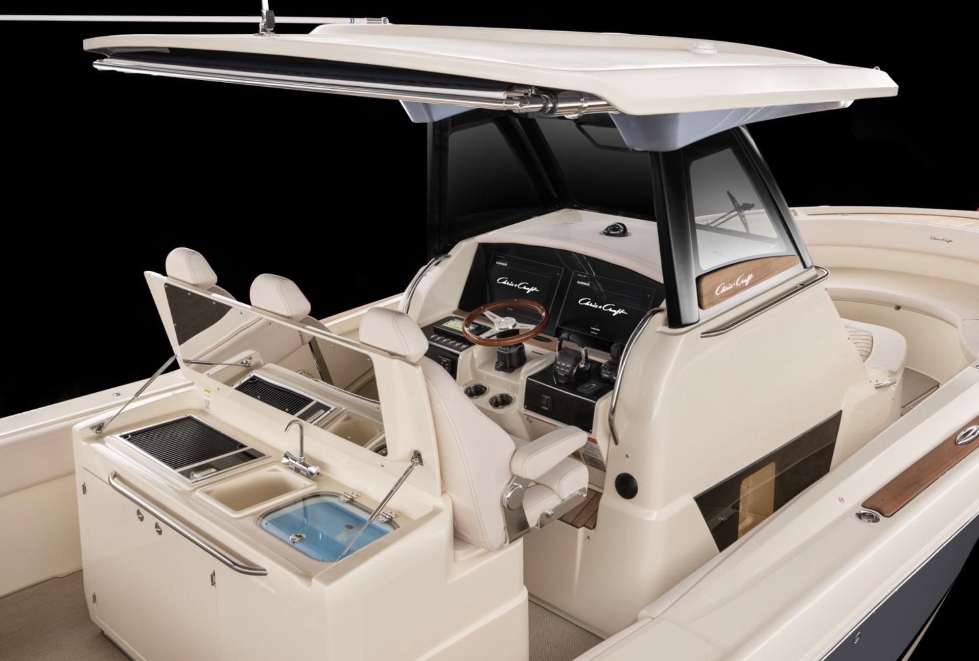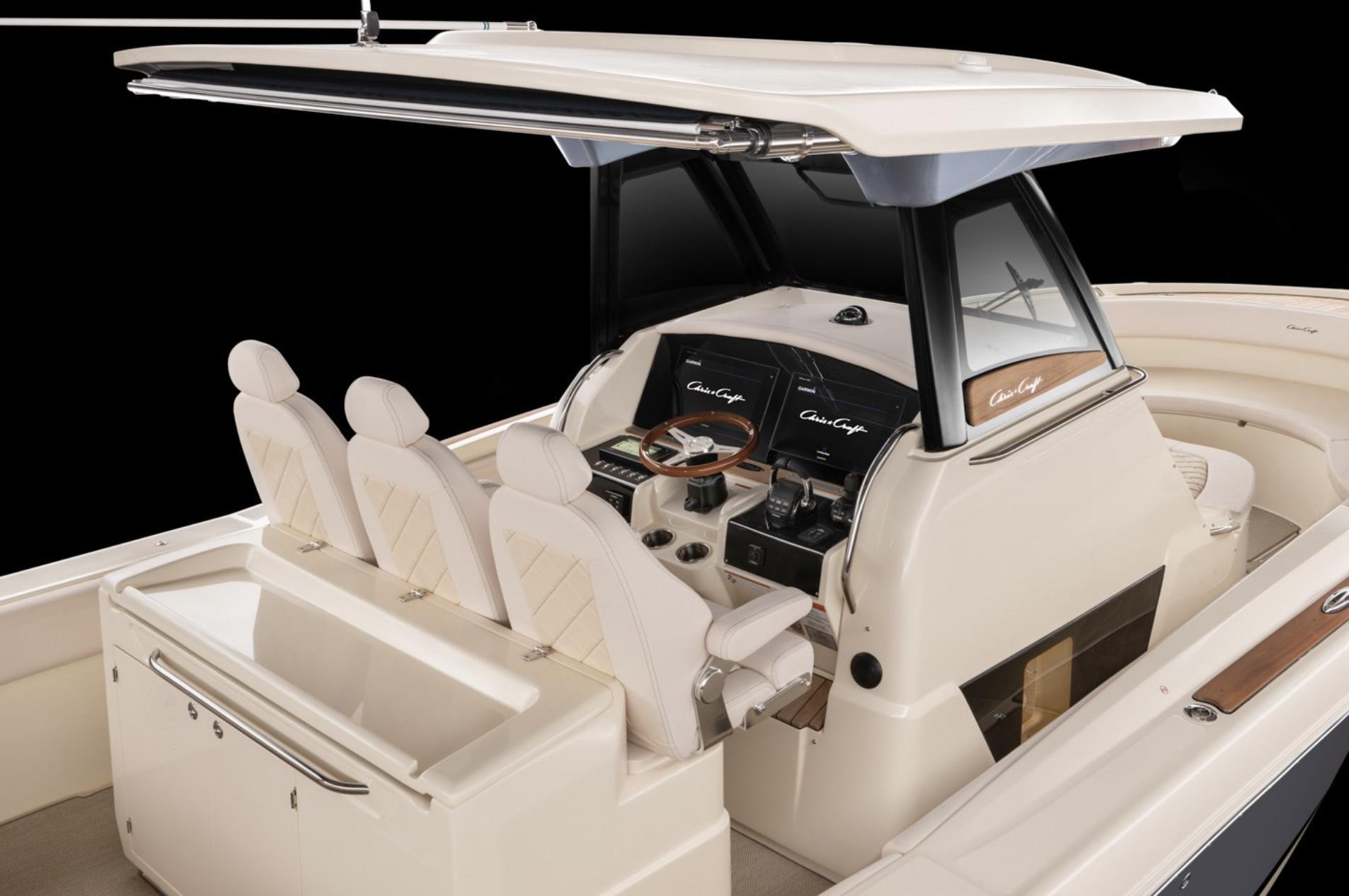 Overview:This 2019 Chris-Craft Catalina 34 blends iconic craftsmanship with cutting-edge performance and bespoke styling. Powered by custom-painted Yamaha T-F425 XTO engines with walnut engine decals, this highly optioned centre console includes the Pilot House Hard Top, designer finishes, and an upgraded Garmin 7616xsc electronics suite. Built for luxury, comfort, and performance, she’s turn-key ready.Some notable features include the Garmin 7616xsc package, underwater lights, retractable sun cover, a joystick with position hold, wet bar, bait well, and a grill.Power & PerformanceTwin Yamaha T-F425 XTO Offshore Engines (Custom Painted with Walnut Decals)Digital Throttle and Shift Controls (Helm)Integrated aluminum fuel tanks with anti-siphon valvesOne-piece fiberglass foam-filled stringer and liner system for flotation and noise reductionLenco Trim Tabs with indicator controlsExterior & HullBlue Crystal Metallic Painted Hull with Ivory Cream Gelcoat and Walnut Painted Boot StripeDeep-V hull with flared bow and tumblehome aft designSynthetic Esthec decking on foredeck, footrests, and swim platformWoven Seagrass Flooring – (Cockpit)Underwater Lights (2)Molded PVC rub rail with stainless steel insertSwim platform with hidden 3-step stainless steel ladderStainless steel bow scuff plate, cleats, and thru-hull fittingsDive door with folding ladderFender Clips (6)Helm & ElectronicsGarmin 7616xsc Electronics Package with multifunction displaysGarmin VHF RadioDepth finder (LCD)Fusion stereo with JL Audio premium speakers, subwoofer, ampMahogany tilt steering wheel with power assistCompass, digital trim tab controls, and cZone monitoring network120V GFCI outlet, 12V accessory outlets, USB portsInterior & CabinLockable cabin entry with custom cabinetry and solid surface countertopsTecma porcelain toilet with macerator and dockside pumpoutStainless steel basin sink with hot/cold faucetCustom wood veneer interior with LED lighting (overhead, reading, step lights, skylight w/ screen)Galley with sink and refrigeratorUpholstery with antimicrobial open-cell foam and Oyster Cockpit Vinyl (Base & Insert) with Brown Contrast StitchingFlooring: wood-style finish with multiple selection optionsAir conditioning and 12V heatingCO detectors, underberth storage, Vimar chrome-framed switchesSeating & EntertainmentTriple helm seats with flip-up bolsters and armrestsForward sunlounger with filler cushionFolding aft bench with integrated rod holdersBow table (fiberglass) with filler cushionsTeak cockpit table (aft)Ample storage compartments throughoutFishing FeaturesInsulated in-floor fish boxLive well with LED lightRod storage (port and starboard)Raw water washdownAdditional FeaturesPilot House – Hard Top with integrated lighting and retractable sunshadeCanvas: helm and console covers, coaming bolsters forward and aftCustom-fitted upholstered cushionsDockside pumpout, freshwater pressurized system, sump pump for drainsTeak maintenance kit includedA fully-loaded Catalina 34 with premium Yamaha power and head-turning finishes—this vessel delivers sophistication, performance, and exceptional value in its class.Contact us today to schedule a showing or request further details.