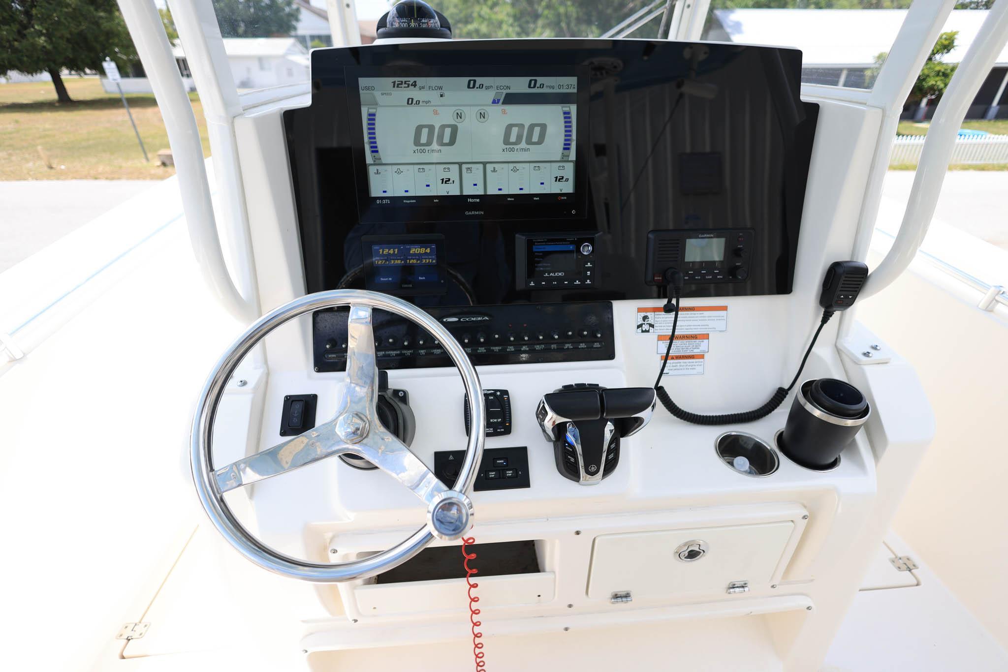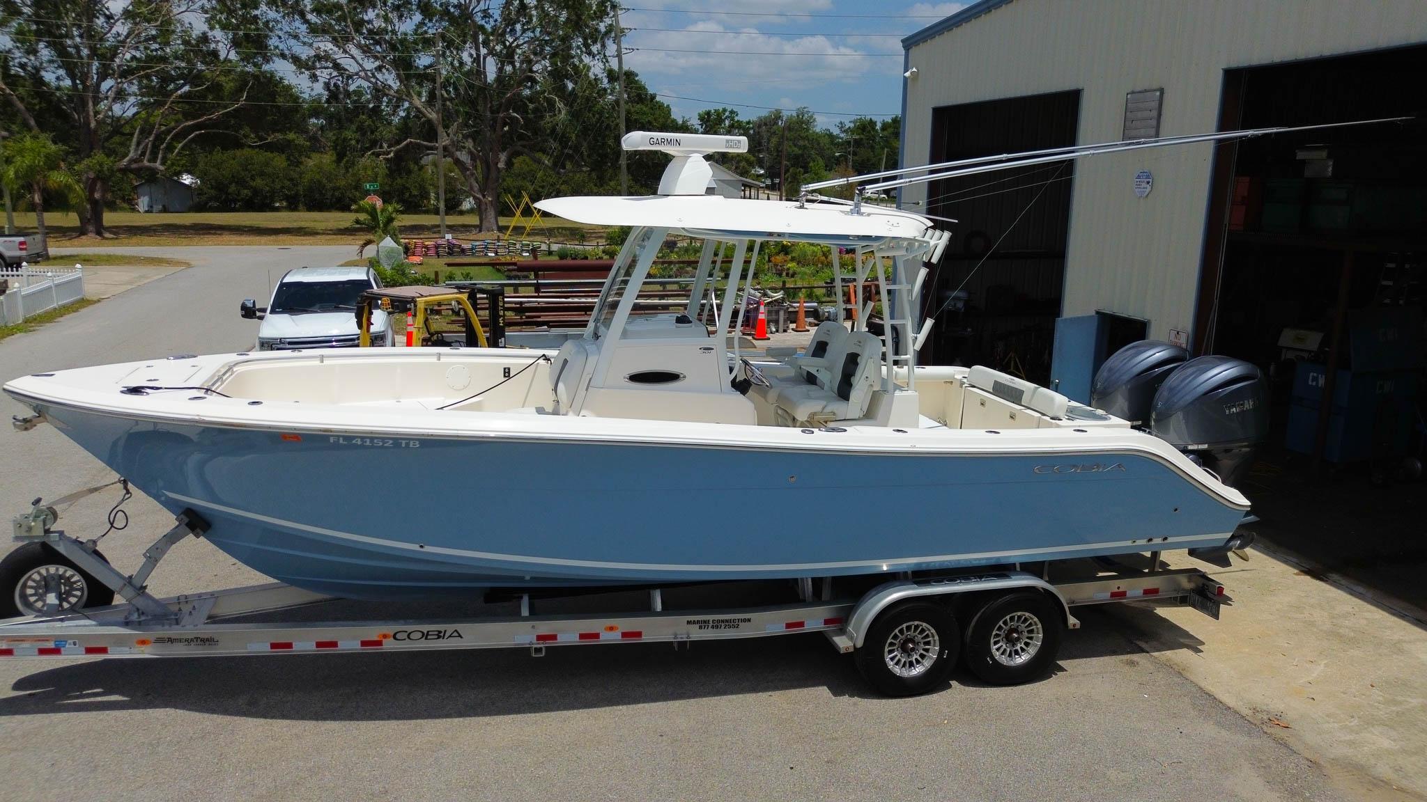 2022 Cobia 301 CC w/ Twin Yamaha 300's (300hrs)Open Array RadarUpgraded Dual Axle Trailer Standard FeaturesANCHOR LOCKER SELF-BAILING COCKPITCOVERED BOARDING LADDER(AFT) COCKPIT BOLSTERSELECTRIC HEAD W/ MACERATORELECTRONICALLY ADJUSTED FORWARD TABLE/SUN LOUNGE (FLUSHES INTO FIDOR)FORWARD CONSOLE ACCESS DOORFRESH WATER AT TRANSOMFRESH WATER SINK IN CONSOLEHEAD COMFORT APPOINTMENTS (TOWEL BAR, TP HOLDER, MIRROR)72 QT INSULATED COOLER IN CONSOLEOPENING PORT WINDOW(S)RAW WATER WASH DOWN2-80 GAL COCKPIT INSULATED FISH BOXES W/ MACERATED OVERBOARD DRAINS2 FISH BOX PUMP-OUT W/ MACERATOR2 28 GAL LIVEWELLS8- SS GUNNEL ROD HOLDERSUNDER-GUNNEL ROD STORAGE2- SS FLUSH MOUNT FLIP-UP BOW LIGHT & CHOCKSWATERPROOF DEUTSCH ELECTRICAL CONNECTORSPREMIUM FADE-RESISTANT GELCOATSTAINLESS STEEL RUB RAILSTAINLESS STEEL THRU-HULLS W/ SEACOCKS BELOW WATER LINEFULLY RECESSED BOW RAILCOCKPIT LIGHTSCOMPASS & HELM FOOTRESTOVER-SIZED BILGE ACCESS DOOR W/ ELECTRONIC LIFT ASSISTREAR SEATING W/ BACKREST55 FLUSH MOUNT PULL-UP CLEATS (S)SIDE DIVEINWARD OPENING TUNA AND DOCKSIDE BOARDING DOORPOWER ASSIST STEERINGPROPTRIM TABSYAMAHA FUEL/WATER SEPARATOR & CONTROL CABLES (W/ ENGINE OPTIONS)The Cobia 301 CC has everything that made its predecessor the 296 CC the top selling 30 footer in the country, but so much more. Take for instance an inward opening side door for hauling aboard the big ones, easy entering and exiting while diving, and dockside boarding. In addition, there’s added space in the cockpit, and the tackle station now has a freshwater sink and rigging station. A new console situates all operational controls and screens perfectly to maximize form and function, and the dash can be stylishly color-matched to the hull. Combine all this with popular features like the electric bow table and the hull’s silky smooth ride and the 301 CC is sure to be the next Cobia that stands atop its class.