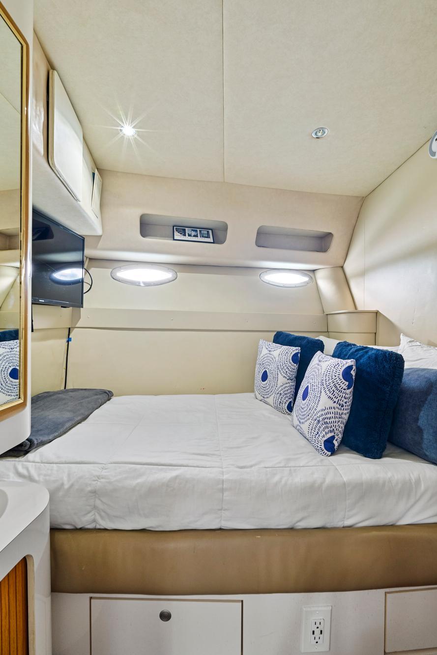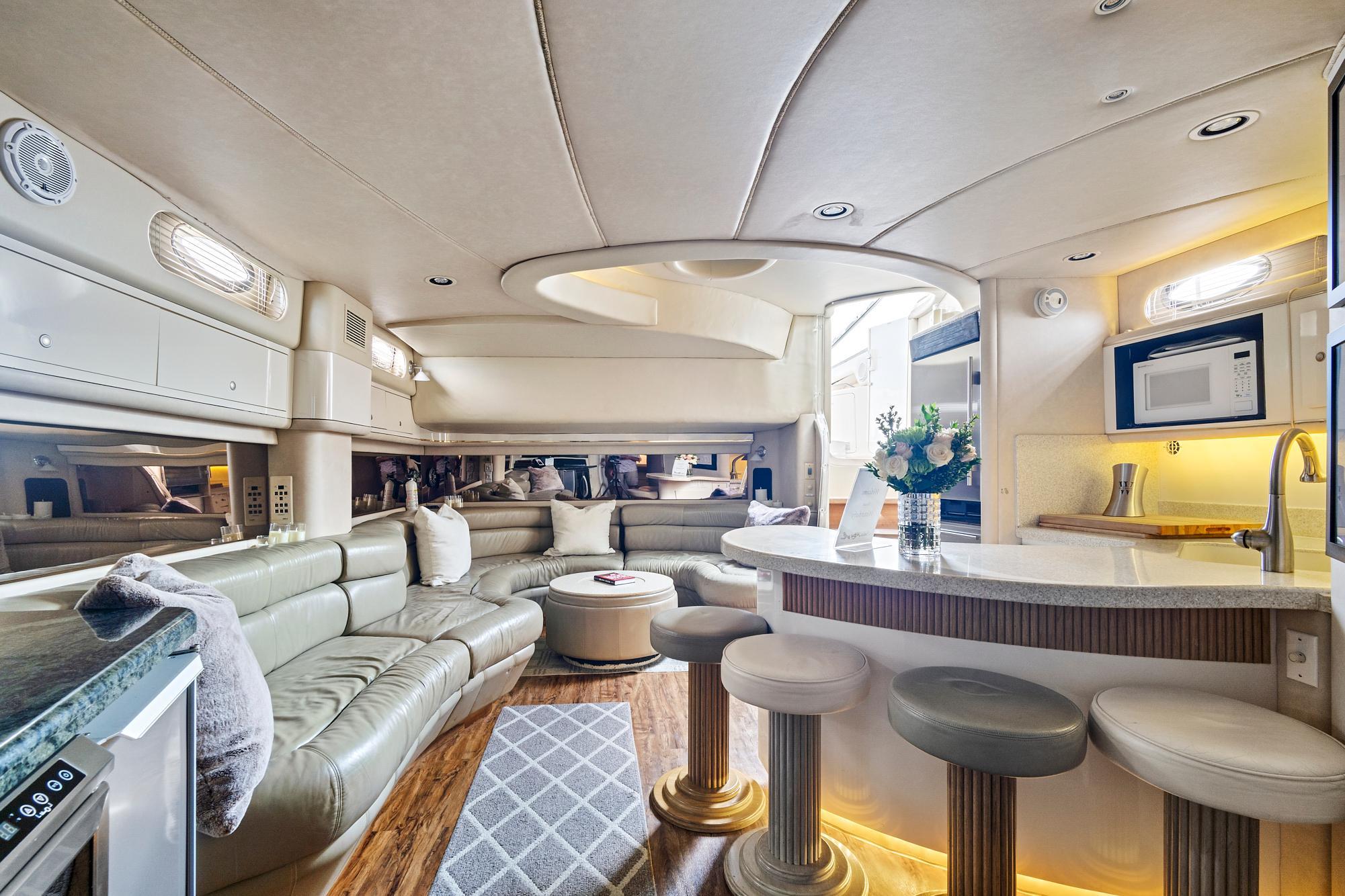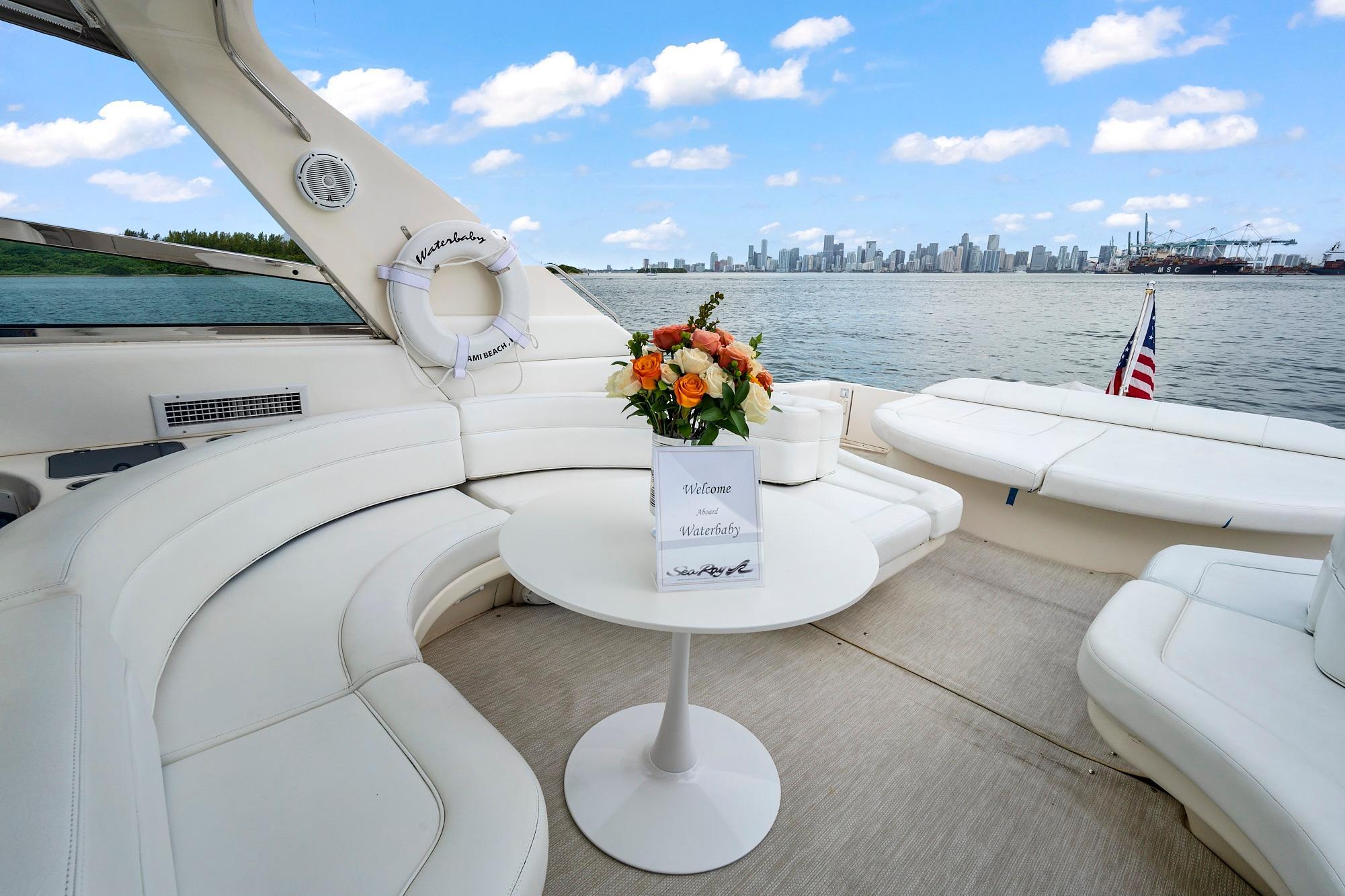 A striking blend of performance and luxury, Waterbaby is a beautifully maintained 1996 Sea Ray Super Sun Sport 63’. Powered by twin 1,250 hp Caterpillar diesel engines, she offers both speed and reliability for extended cruising.Built on a fully cored deep-V hull with a moderate beam, prop pockets, and an integrated transom, Waterbaby is engineered for smooth, confident handling. Her spacious salon features sculpted overhead panels, a sweeping contoured leather sofa, and a convenient day head—ideal for entertaining.The well-appointed galley includes full-size appliances, making onboard living both functional and comfortable. Below, a two-stateroom, two-head layout provides generous accommodations, with the master suite located forward for maximum privacy.Crew quarters are cleverly tucked beneath the transom and accessed via the cockpit sun pad—perfect for extended trips.Additional standout features include:Reverse arch and dual transom doorsCircular cockpit lounge seatingThoughtfully arranged engine room with push-button accessWaterbaby has been meticulously maintained by a full-time captain and professional yacht management team, ensuring she remains in superb condition inside and out.
