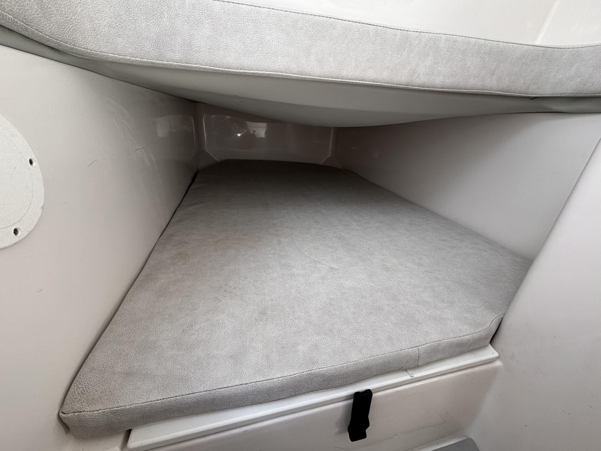 - Seating - fiberglass helm pod w/3 deluxe bucket seats, 65-qt premium cooler w/ mechanical slide, grab handle w/2 rod holders, storage box (2-drawer) w/SST slide, flip footrest, tackle storage box (2-drawer, 3-plano, plyer/knife/liter holder), dry storage box (2), raw water washdown w/storage fiddle, fresh water washdown w/storage fiddle, 4 SST cup holders, double sink w/shower/faucet & bait storage tray, cutting board, Corian countertop & closing lid, battery access door (removable)