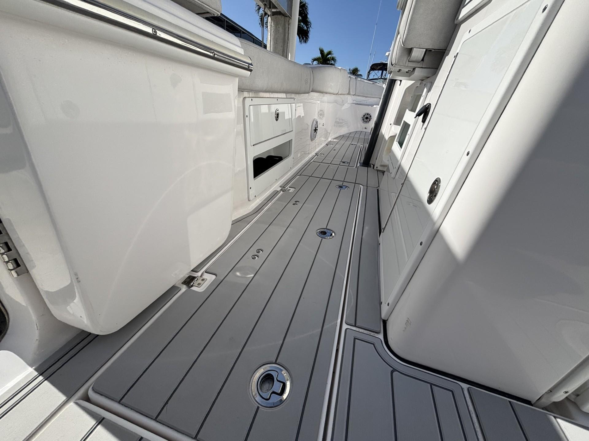 This 57 mile per hour beast, equipped with twin Yamaha F300s is unbelievably agile, yet as solid as any boat on the market in its category. With its huge 10’ 8” beam and a wide Carolina flare at its bow, the 328 Commander boasts more standard features than one would expect.