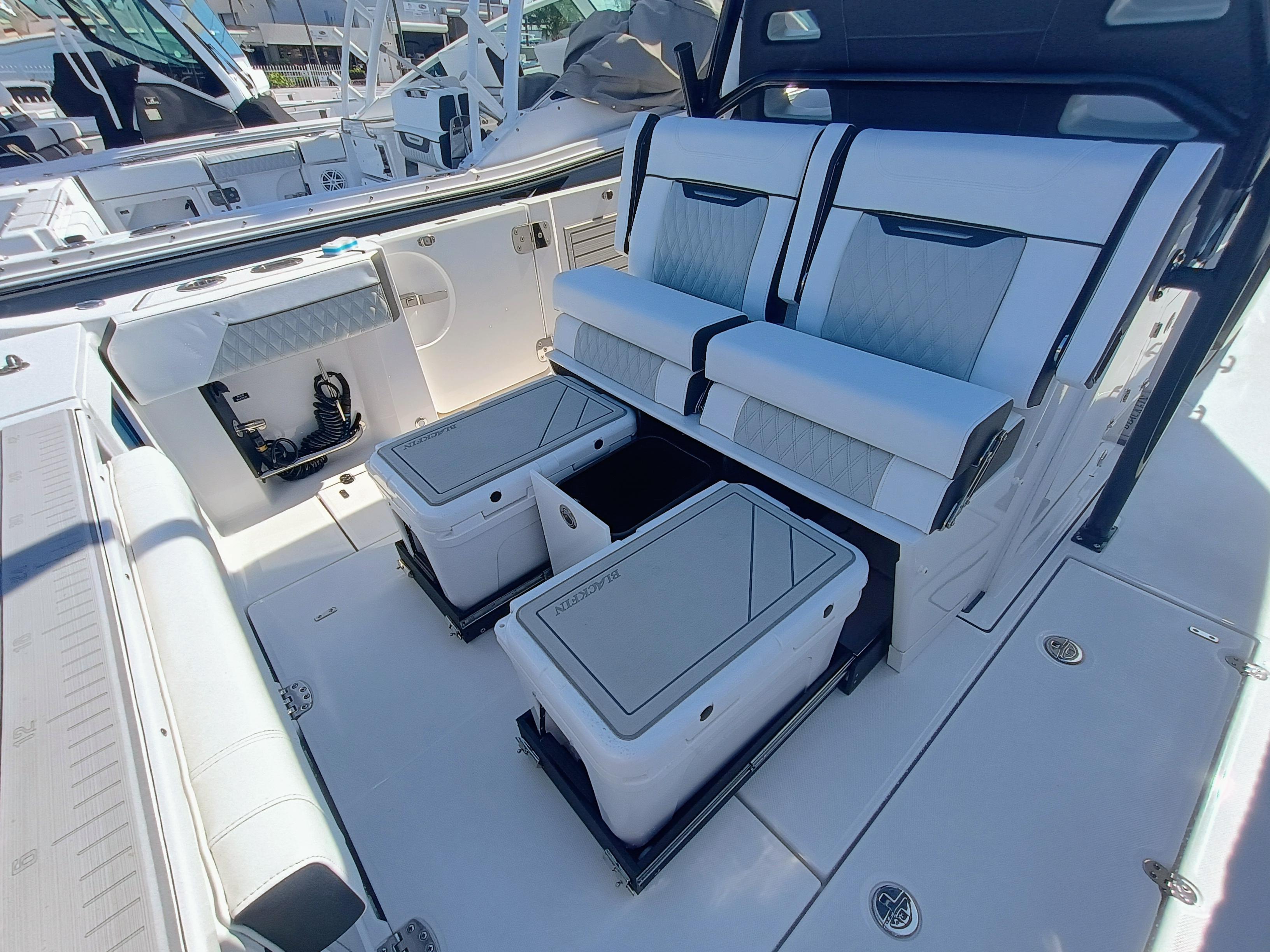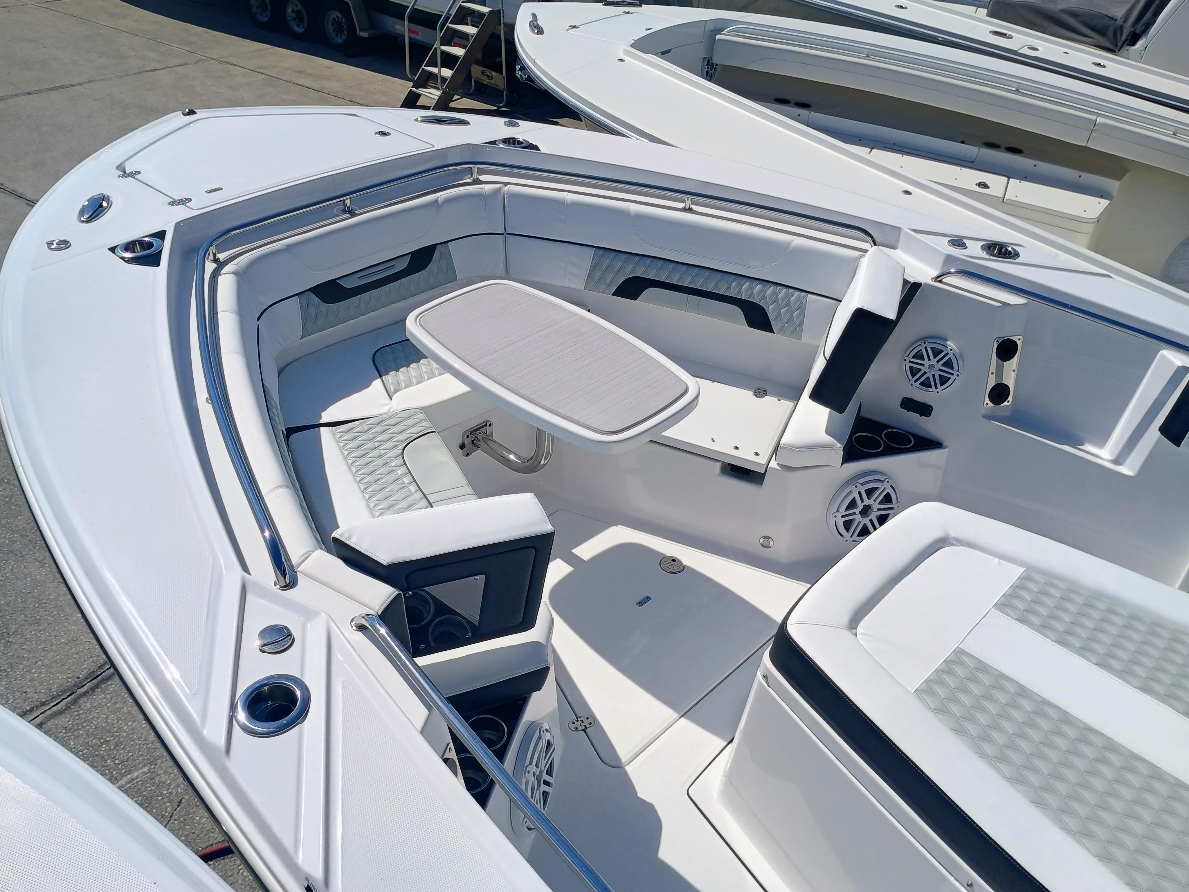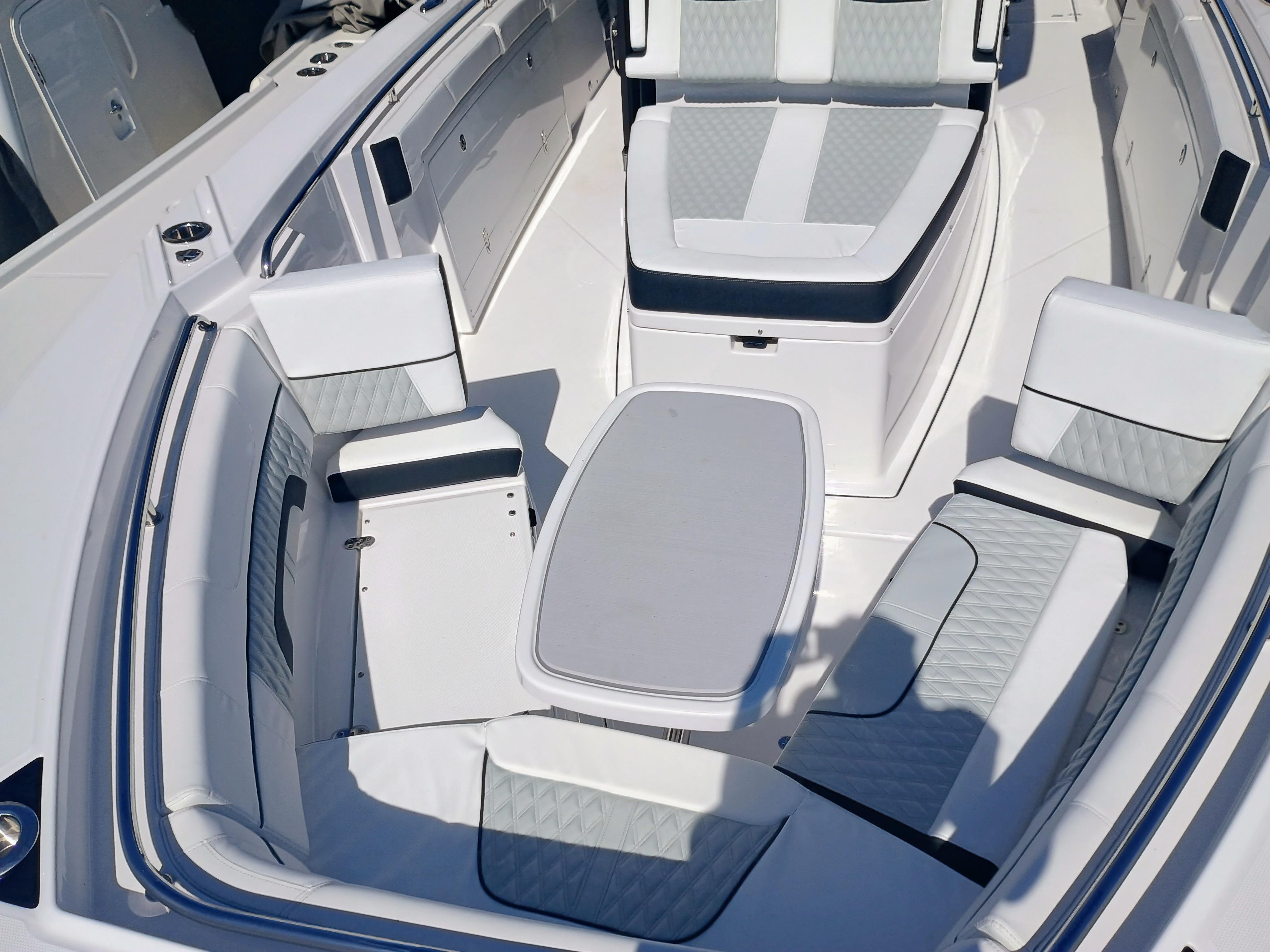 Winner of a Miami Innovation Award, the 332CC is proven innovational design at its best. Enjoy an abundance of perfectly designed fishing amenities like a tackle rigging station, insulated baitwells, and in-floor fish boxes as well as modern conveniences such as integrated storage, custom seating, dive/boarding door, telescoping, and recessed swim ladder, and full-size head compartment with Pantographic door. Meanwhile, captains will appreciate the leaning post with a custom helm seat, flip-up bolster, and command center.Engine: BLACK Mercury Twin 400XXL V10 Verado DTS JPO 800HP BLACK NoneHard Top Underside Color Scheme: Onyx Black #1Colors: Onyx Black Sheer Stripe · Onyx Black Hull · Onyx Black Boot Stripe · Onyx Black Hard Top Underside · Arctic White BottomUpholstery Options· Feather UpholsteryHull & Deck· Black Powder-Coated Aluminum Framework For Fiberglass Hardtop System· Swim Platform Inlay - Sea Dek· Underwater Lights, RGB LEDCockpit· Dive Ladder for Side Door· Leaning Post, Aft Facing Seat - (In Lieu of Bait Prep Station)Canvas· Aft Shade-Gray· Bow Shade for Hardtop-Gray· Console Cover-Gray· Forward Console Lounge Cover-Gray· Helm Seat Cover-Gray· Aft Facing Seat Cover (Aft Facing Seat Option Req)-Gray Garmin Electronics Package· Dual GPS/Chartplotter - 8616, 315VHF B175 Transducer· Radar-GMR 18xHD Radome (Requires Electronics Package)Waste Systems· Macerator w/Overboard Discharge