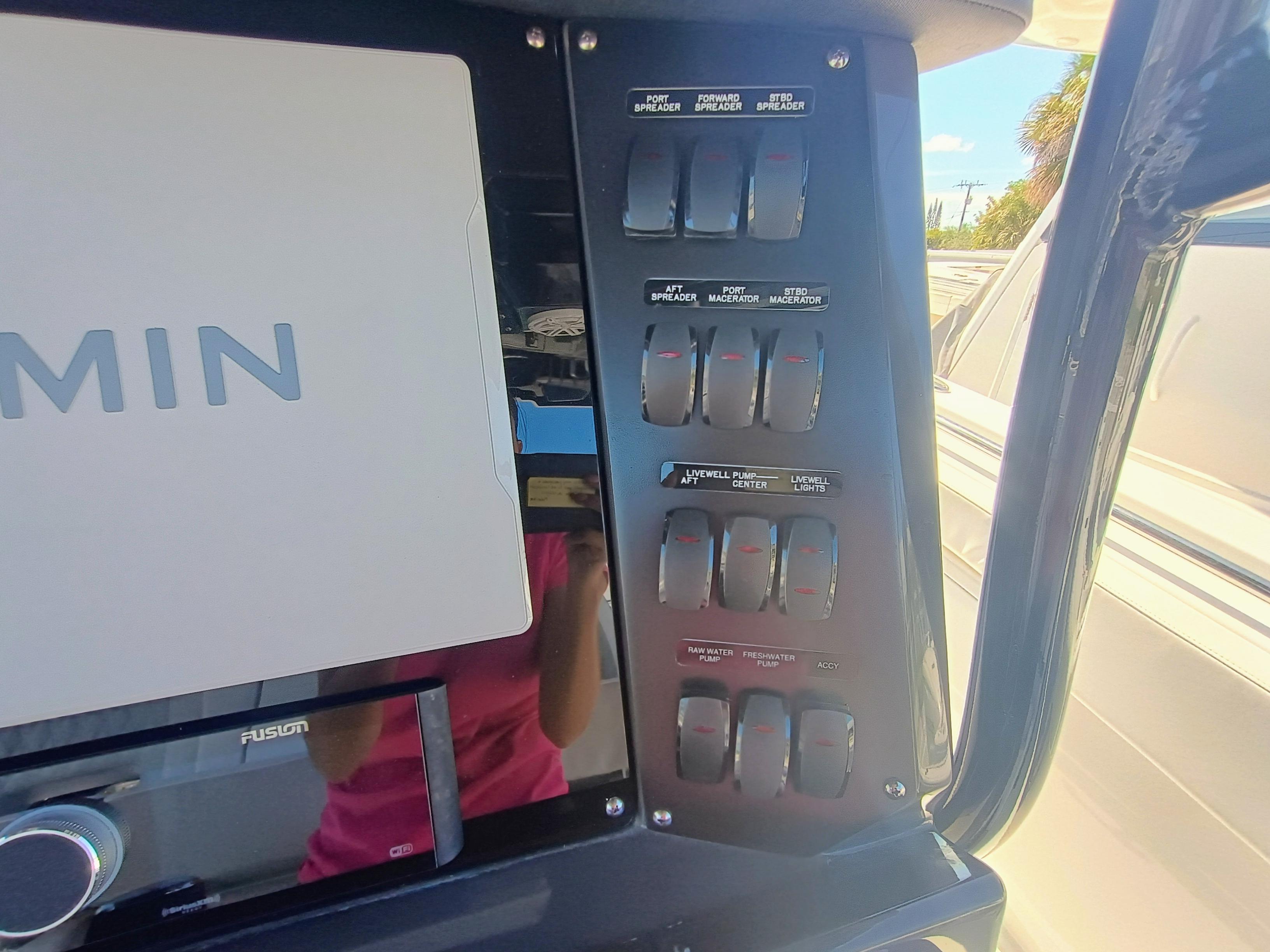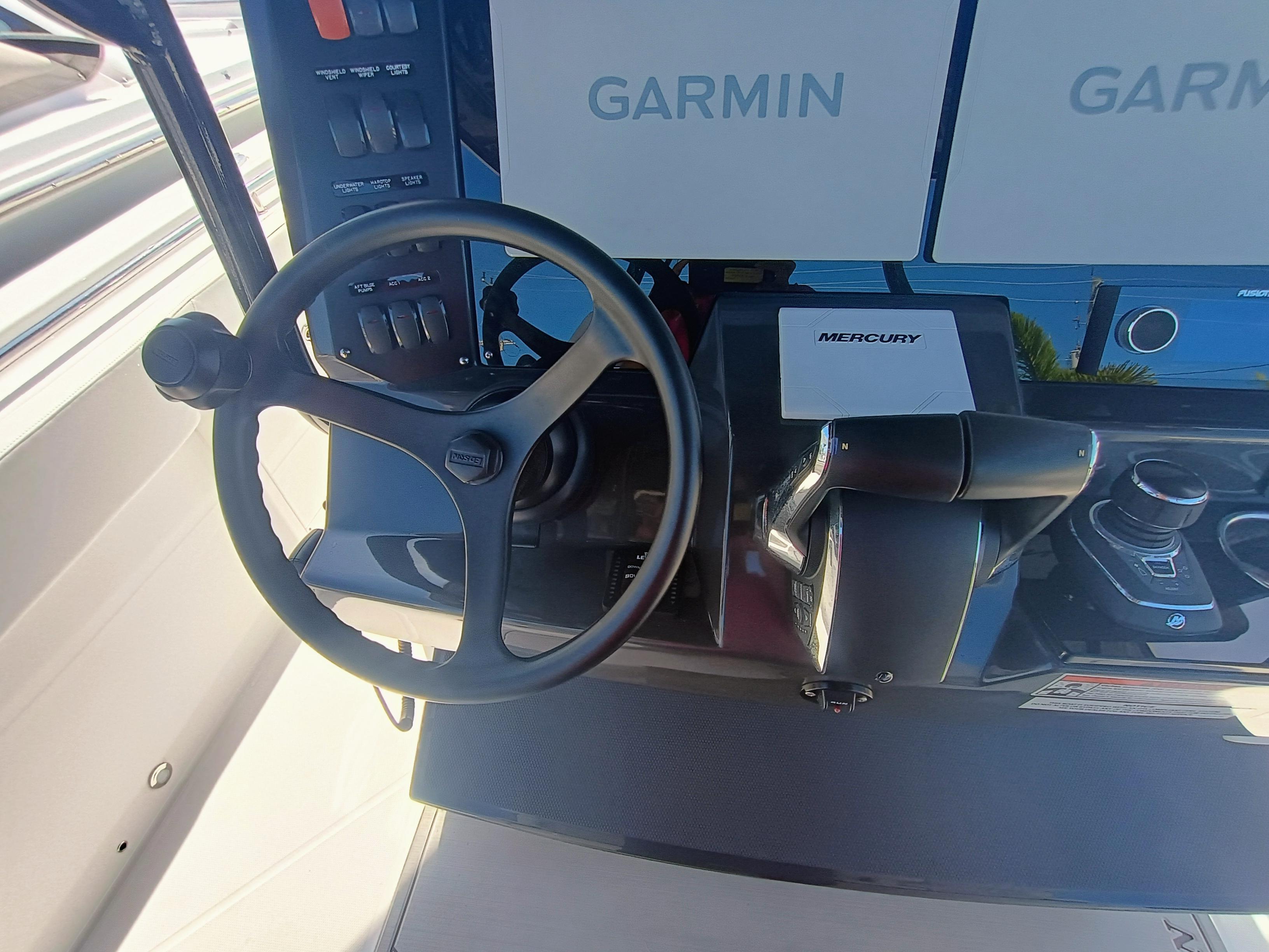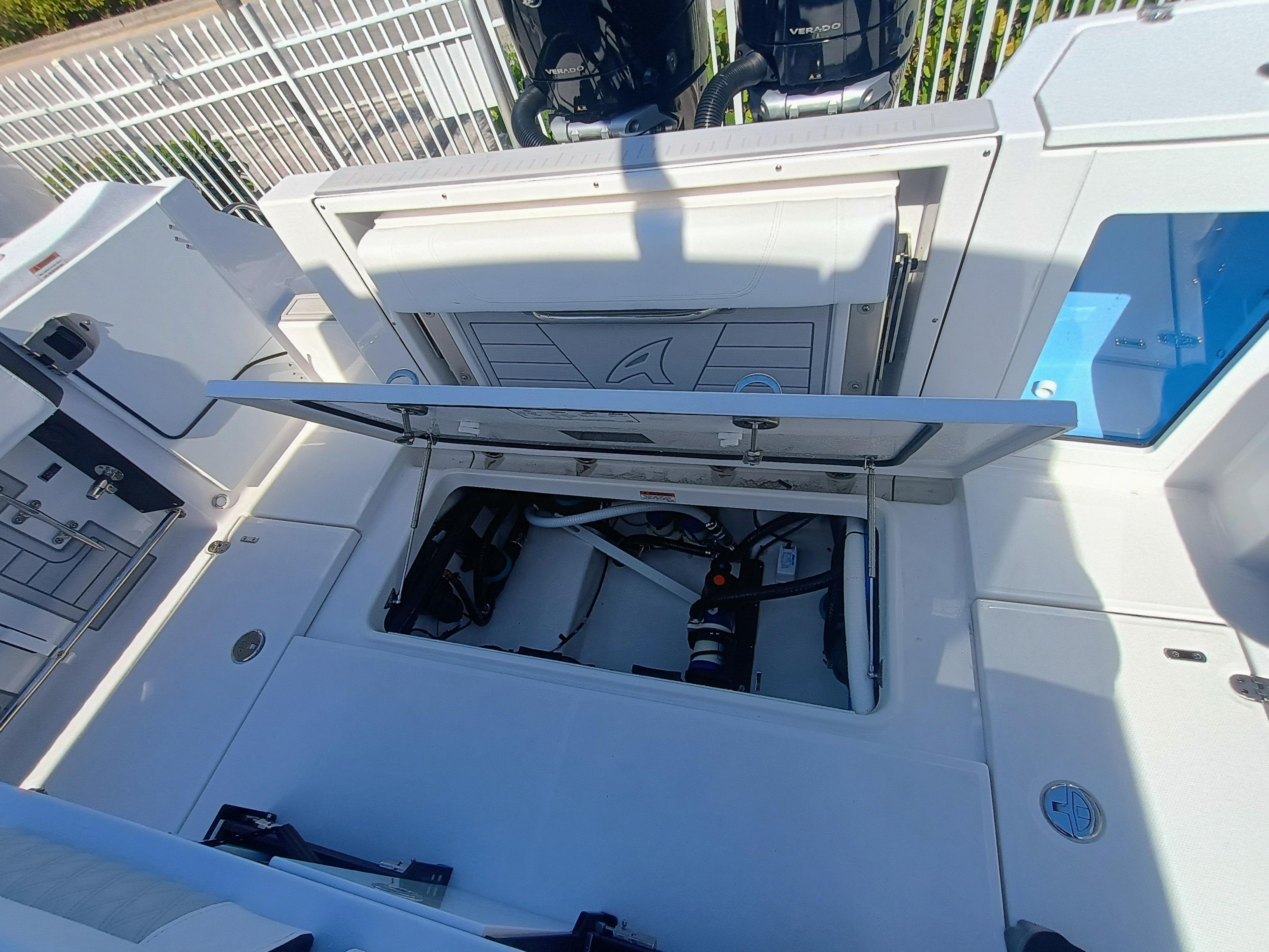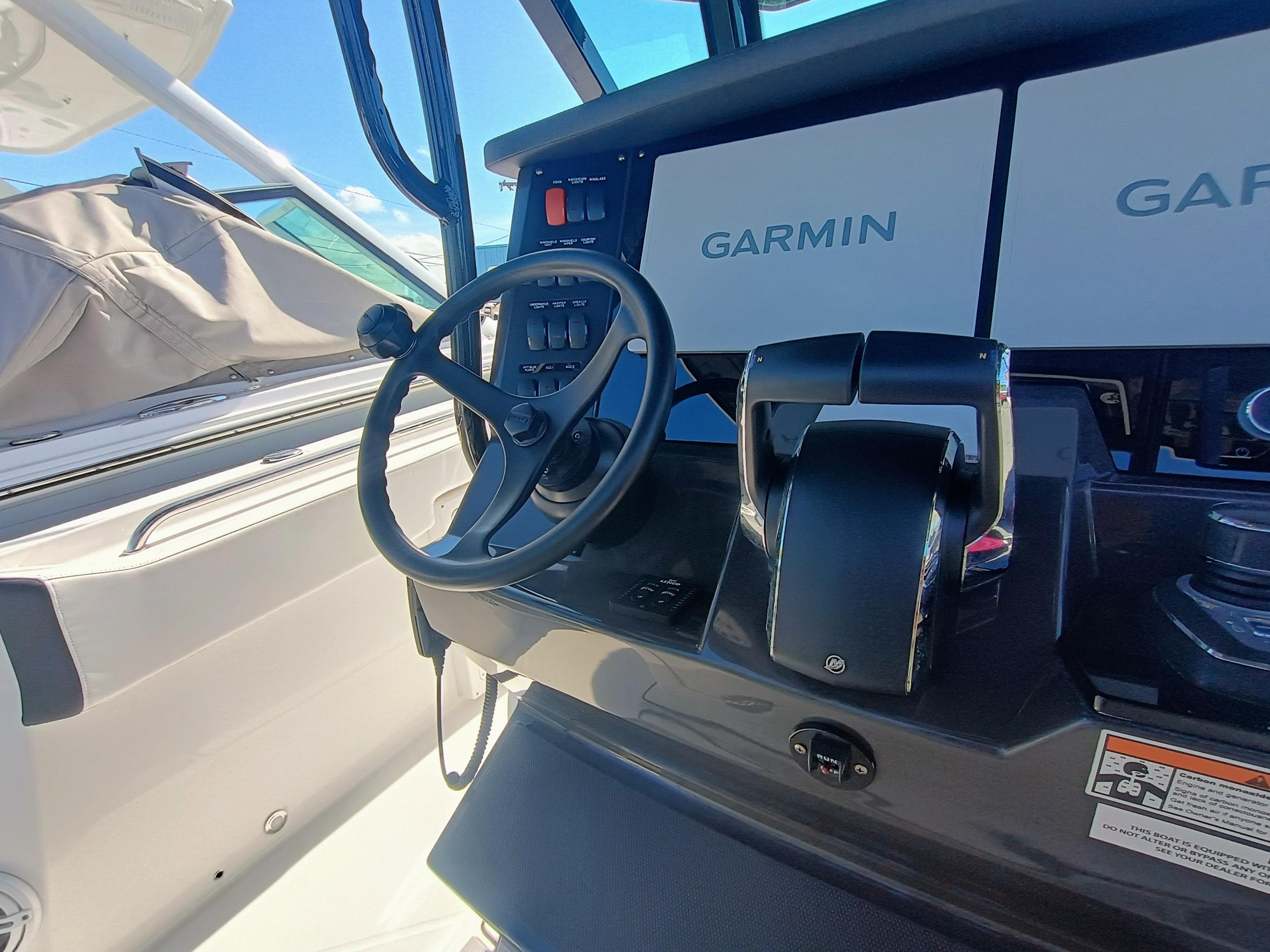 Winner of a Miami Innovation Award, the 332CC is proven innovational design at its best. Enjoy an abundance of perfectly designed fishing amenities like a tackle rigging station, insulated baitwells, and in-floor fish boxes as well as modern conveniences such as integrated storage, custom seating, dive/boarding door, telescoping, and recessed swim ladder, and full-size head compartment with Pantographic door. Meanwhile, captains will appreciate the leaning post with a custom helm seat, flip-up bolster, and command center.Engine: BLACK Mercury Twin 400XXL V10 Verado DTS JPO 800HP BLACK NoneHard Top Underside Color Scheme: Onyx Black #1Colors: Onyx Black Sheer Stripe · Onyx Black Hull · Onyx Black Boot Stripe · Onyx Black Hard Top Underside · Arctic White BottomUpholstery Options· Feather UpholsteryHull & Deck· Black Powder-Coated Aluminum Framework For Fiberglass Hardtop System· Swim Platform Inlay - Sea Dek· Underwater Lights, RGB LEDCockpit· Dive Ladder for Side Door· Leaning Post, Aft Facing Seat - (In Lieu of Bait Prep Station)Canvas· Aft Shade-Gray· Bow Shade for Hardtop-Gray· Console Cover-Gray· Forward Console Lounge Cover-Gray· Helm Seat Cover-Gray· Aft Facing Seat Cover (Aft Facing Seat Option Req)-Gray Garmin Electronics Package· Dual GPS/Chartplotter - 8616, 315VHF B175 Transducer· Radar-GMR 18xHD Radome (Requires Electronics Package)Waste Systems· Macerator w/Overboard Discharge